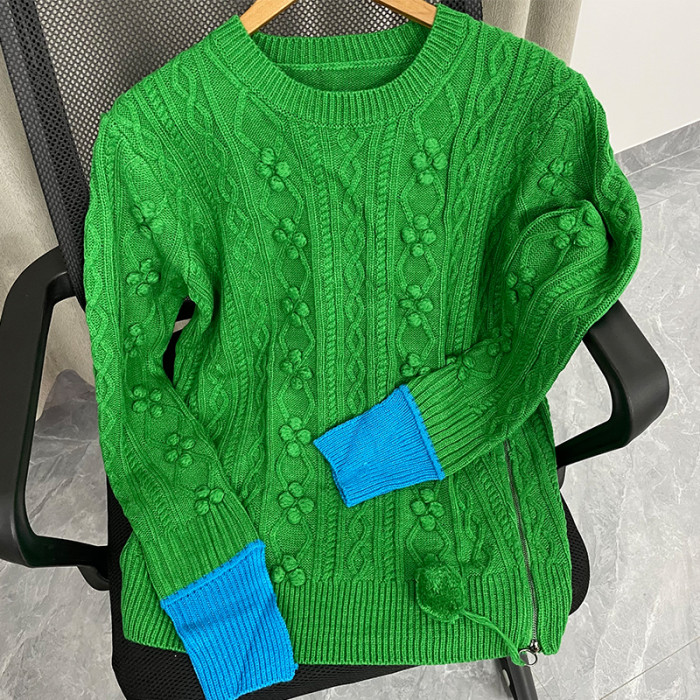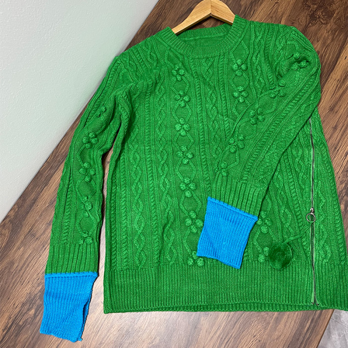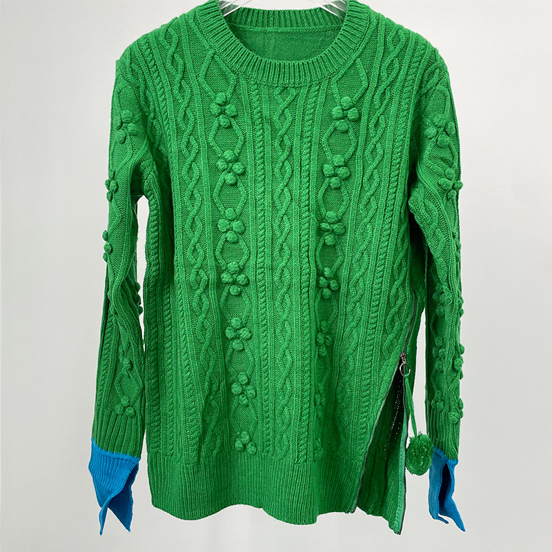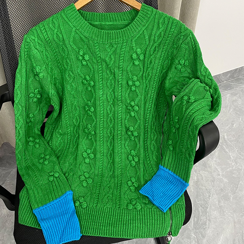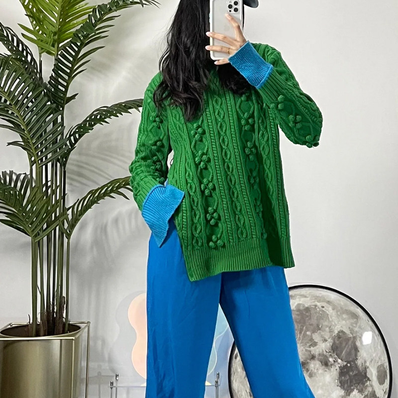 復古聖誕綠色麻花加厚圓領套頭毛衣女秋冬濮院軟慵懶風羊毛針織衫