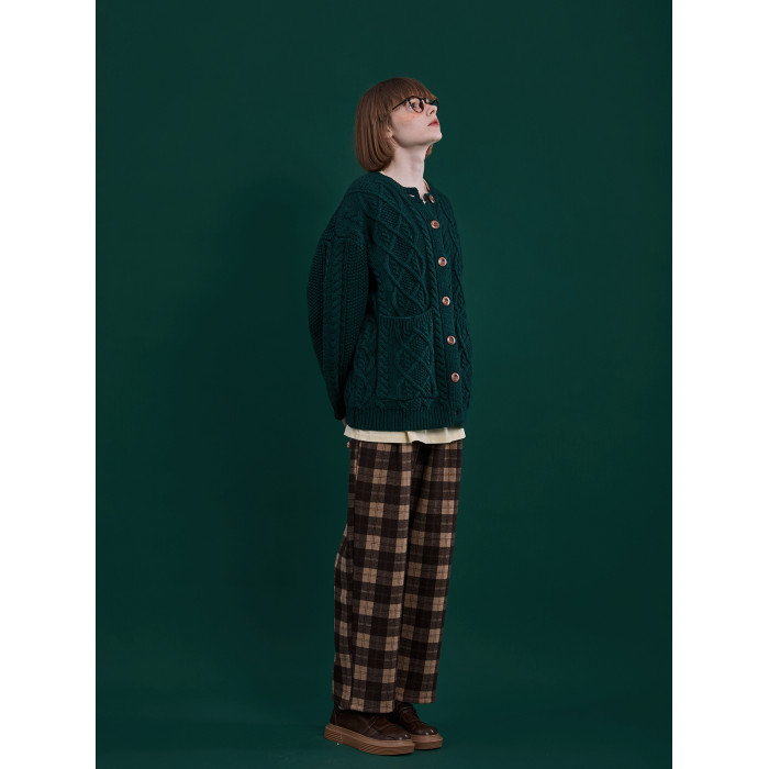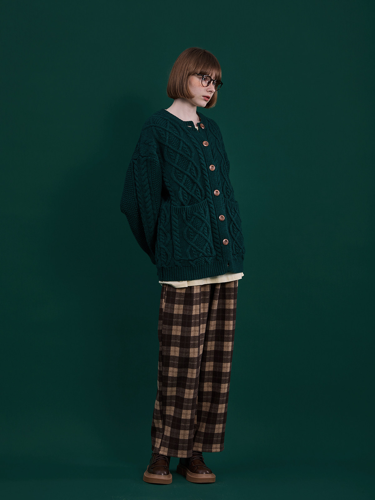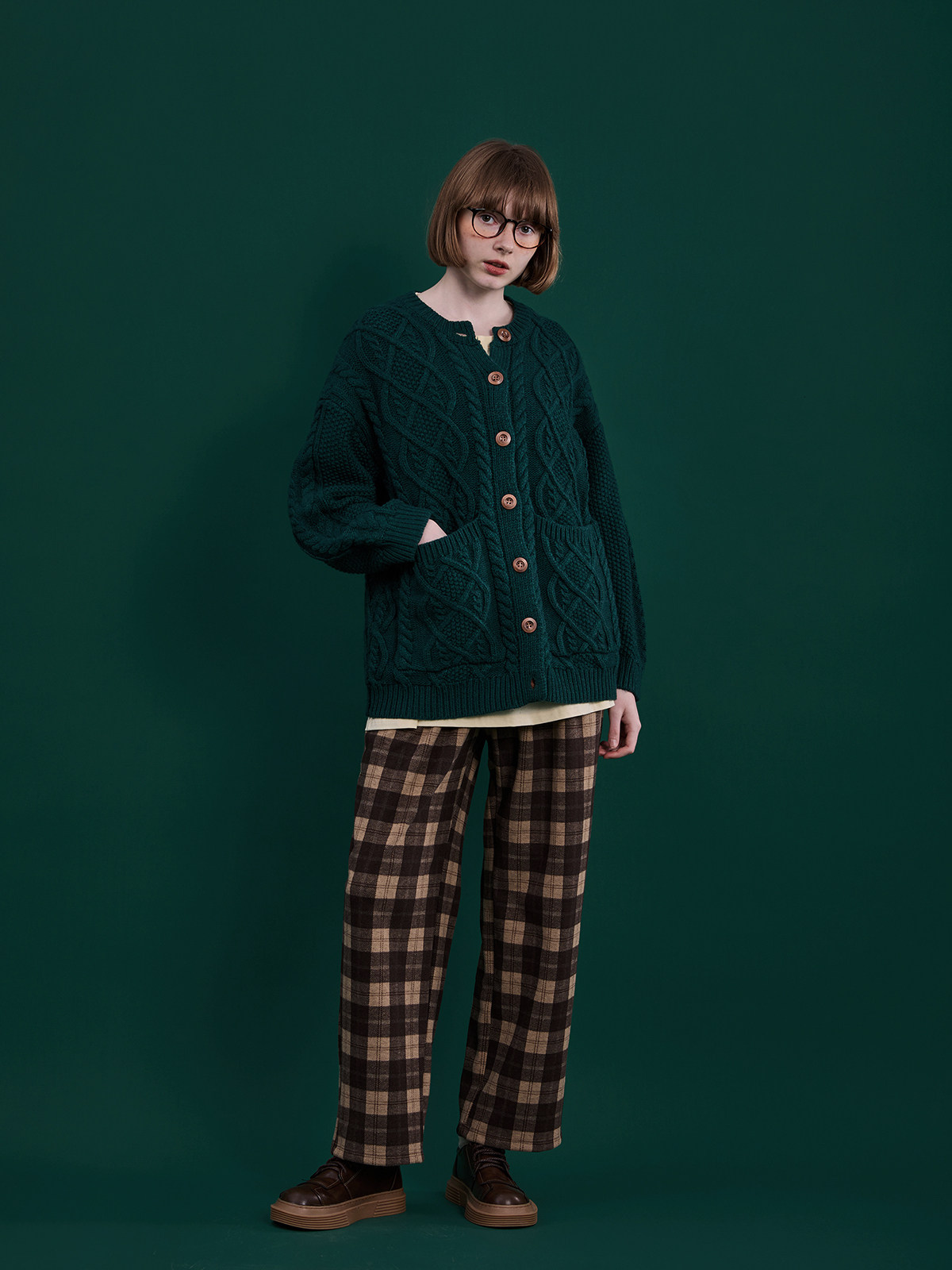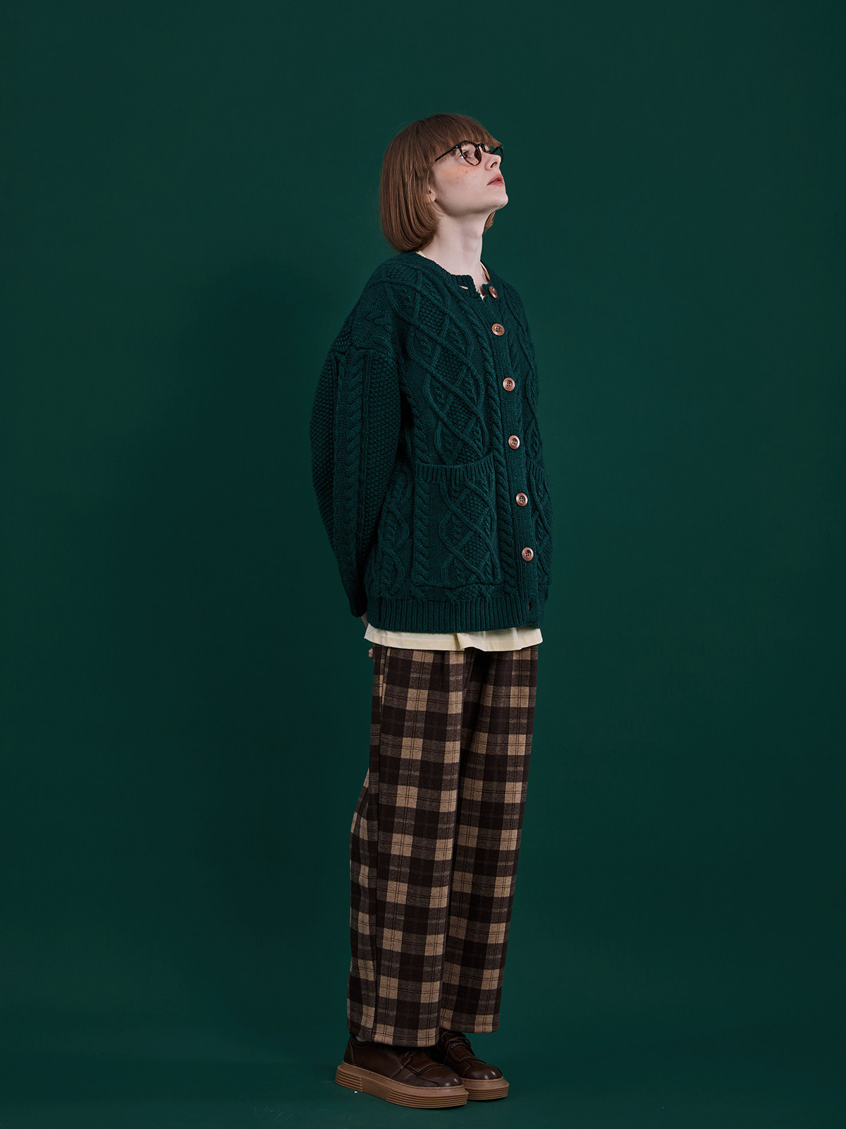 柒年原創羊毛英倫聖誕綠木釦開衫棒針費爾島毛衣祖母風絞花紋毛衣