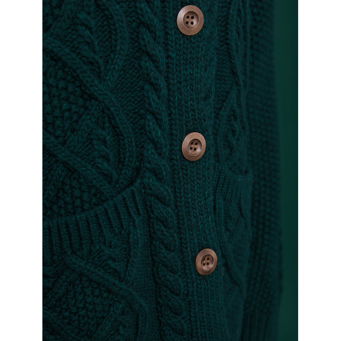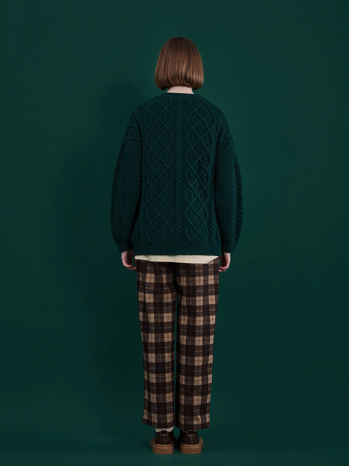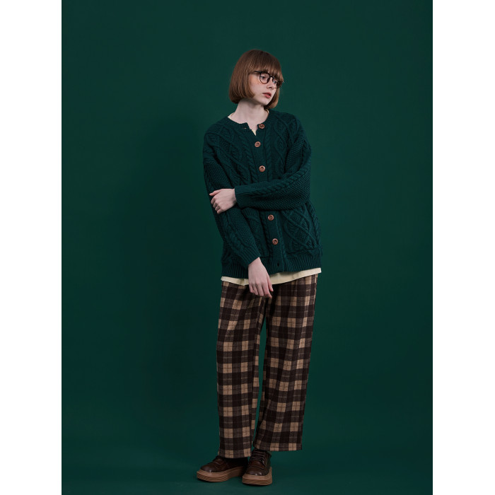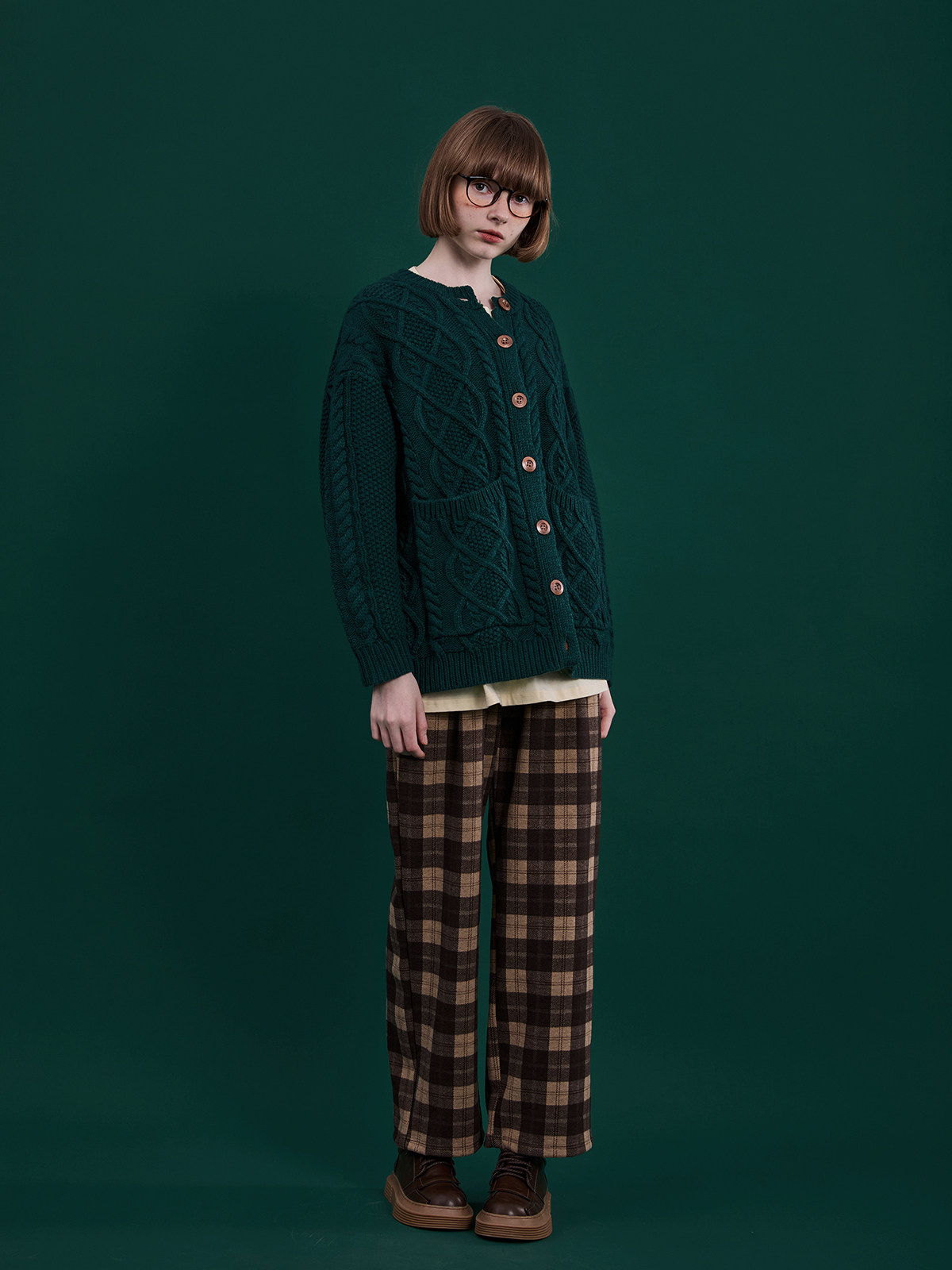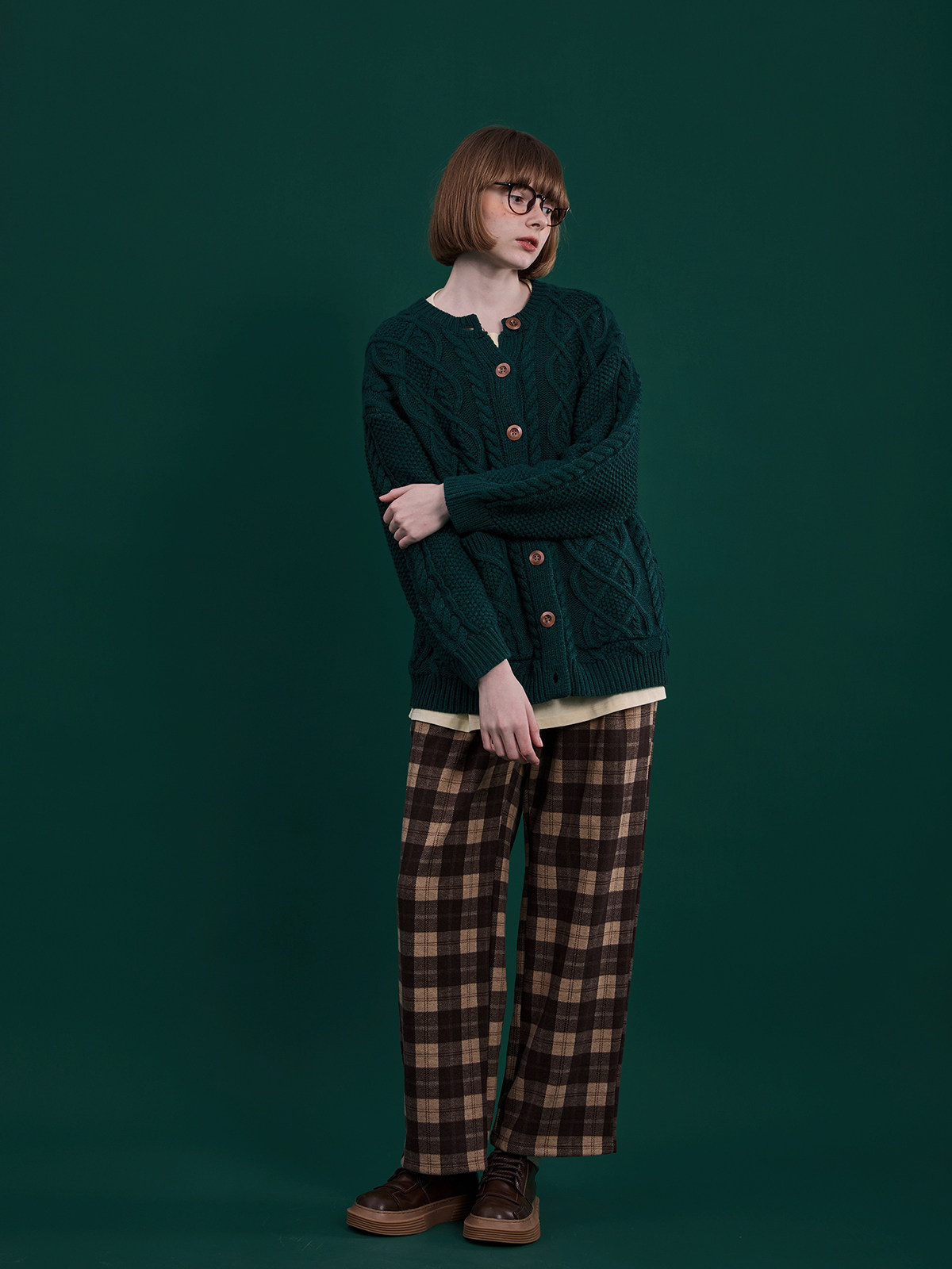 柒年原創羊毛英倫聖誕綠木釦開衫棒針費爾島毛衣祖母風絞花紋毛衣