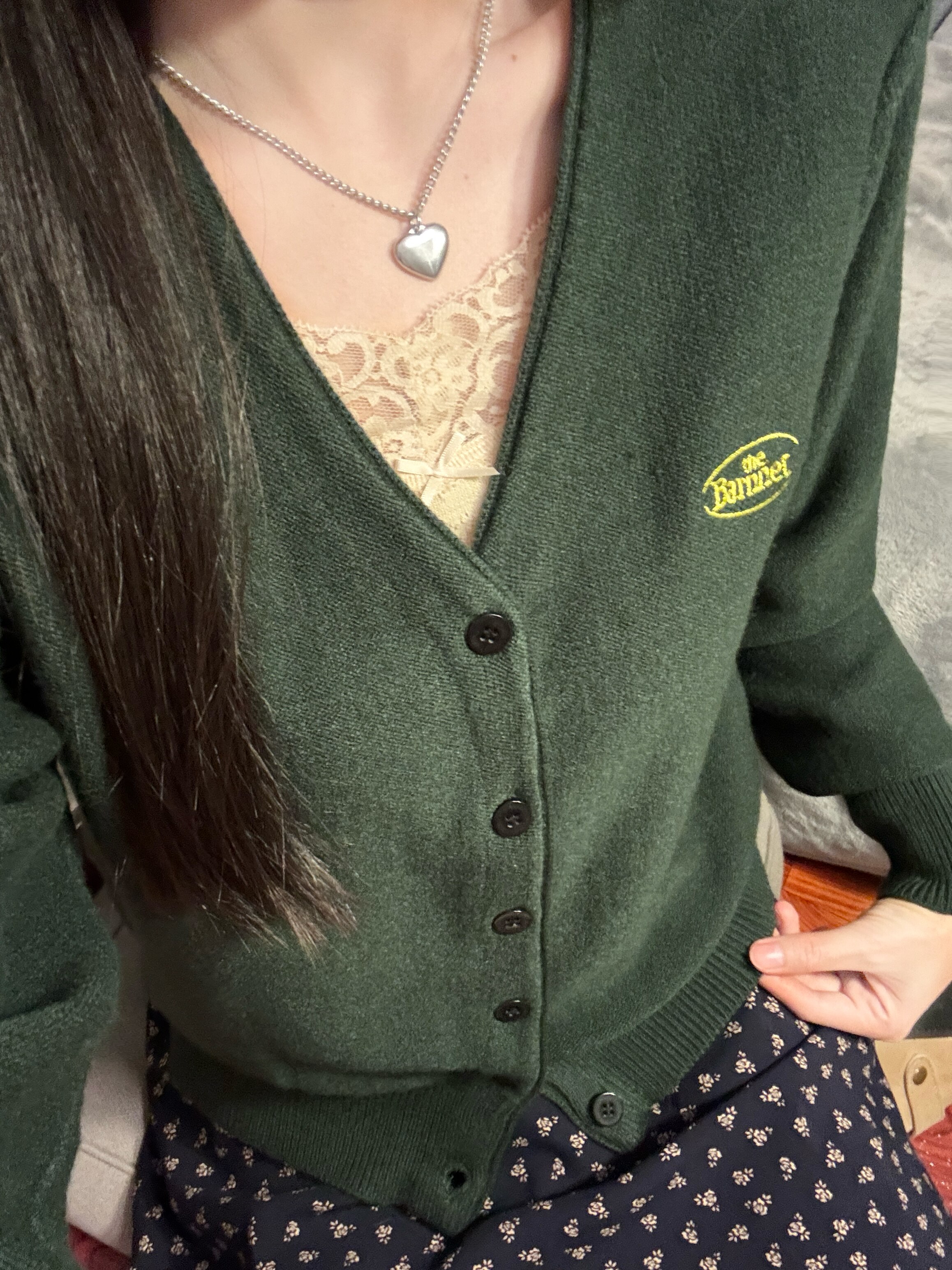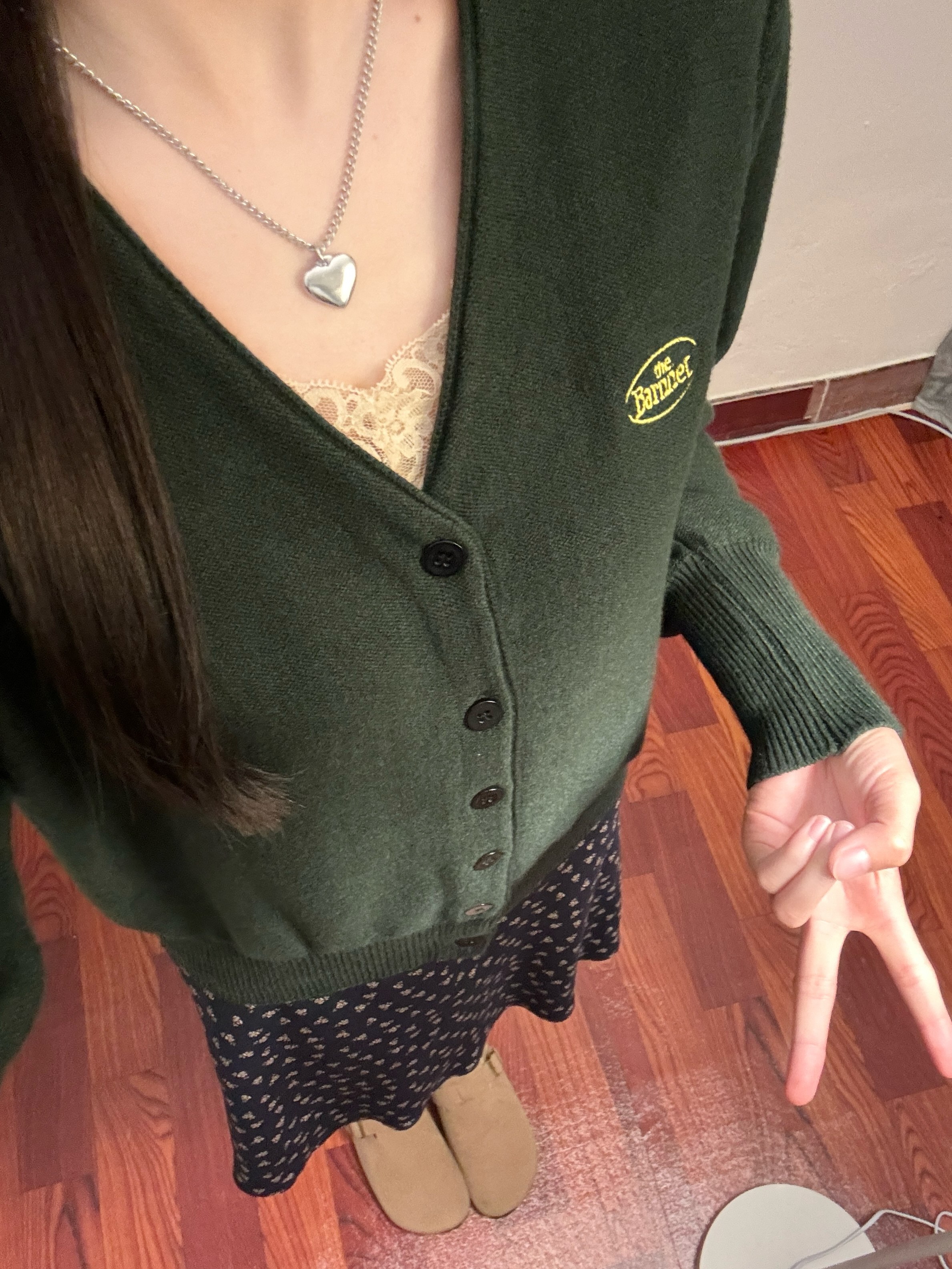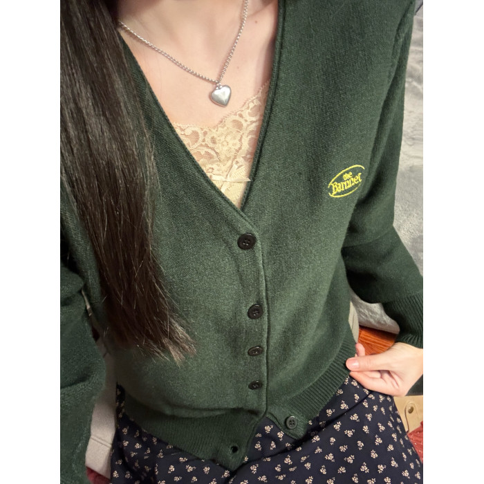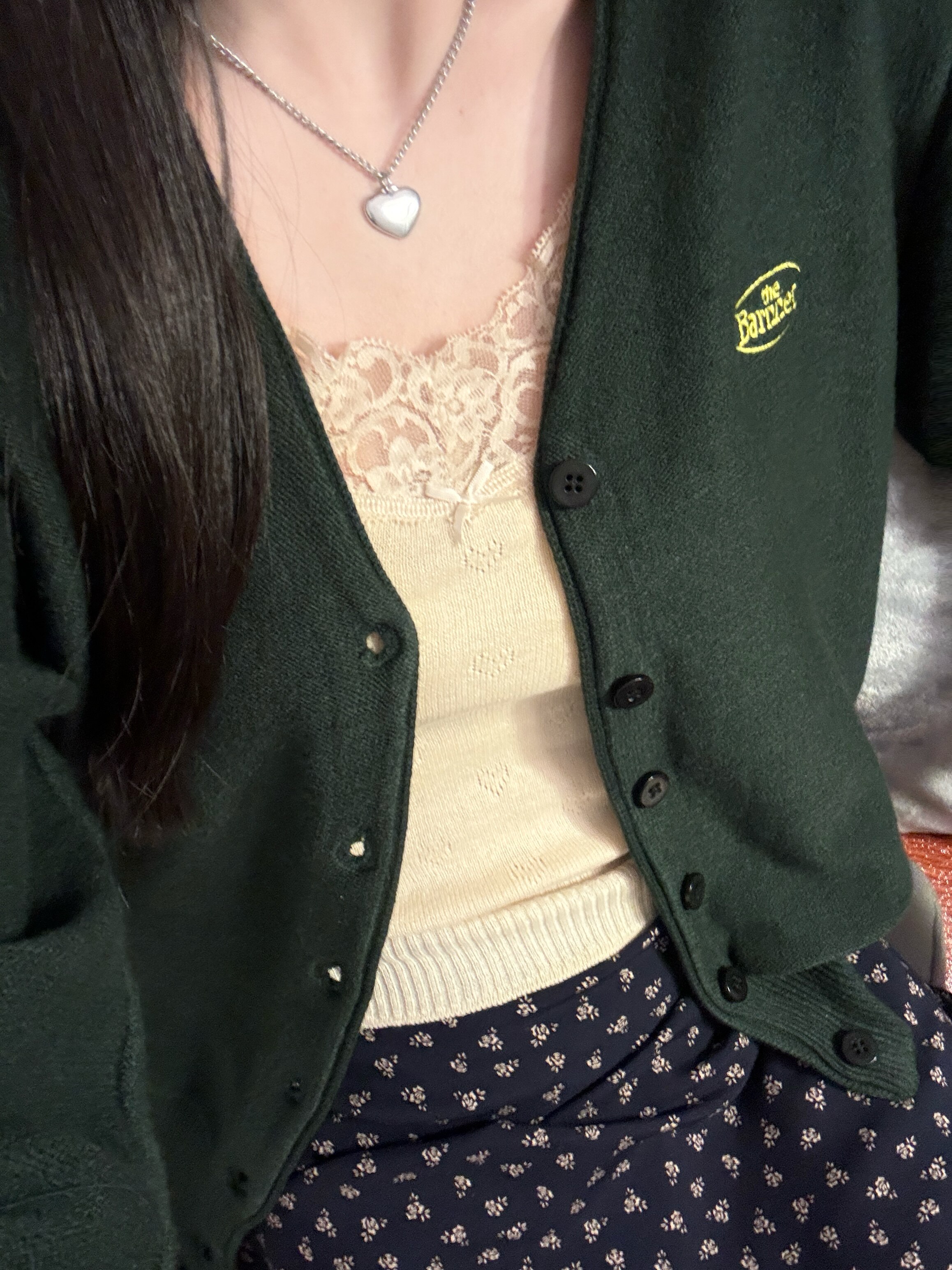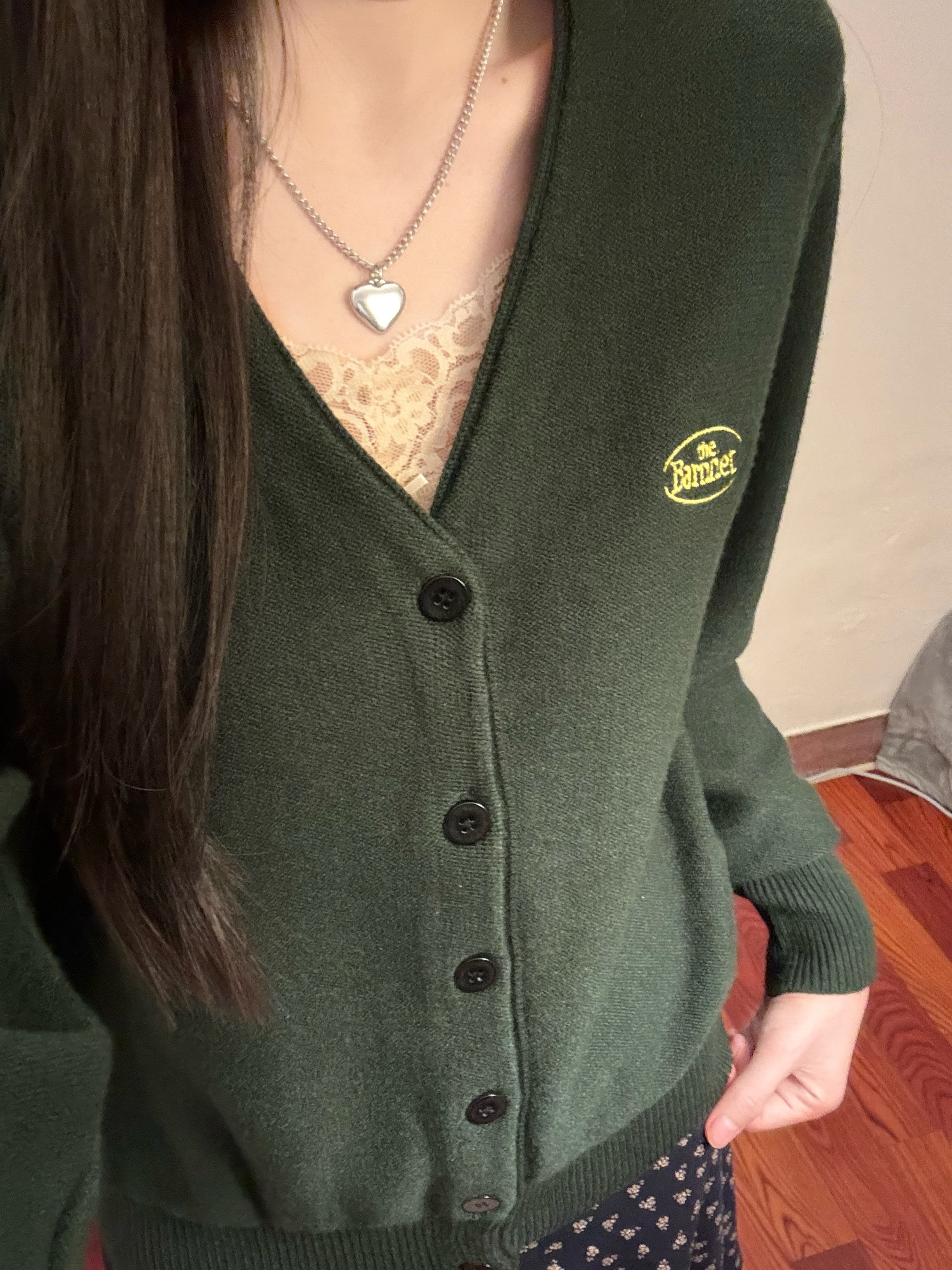 Brandy girl Bm顯冷白復古聖誕綠氛圍感毛衣針織衫開衫女秋冬2024