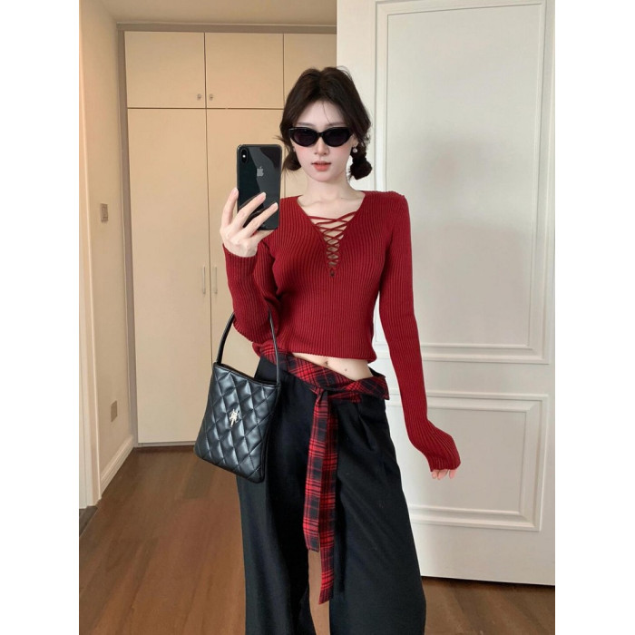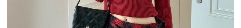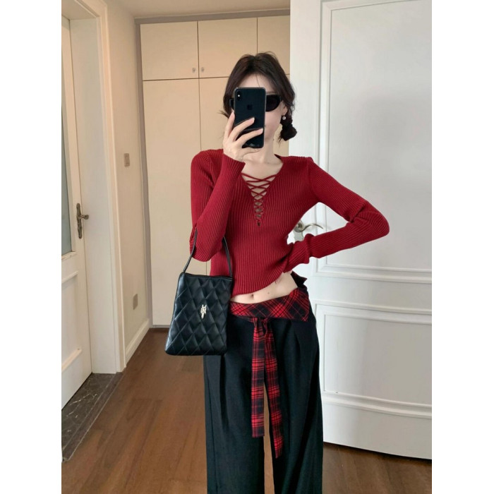 聖誕紅色修身針織衫上衣女設計感小衆辣妹內搭打底衫毛衣秋季新款