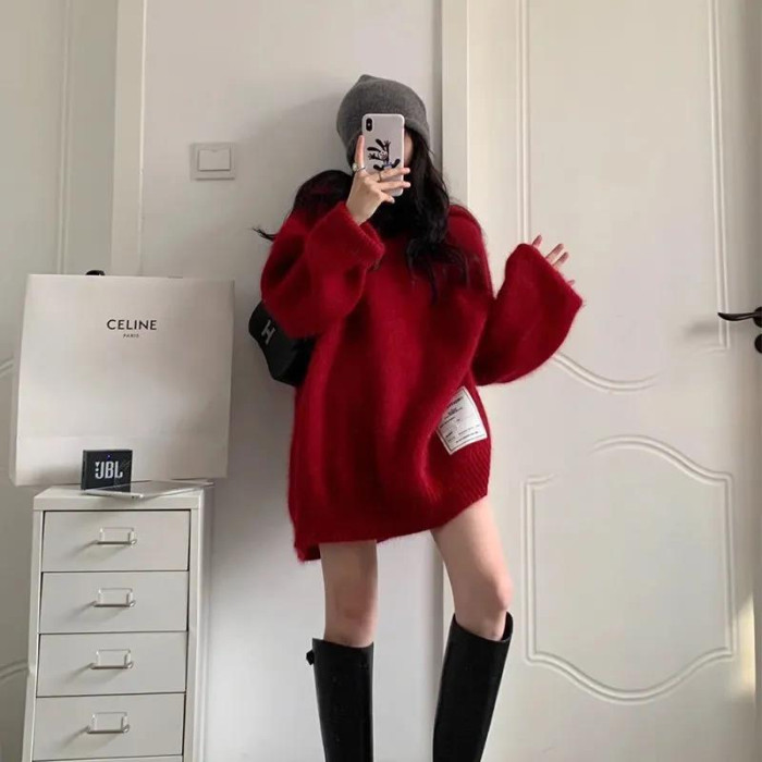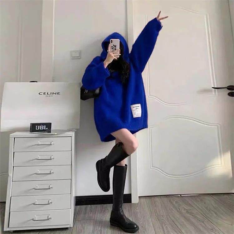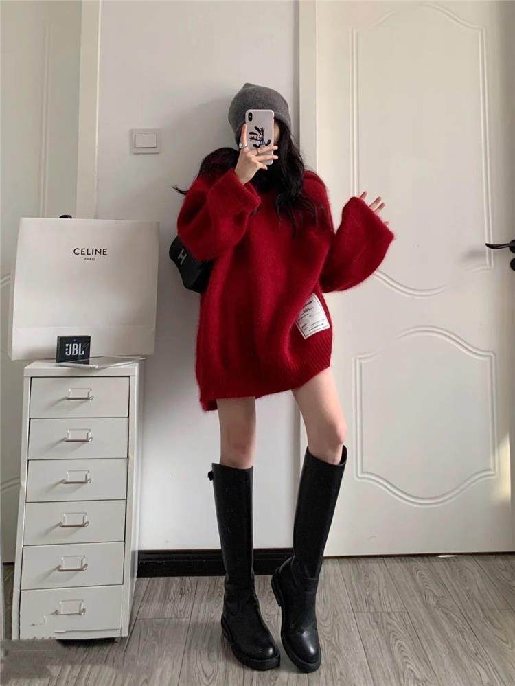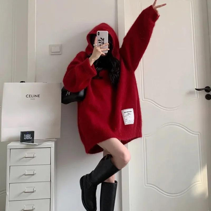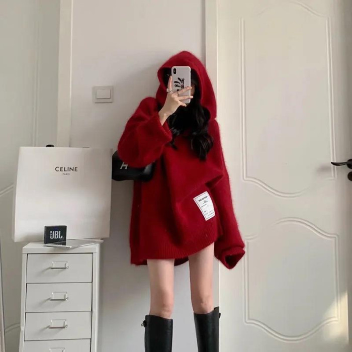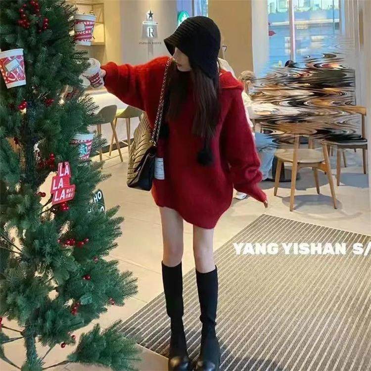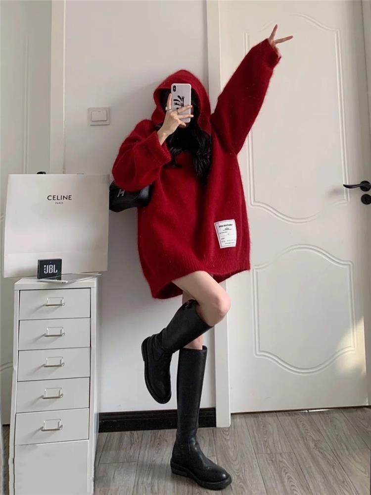 【非常厚】75-300斤加大碼2023秋冬季新款連帽外套聖誕紅色毛衣女