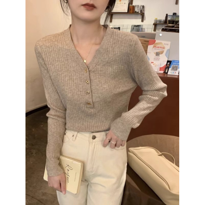 v領正肩針織衫毛衣女秋冬2025新款大碼胖mm內搭打底衫氣質上衣潮