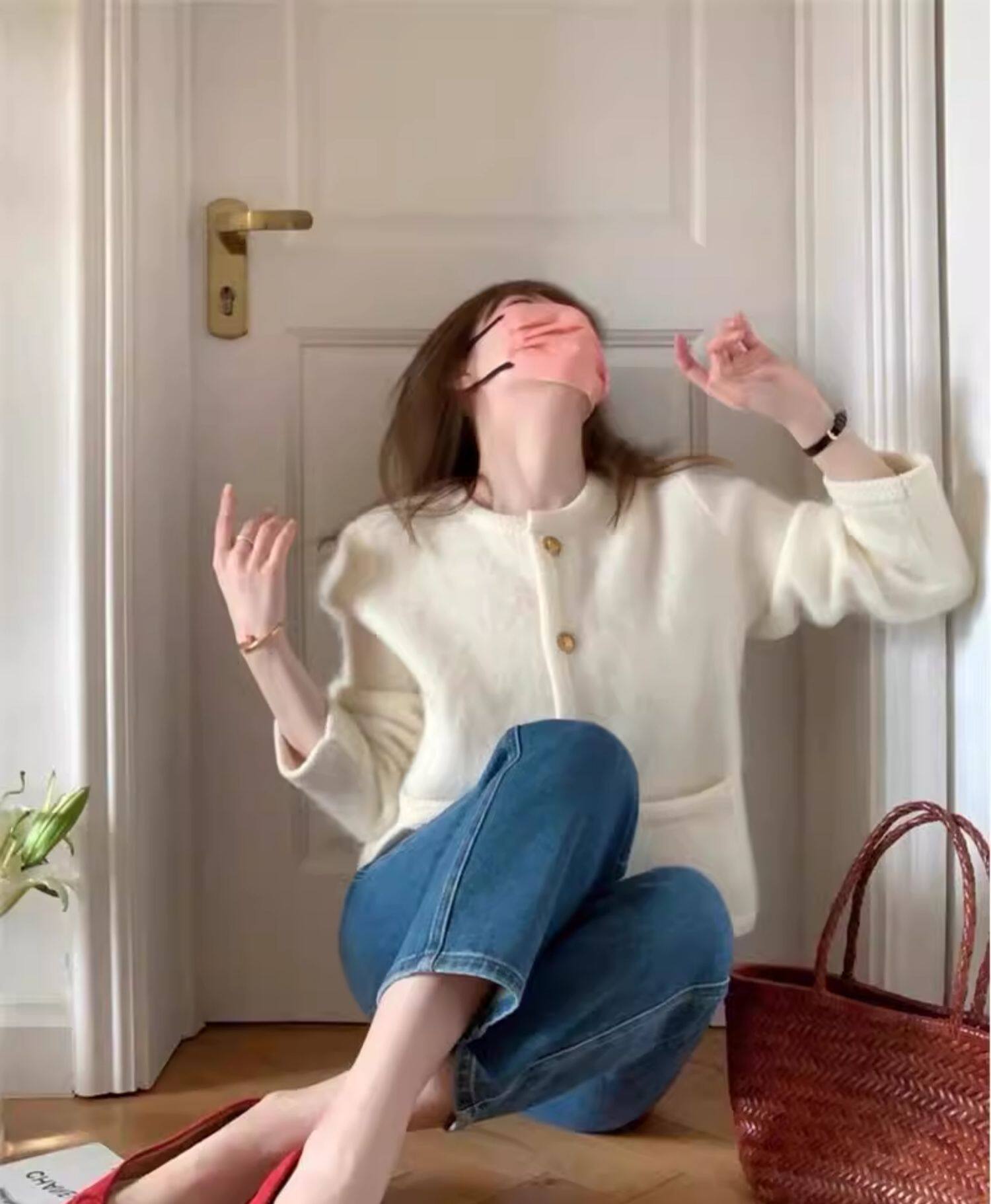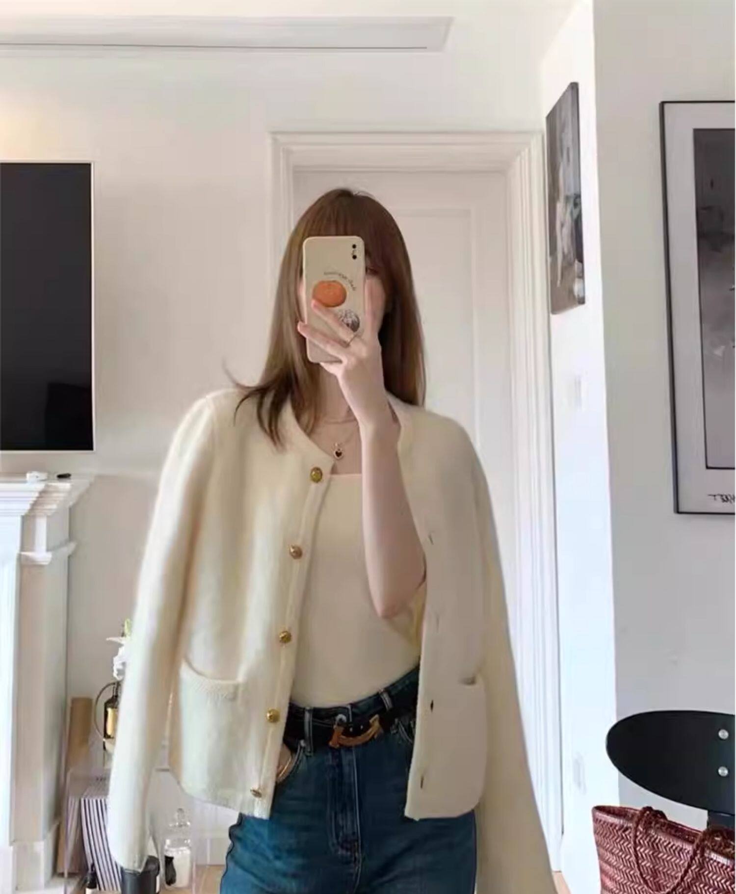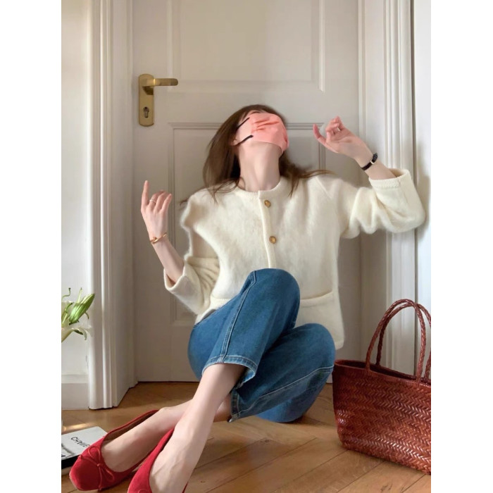 小香風氣質馬海毛毛衣外套女早秋2024新款針織開衫高級感外搭上衣