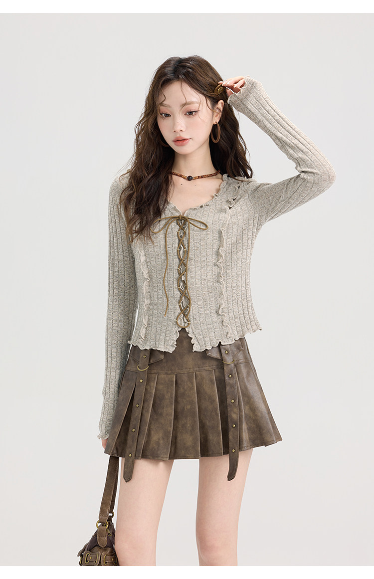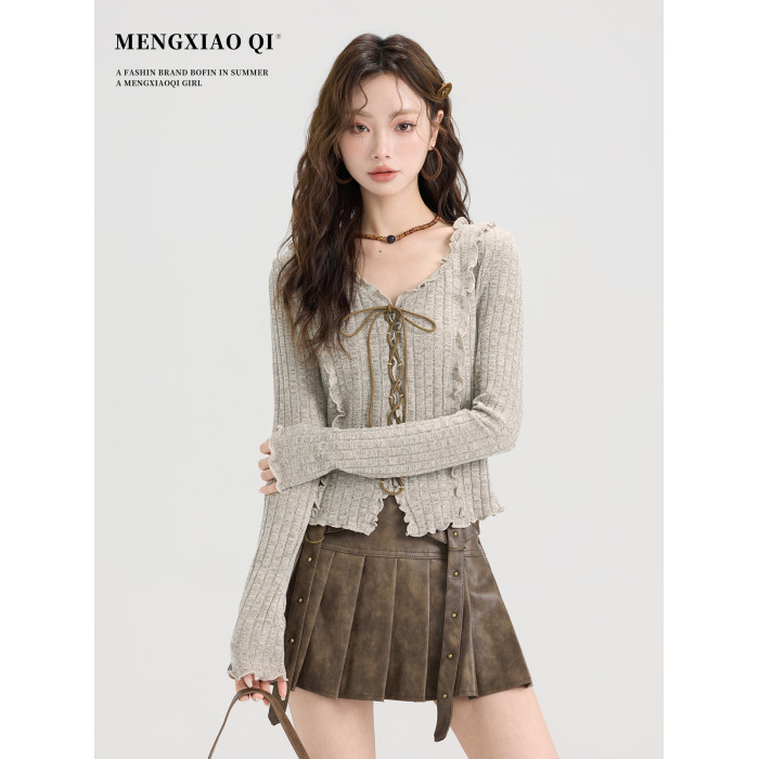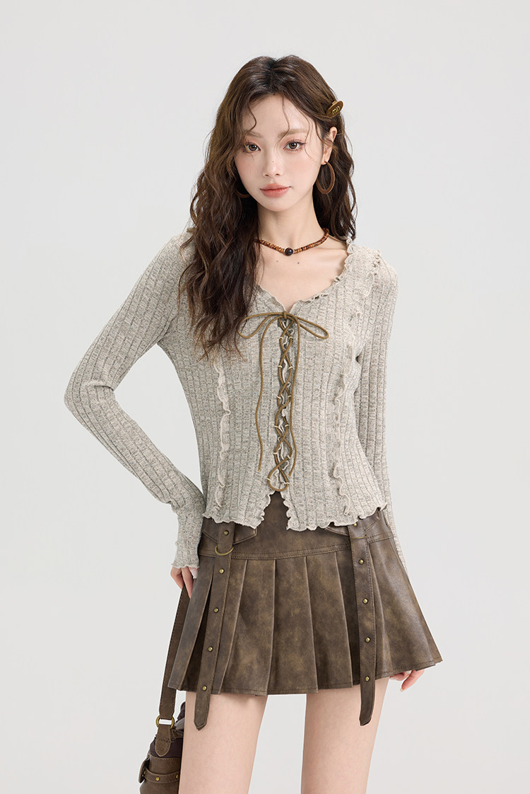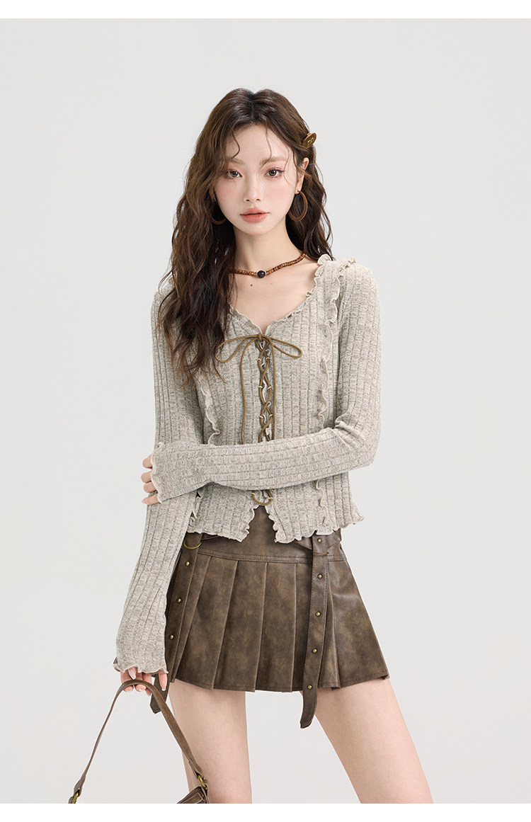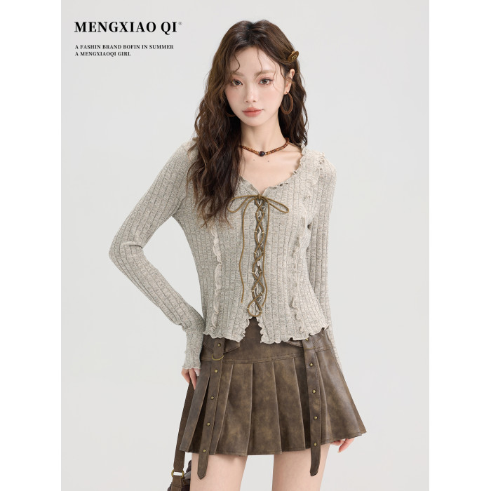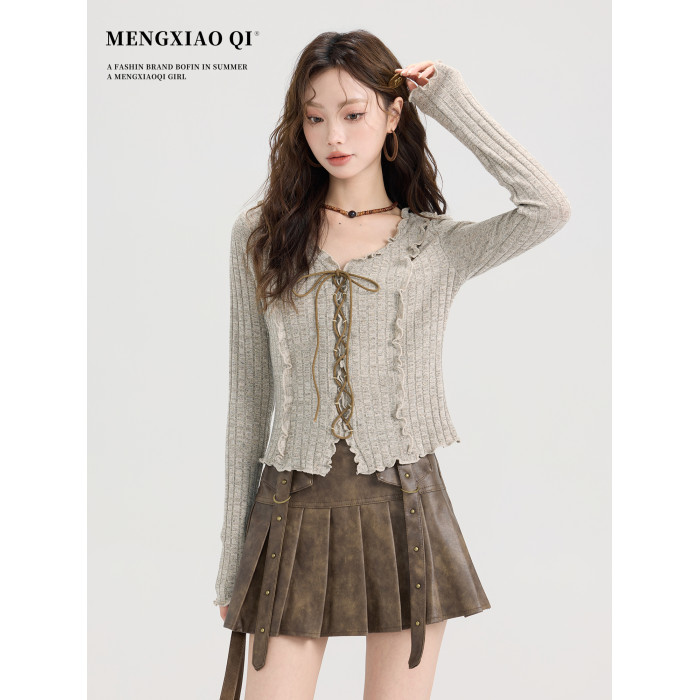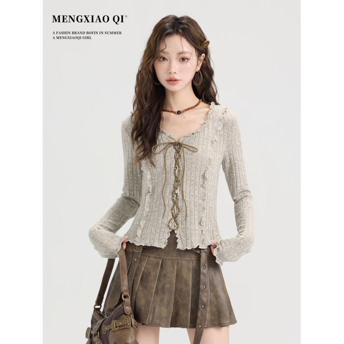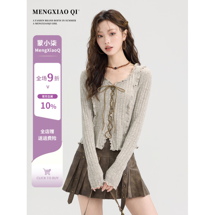 矇小柒美拉德長袖針織衫女裝秋季復古辣妹修身打底衫內搭上衣別致