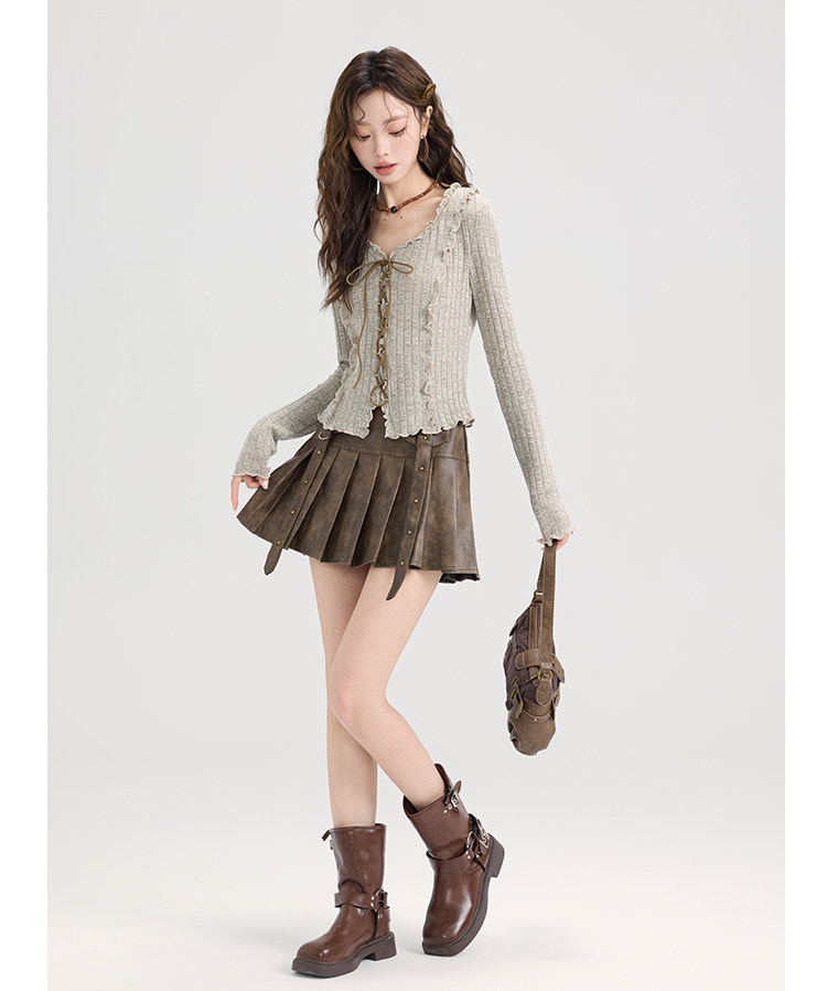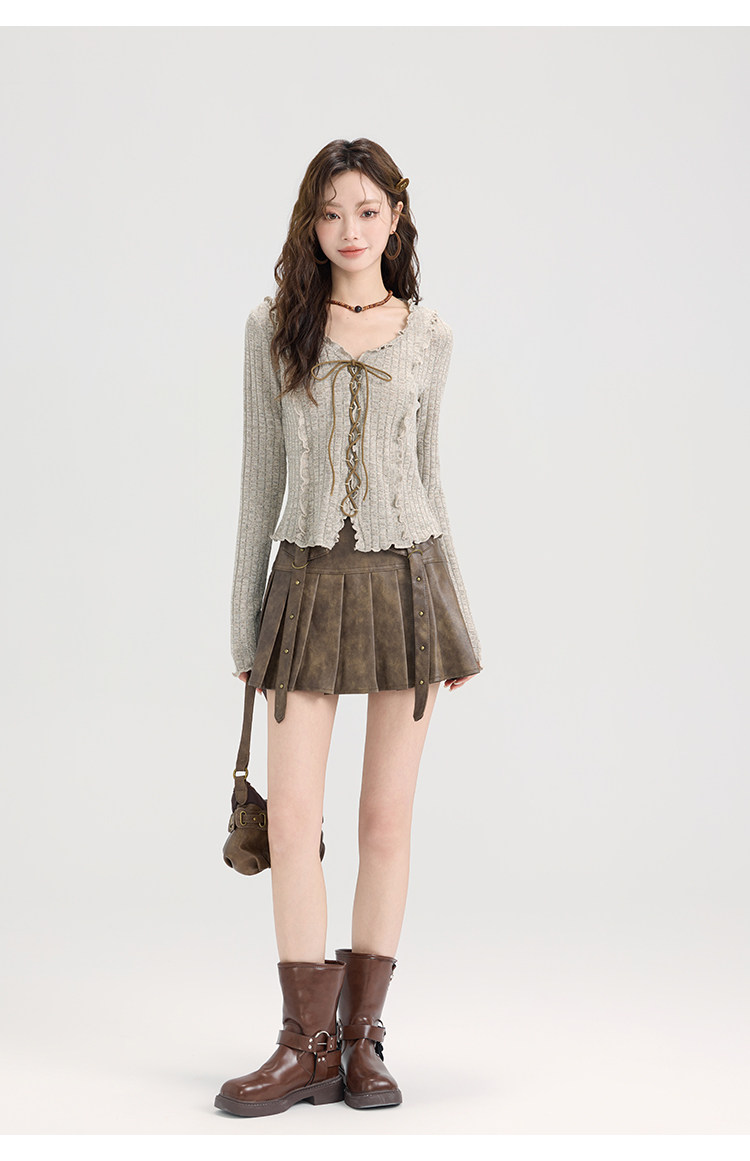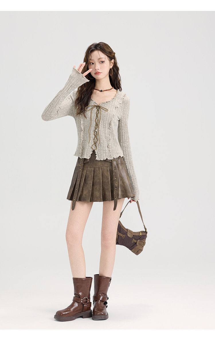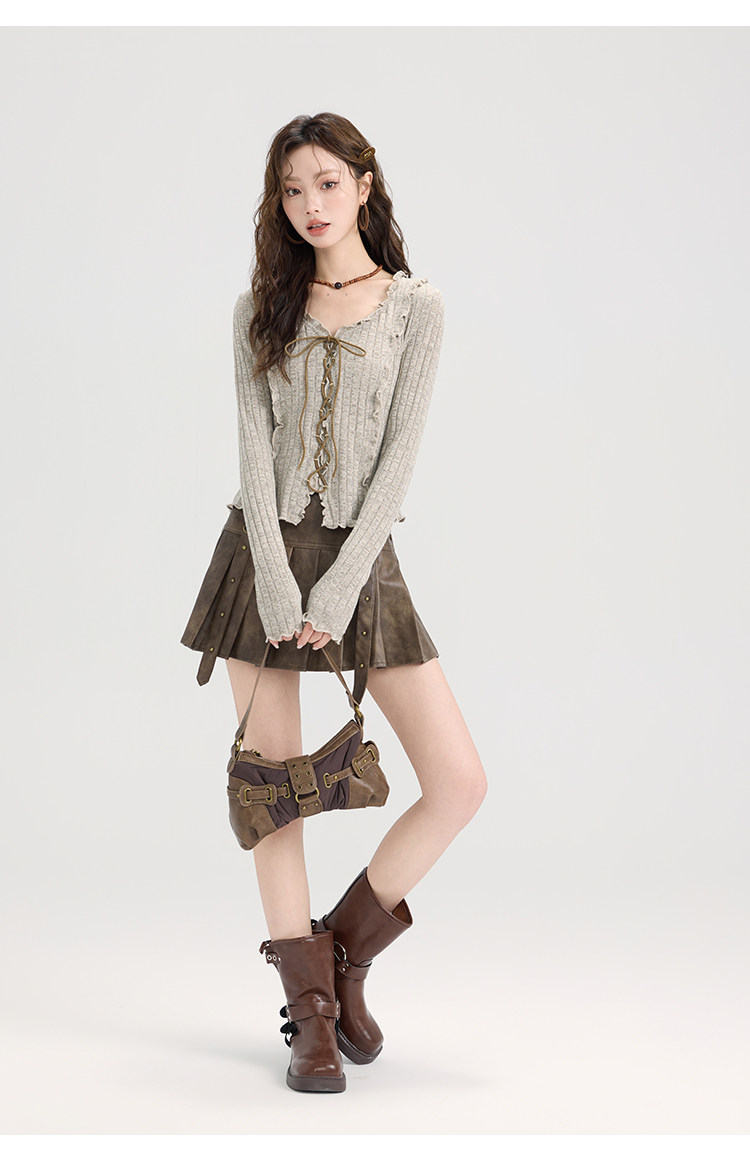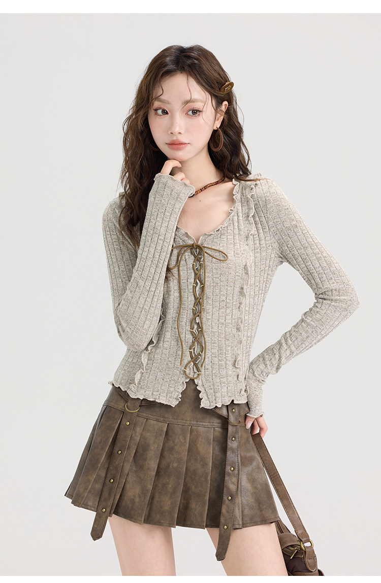 矇小柒美拉德長袖針織衫女裝秋季復古辣妹修身打底衫內搭上衣別致