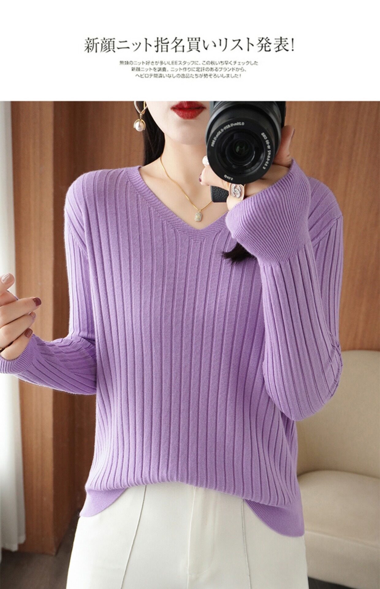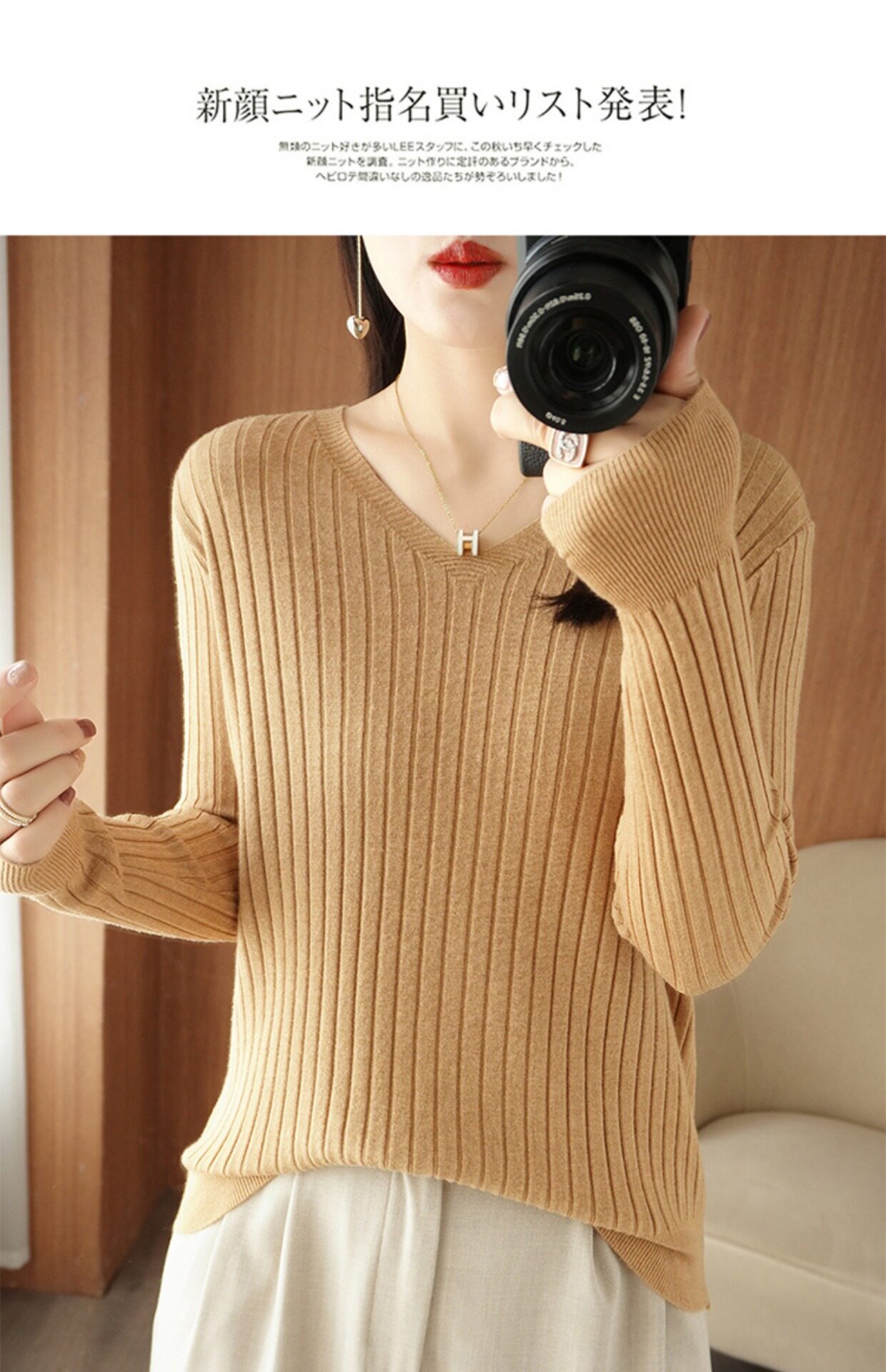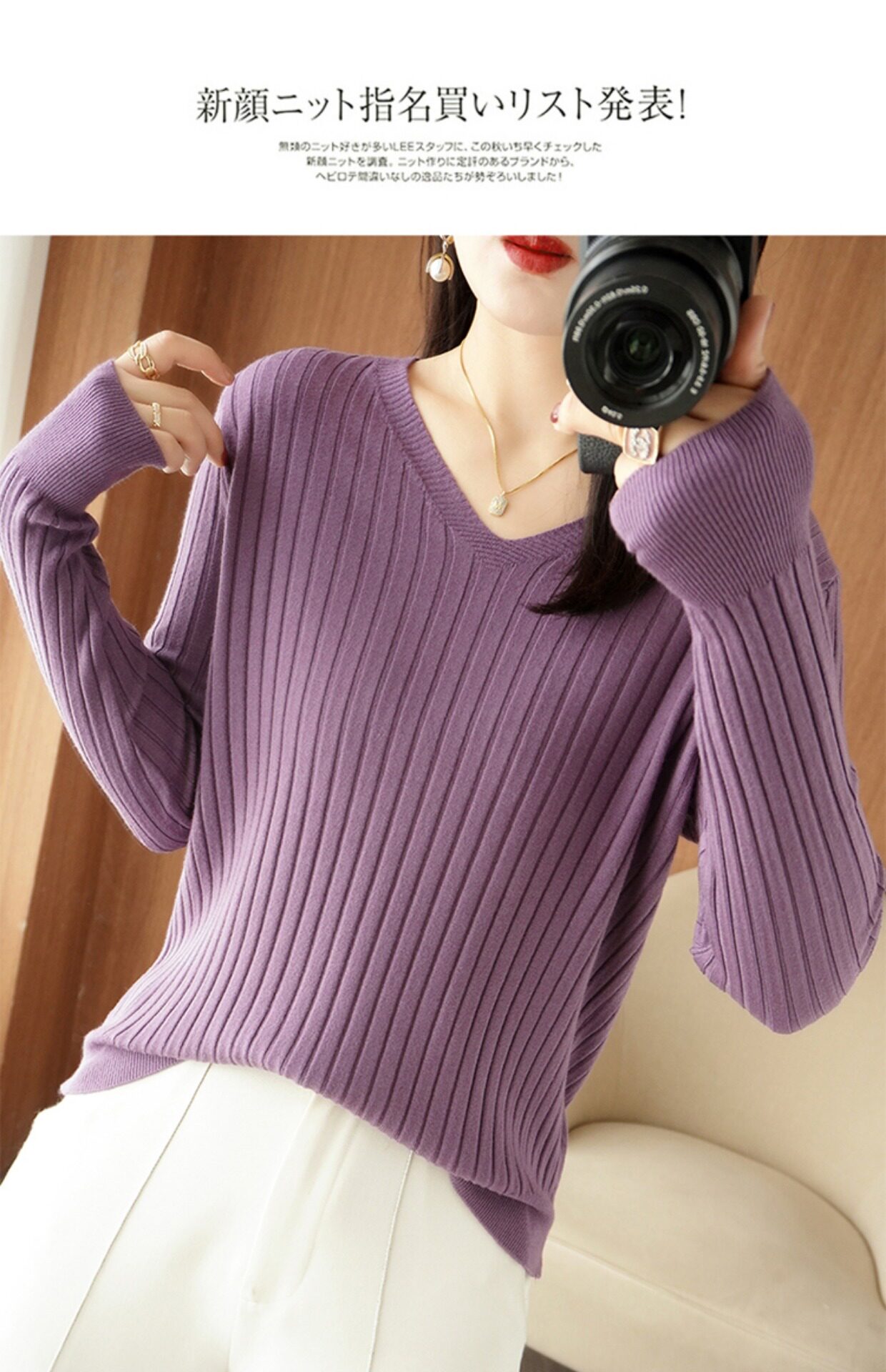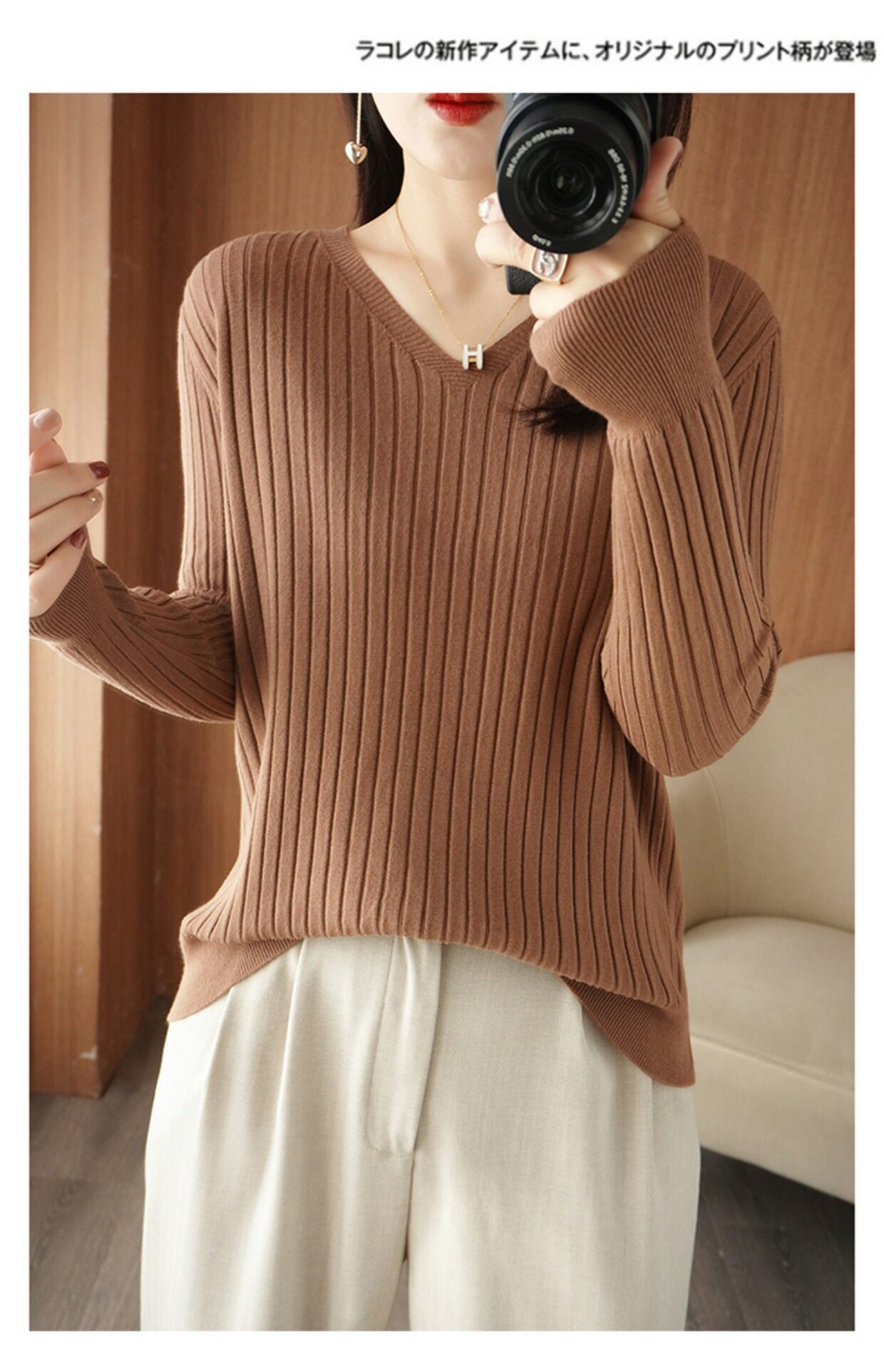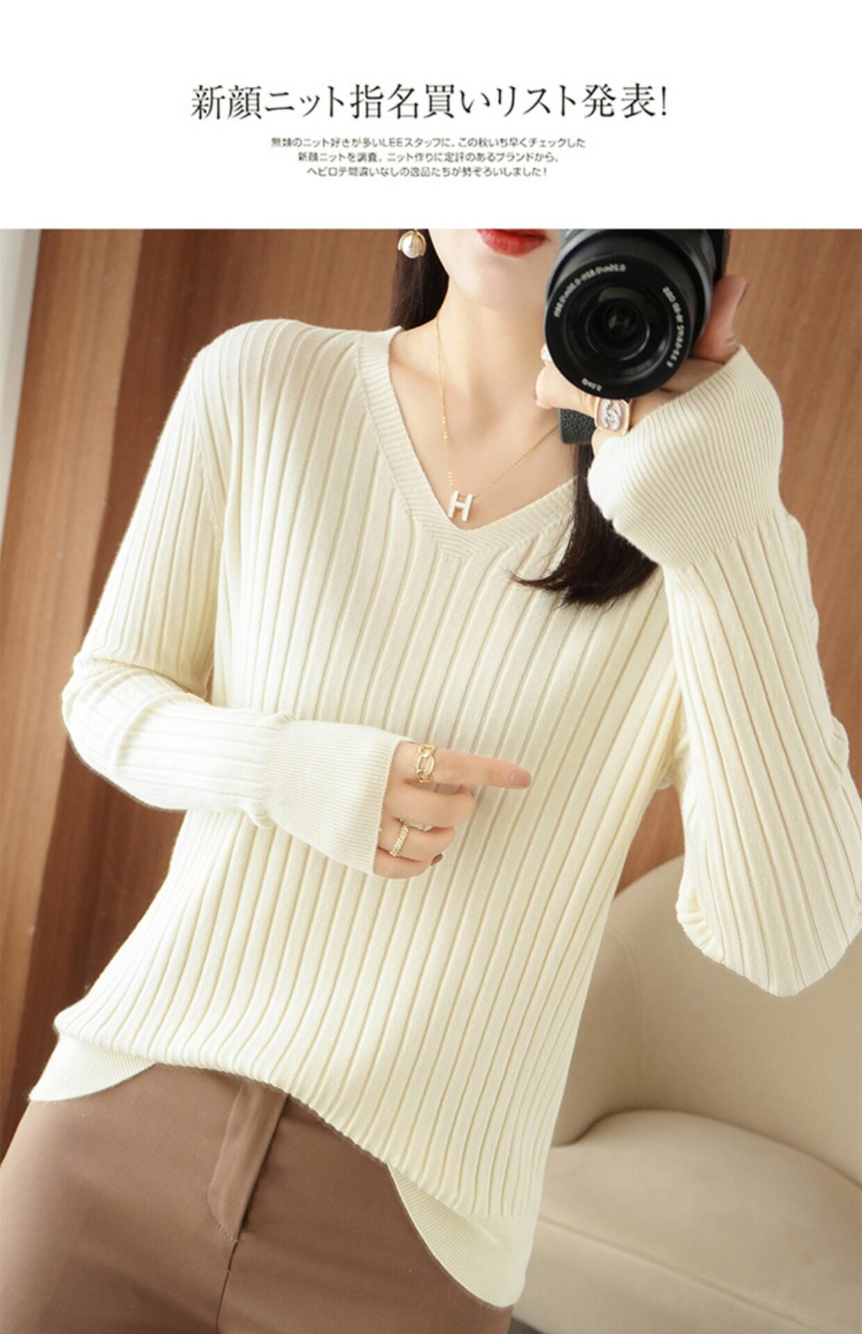新款長袖針織衫女V領坑條套頭打底衫秋冬寬松顯瘦休閒百搭羊毛衫