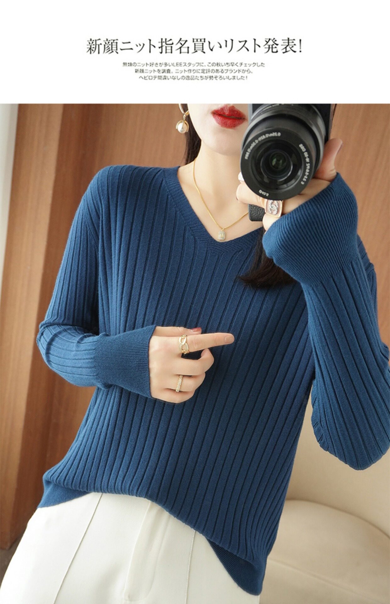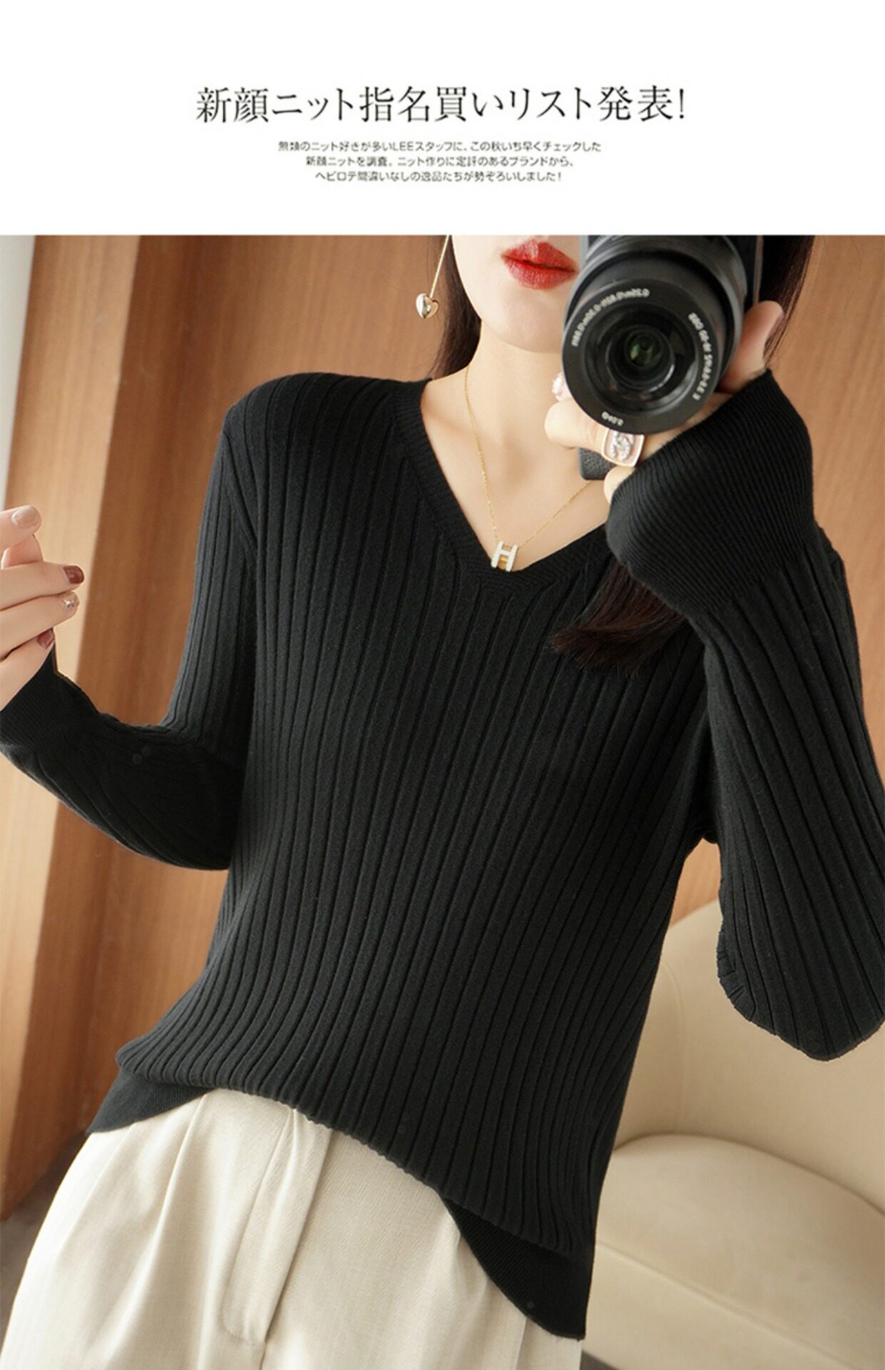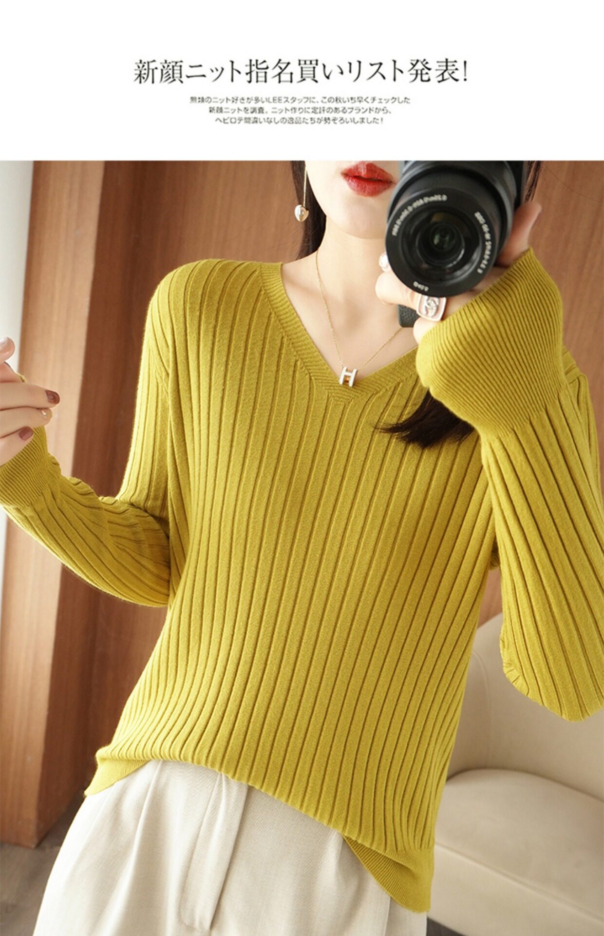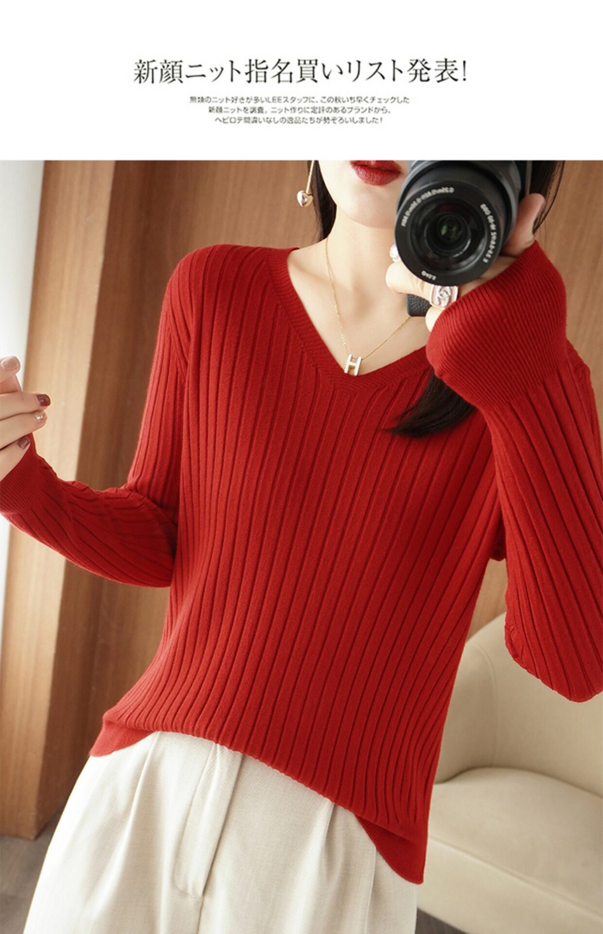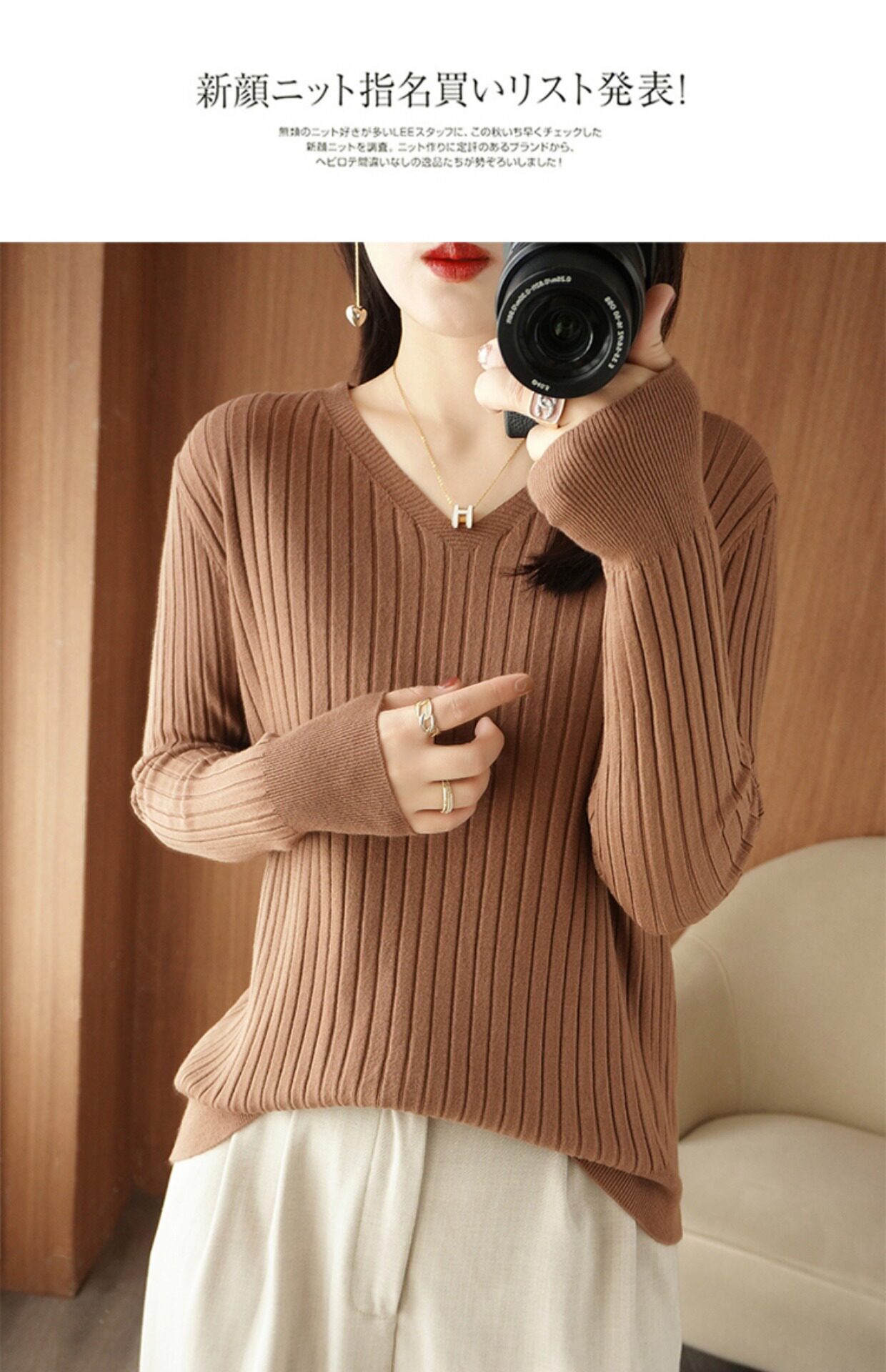 新款長袖針織衫女V領坑條套頭打底衫秋冬寬松顯瘦休閒百搭羊毛衫