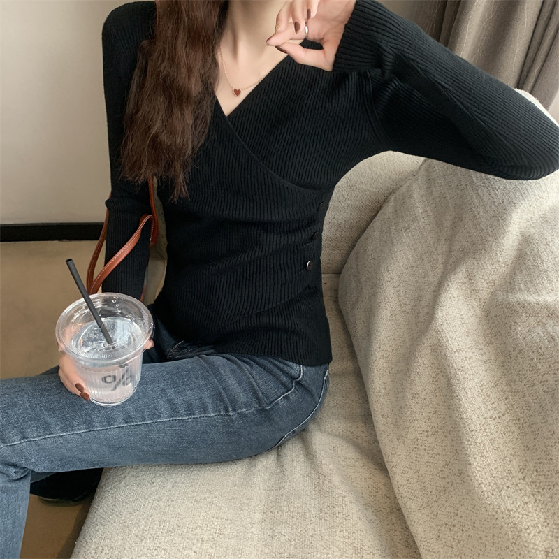 V領毛衣打底衫女胖mm大碼顯瘦洋氣不規則針織衫別致獨特內搭上衣