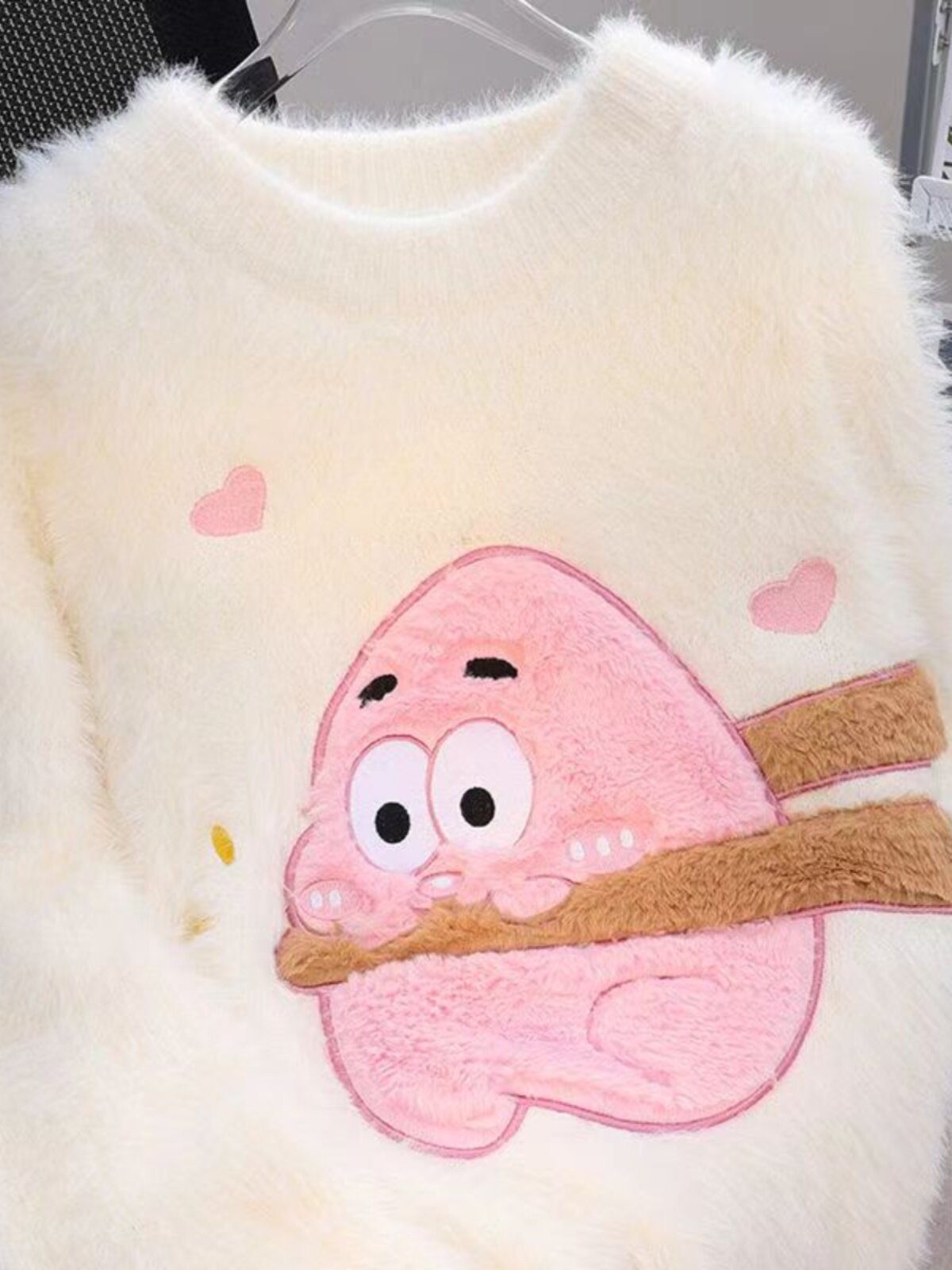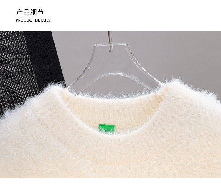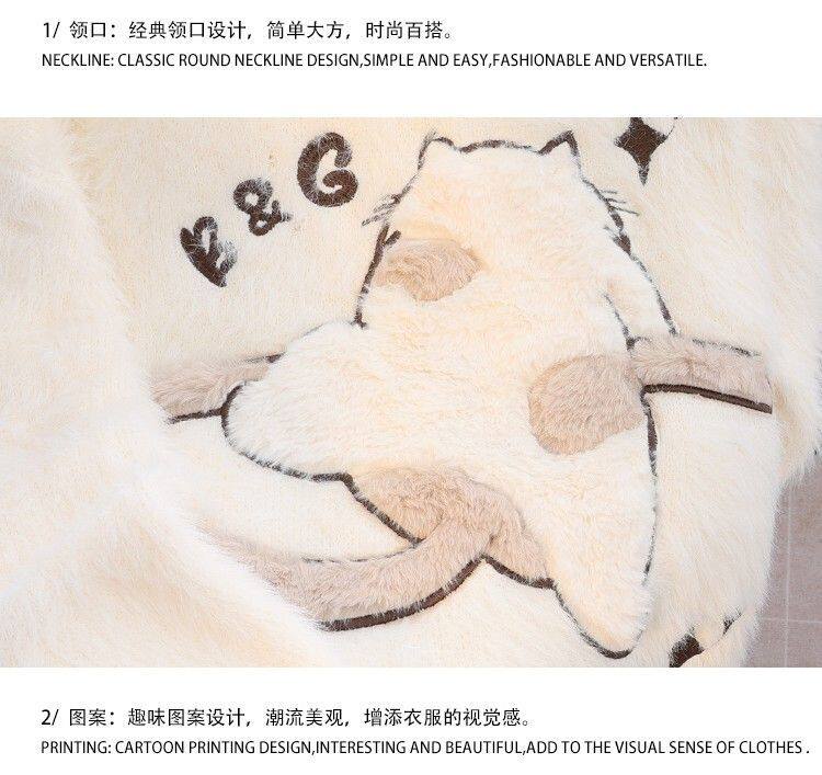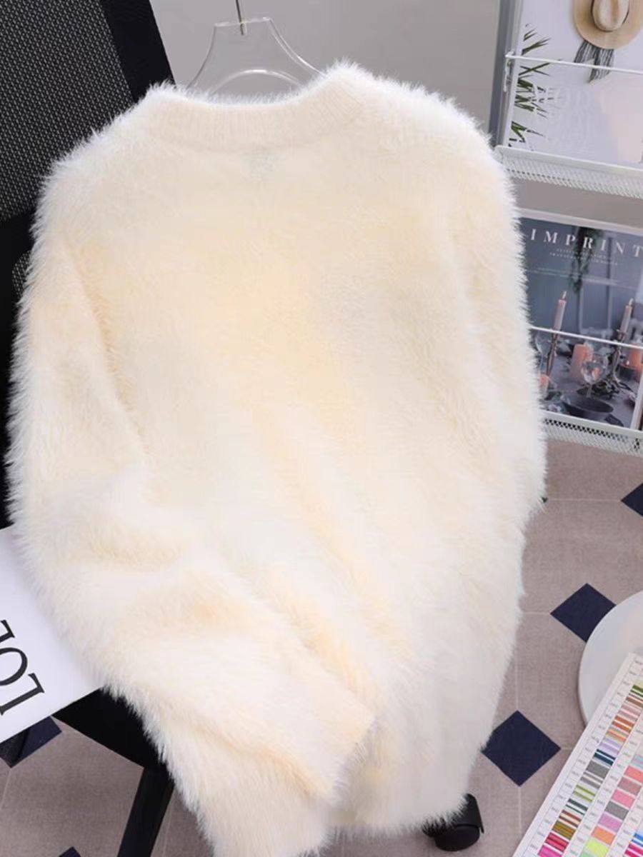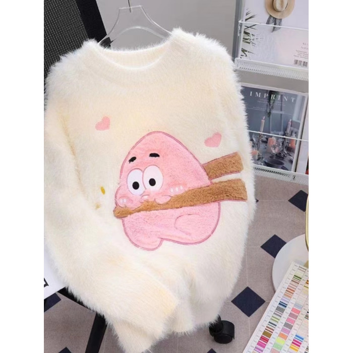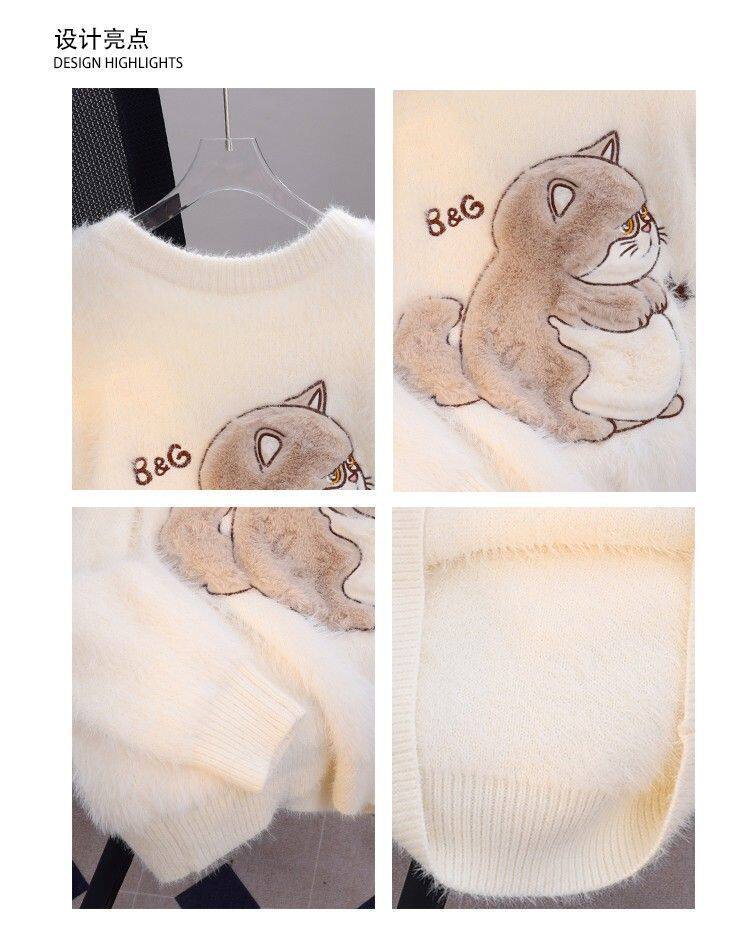 慵懶風仿貂絨卡通綉花毛衣女秋冬新款寬松針織打底衫軟糯植絨上衣