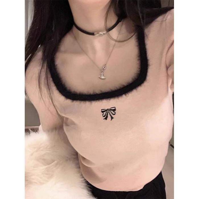 高級感純欲風方領內搭毛衣女秋冬2025新款秋裝修身打底衫針織上衣