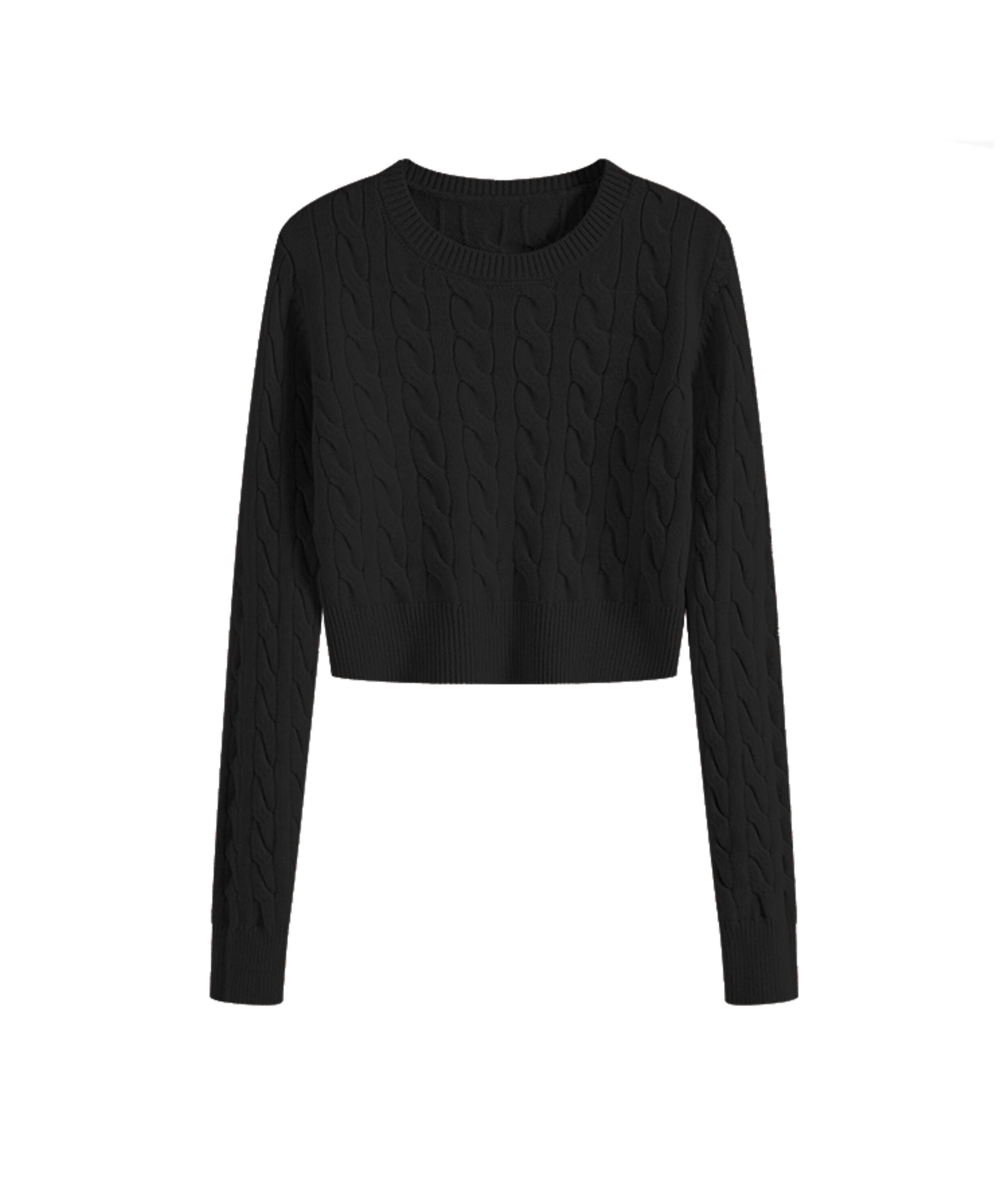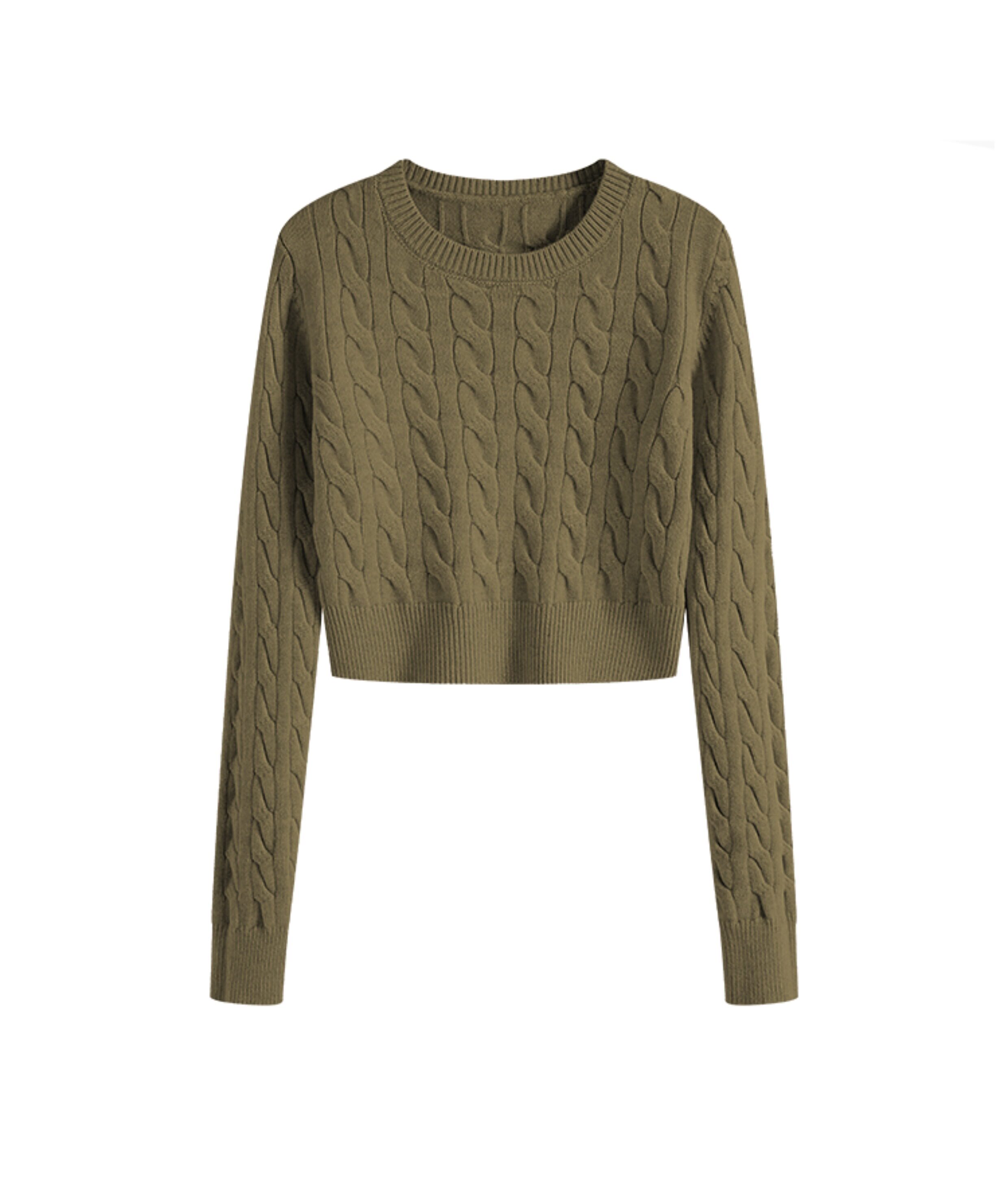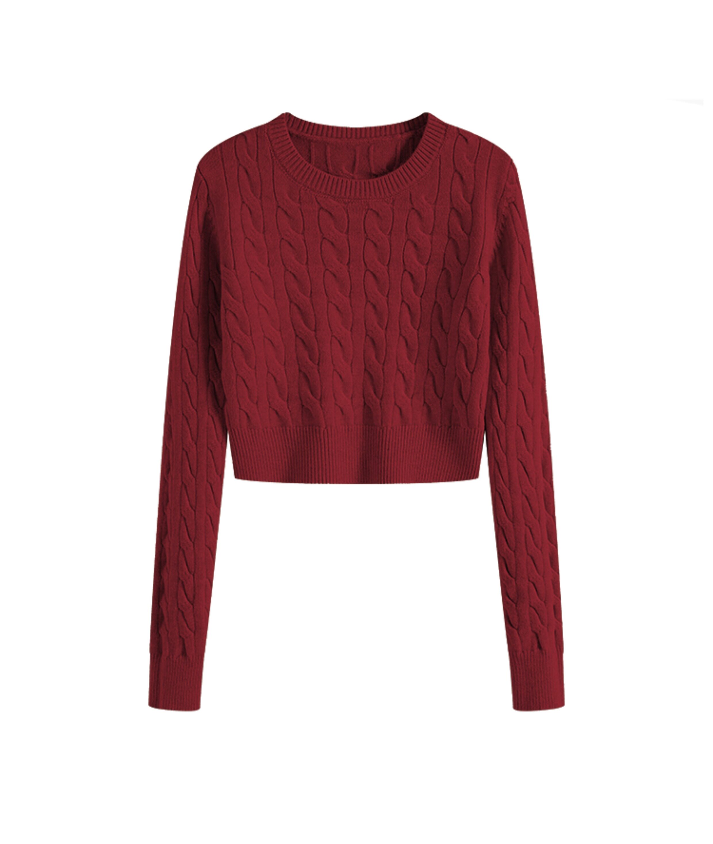 秋冬季圓領厚款毛衣女短款長袖修身高腰小個子內搭麻花針織打底衫