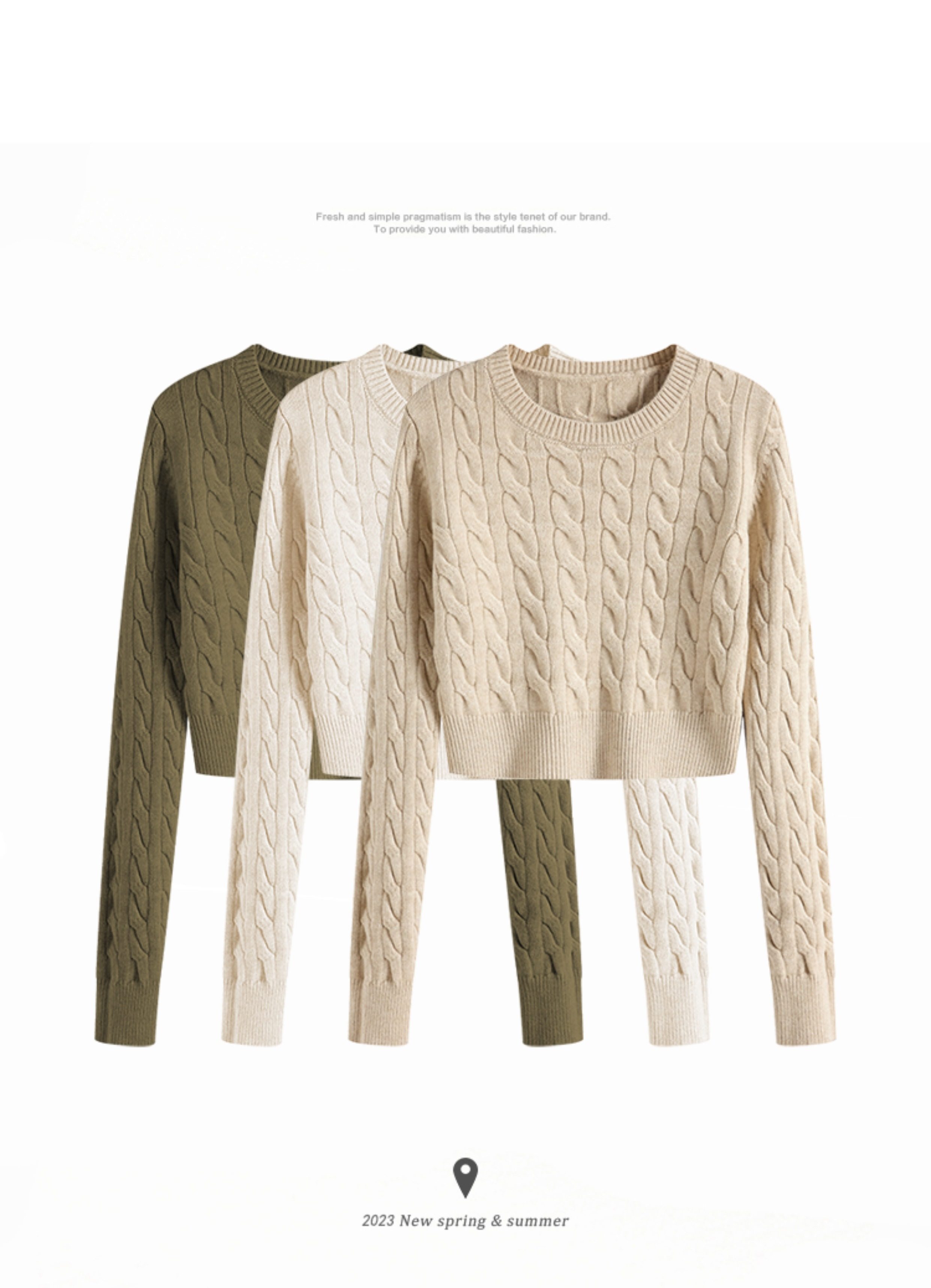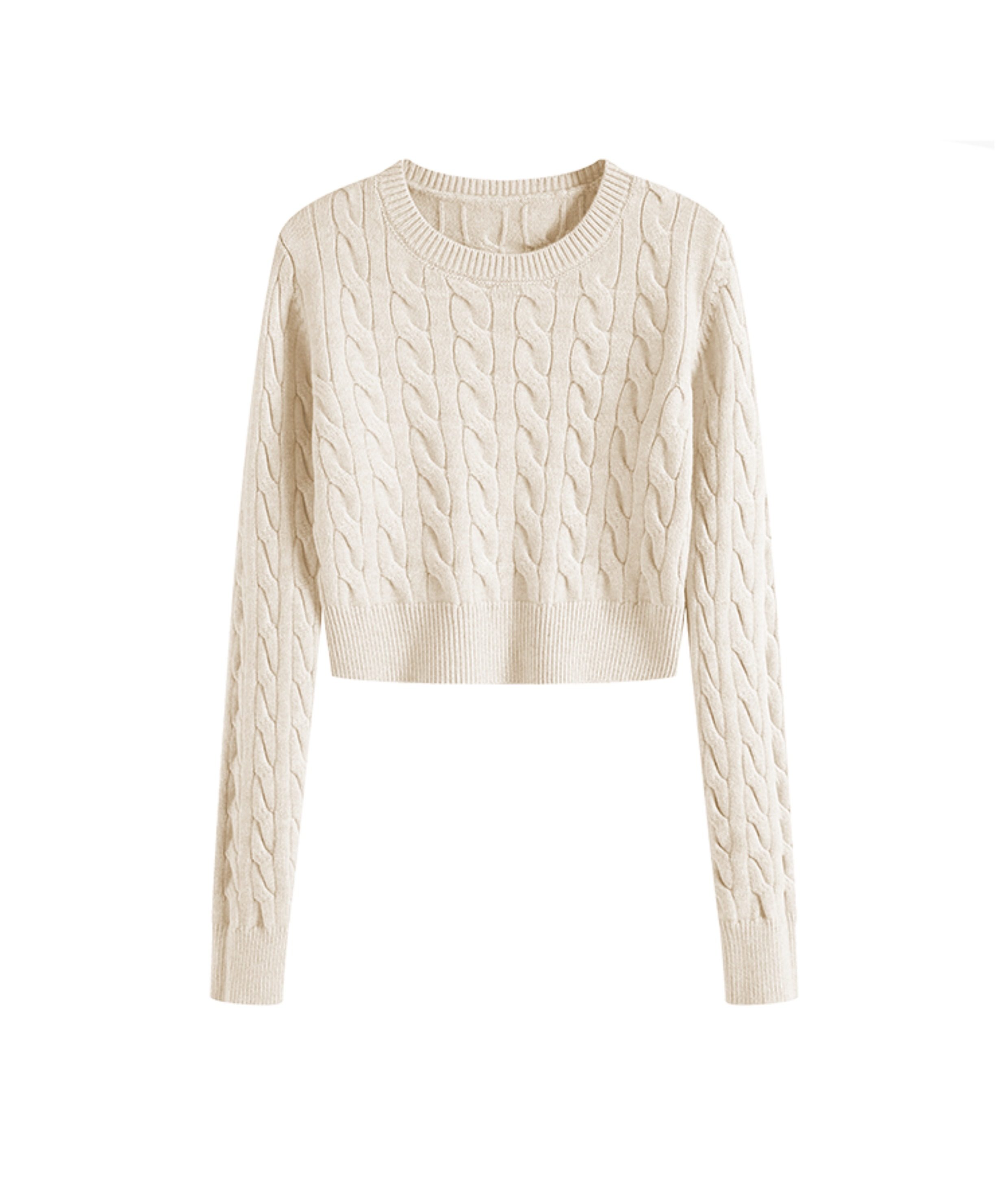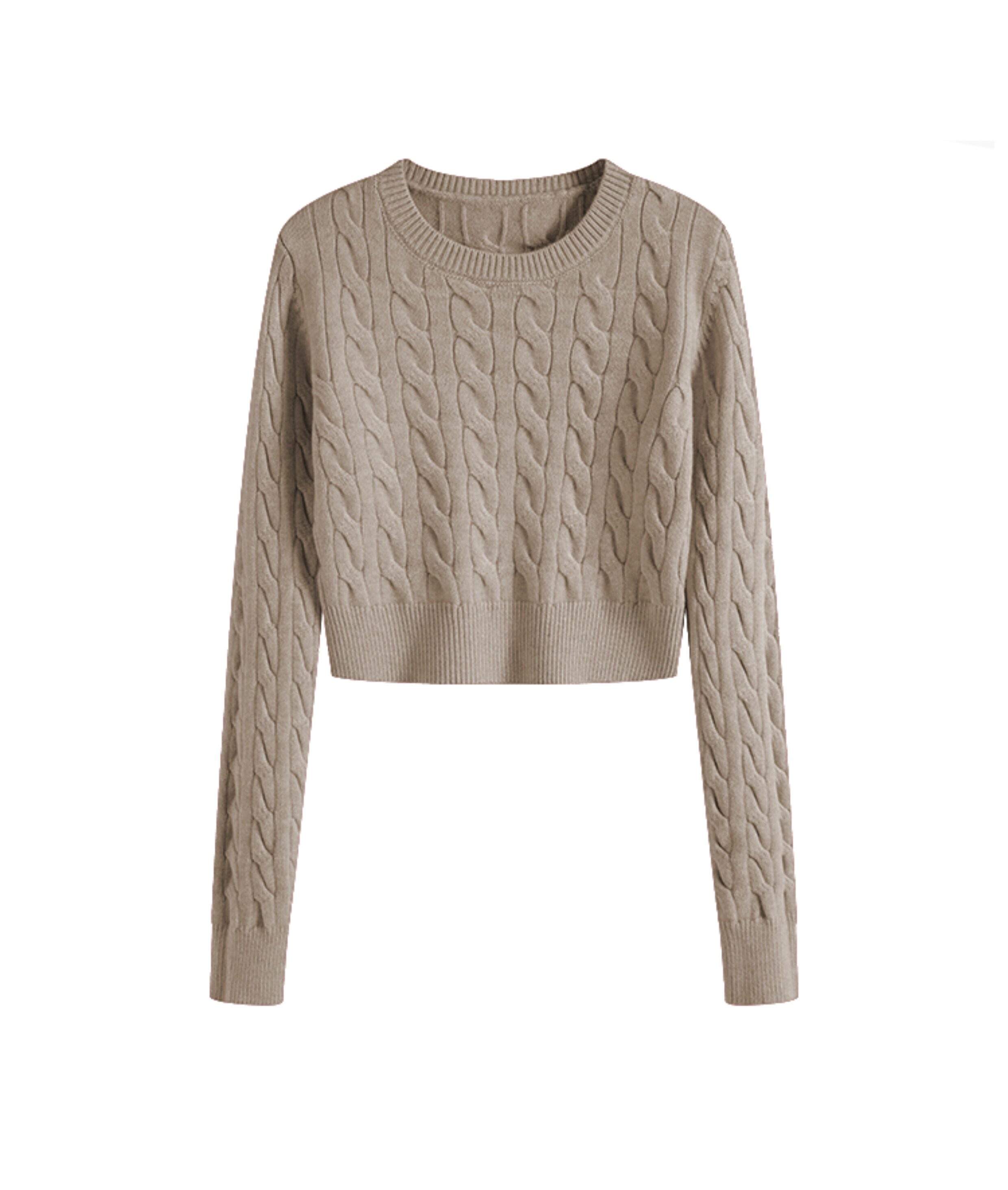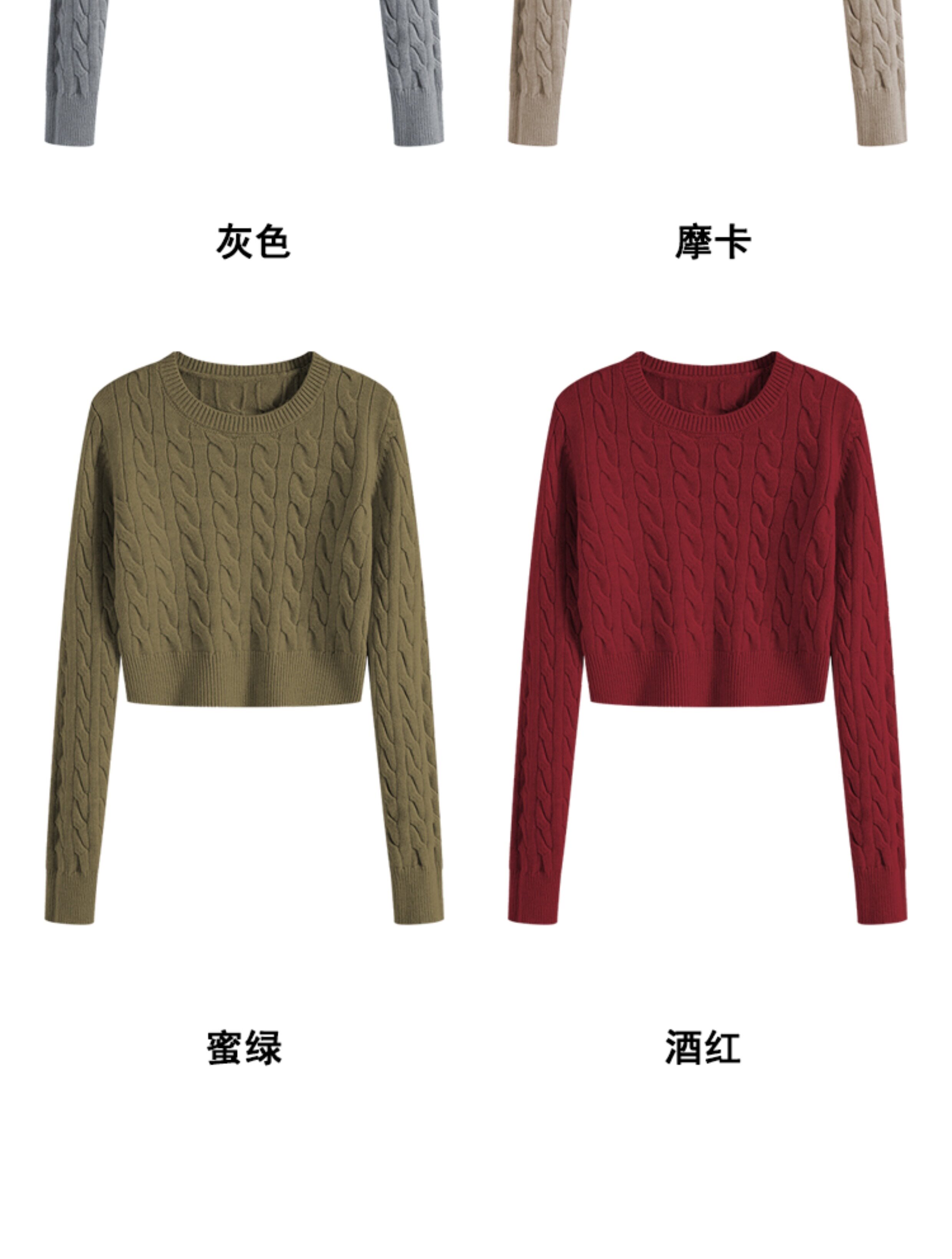 秋冬季圓領厚款毛衣女短款長袖修身高腰小個子內搭麻花針織打底衫