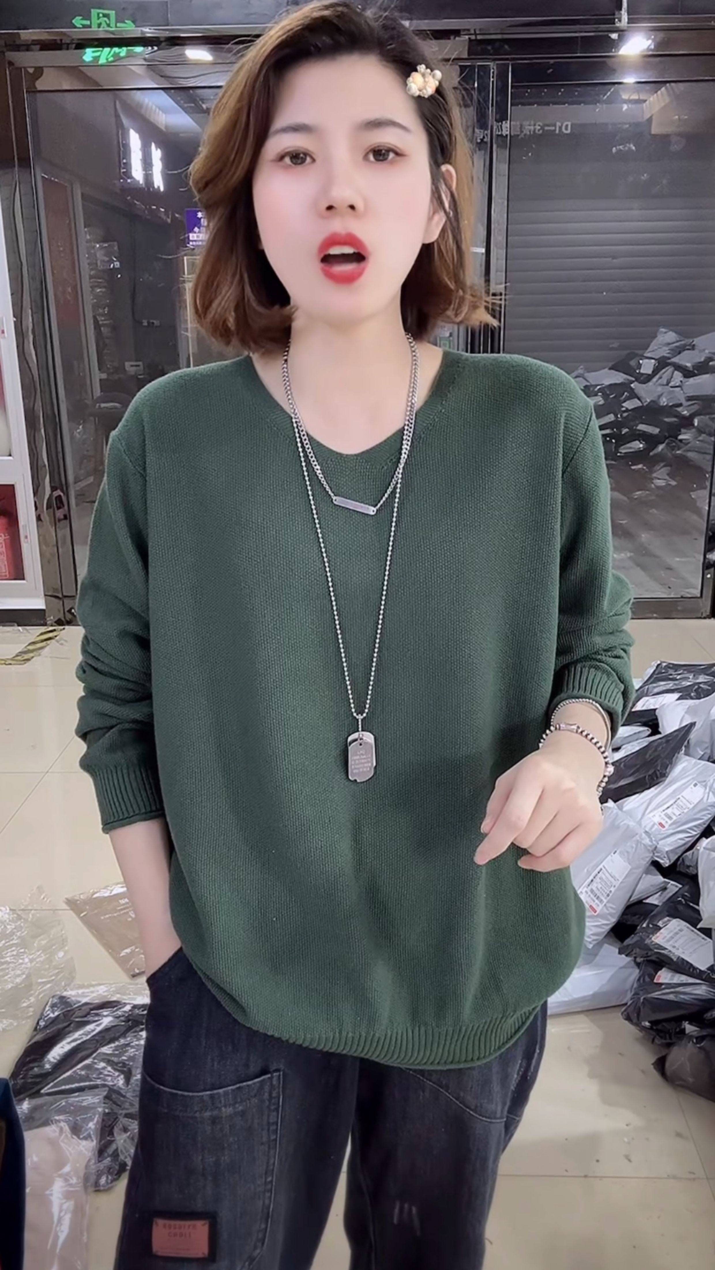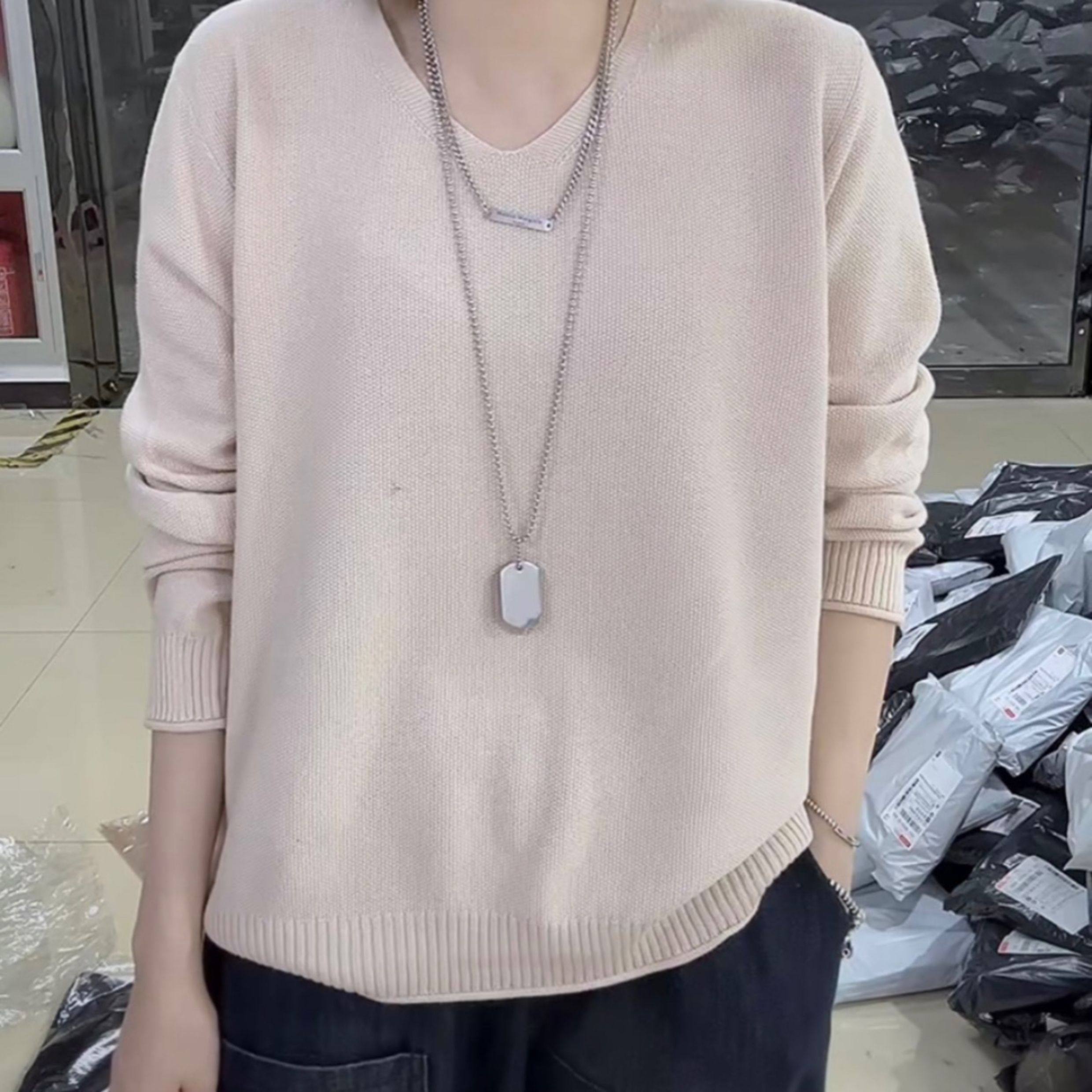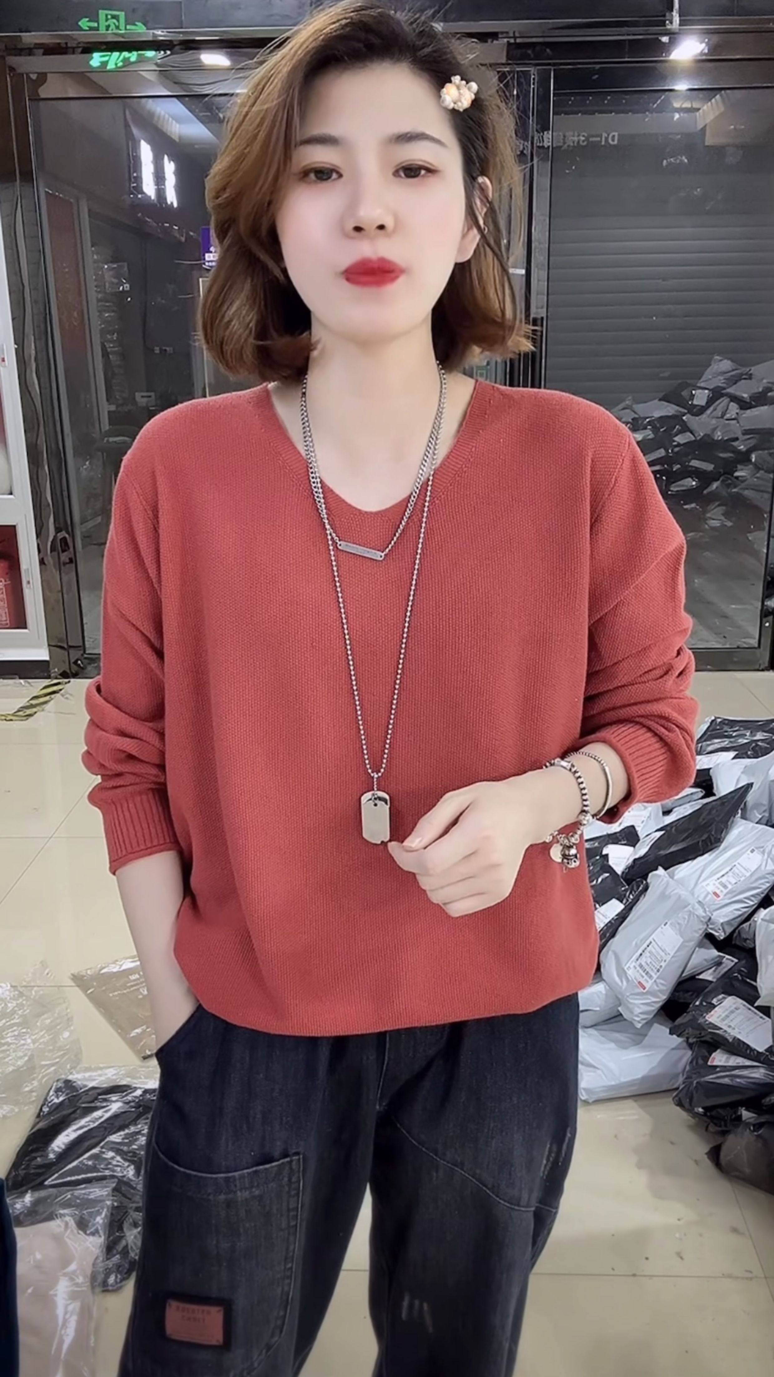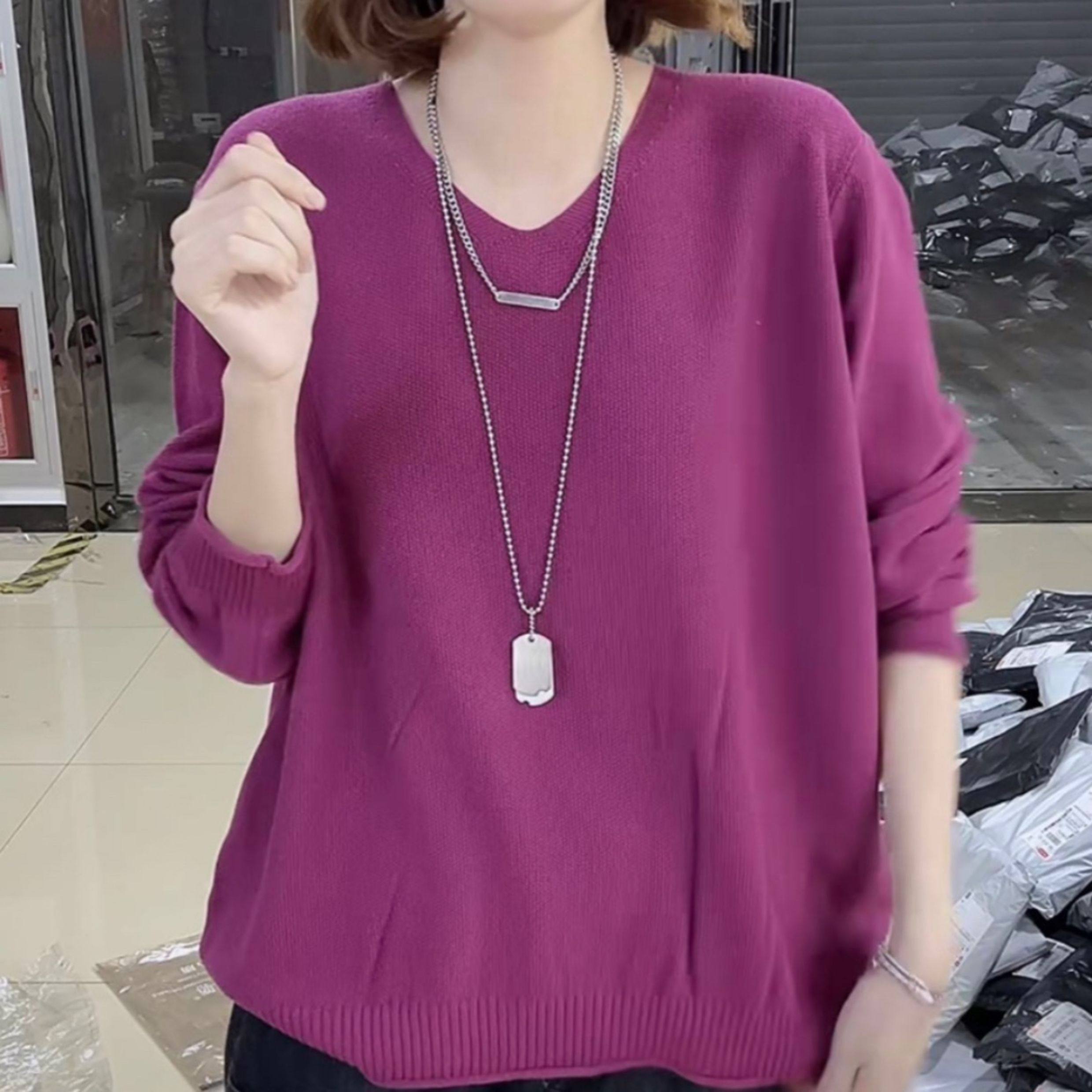 大碼女裝韓版遮肚子顯瘦短款針織上衣女寬松V領長袖套頭百搭毛衣