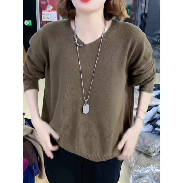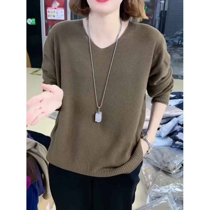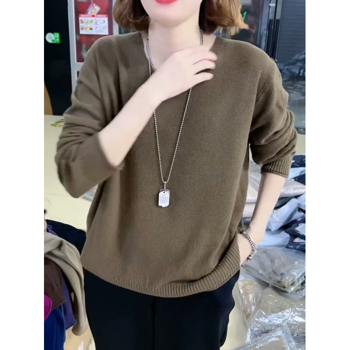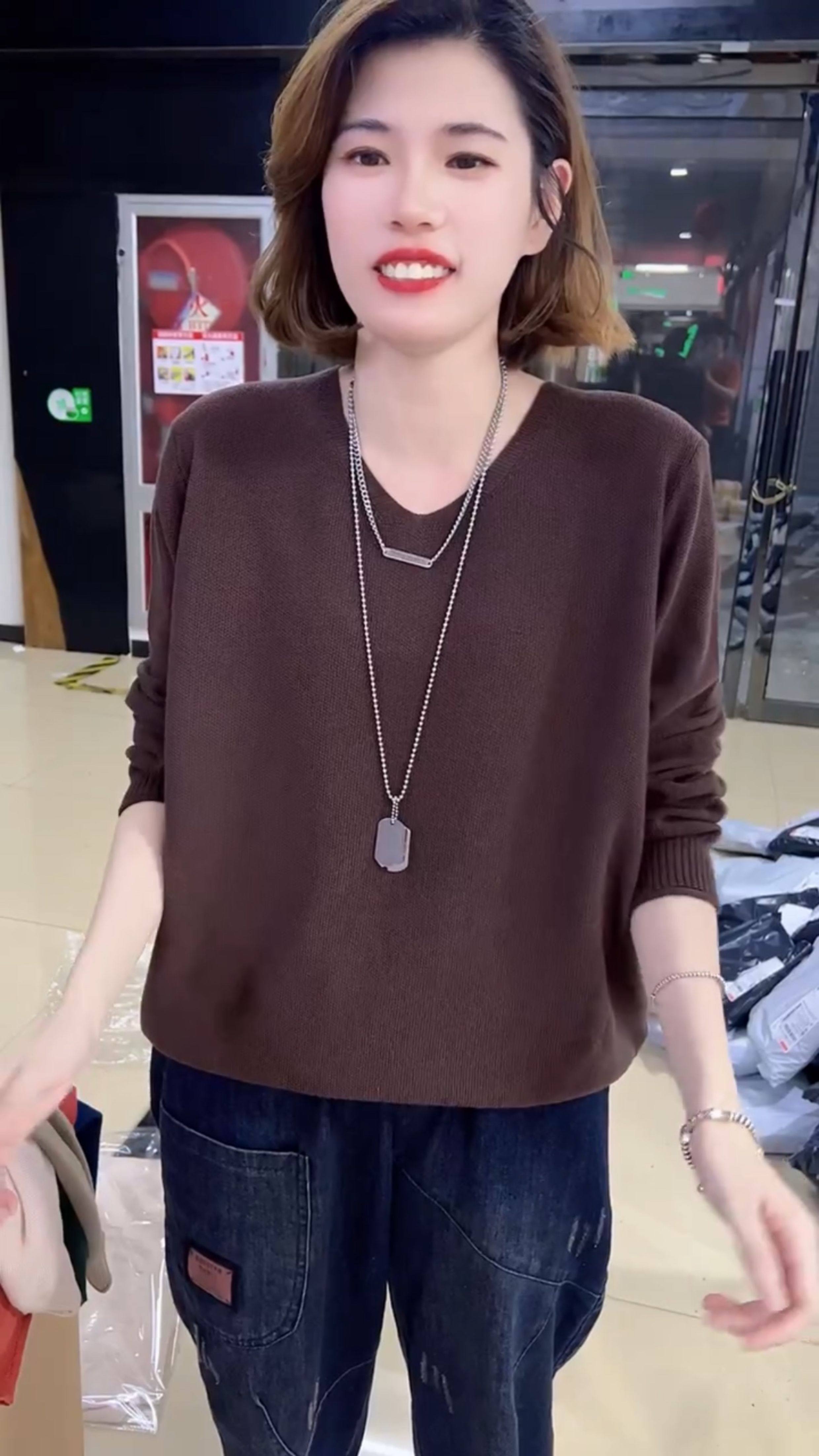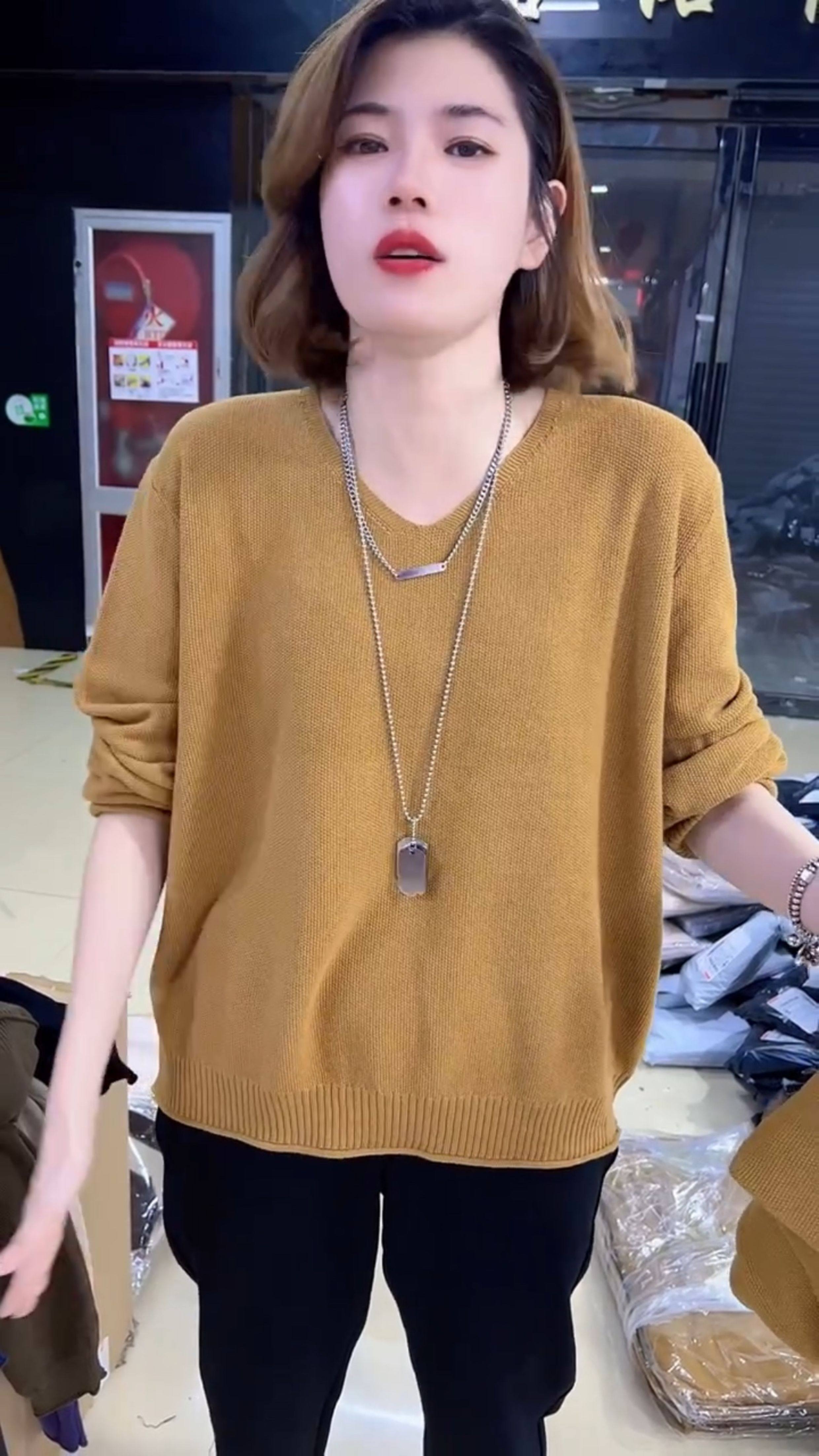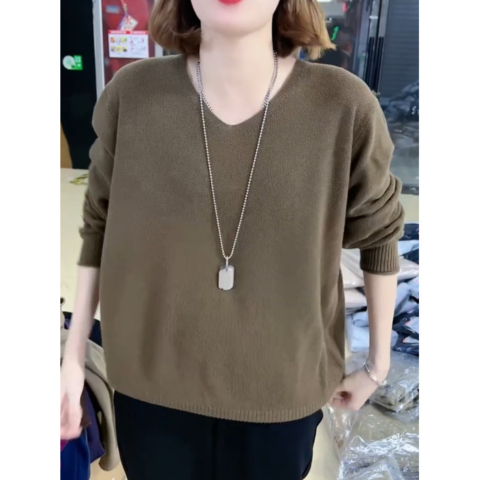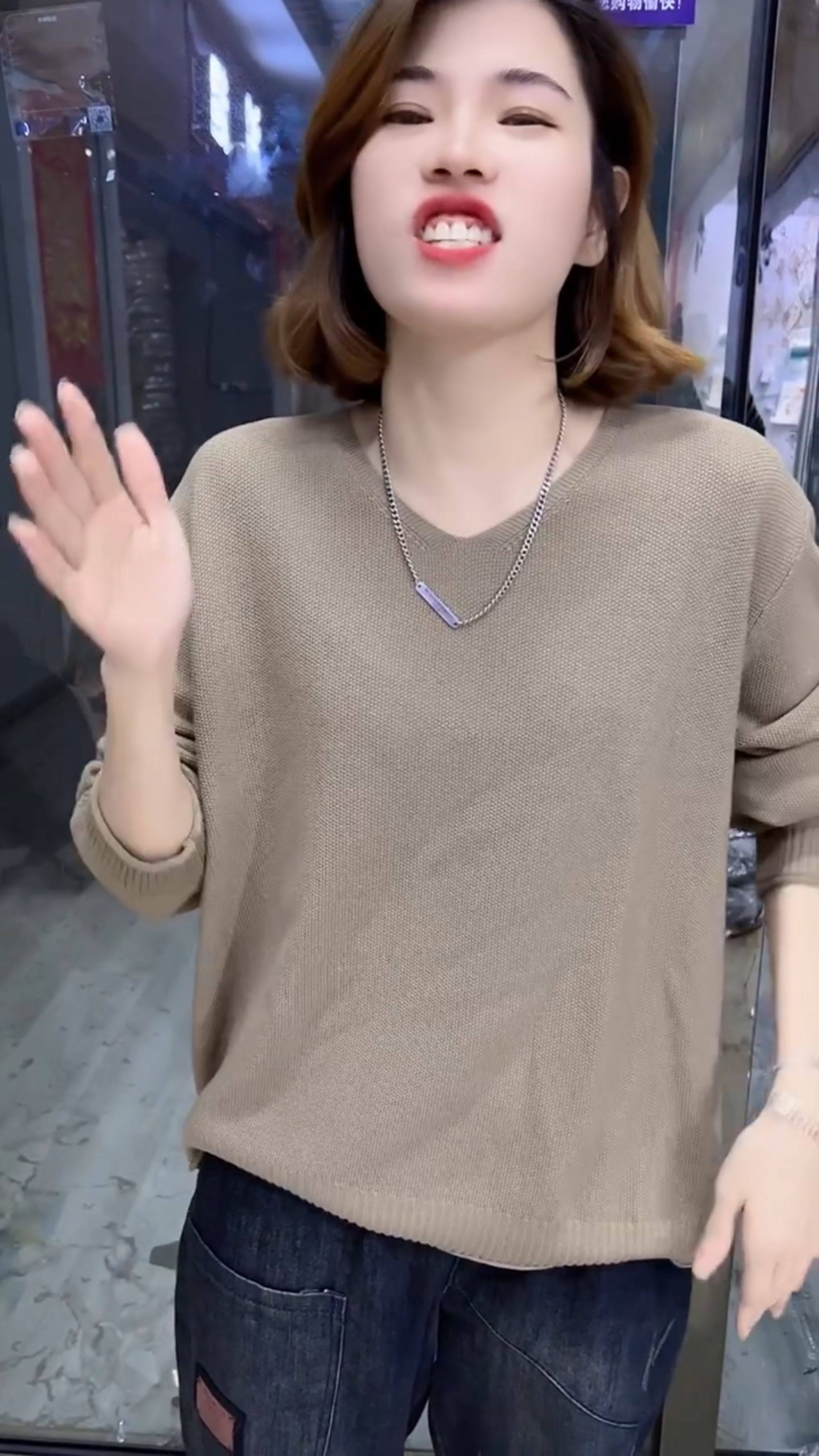 大碼女裝韓版遮肚子顯瘦短款針織上衣女寬松V領長袖套頭百搭毛衣