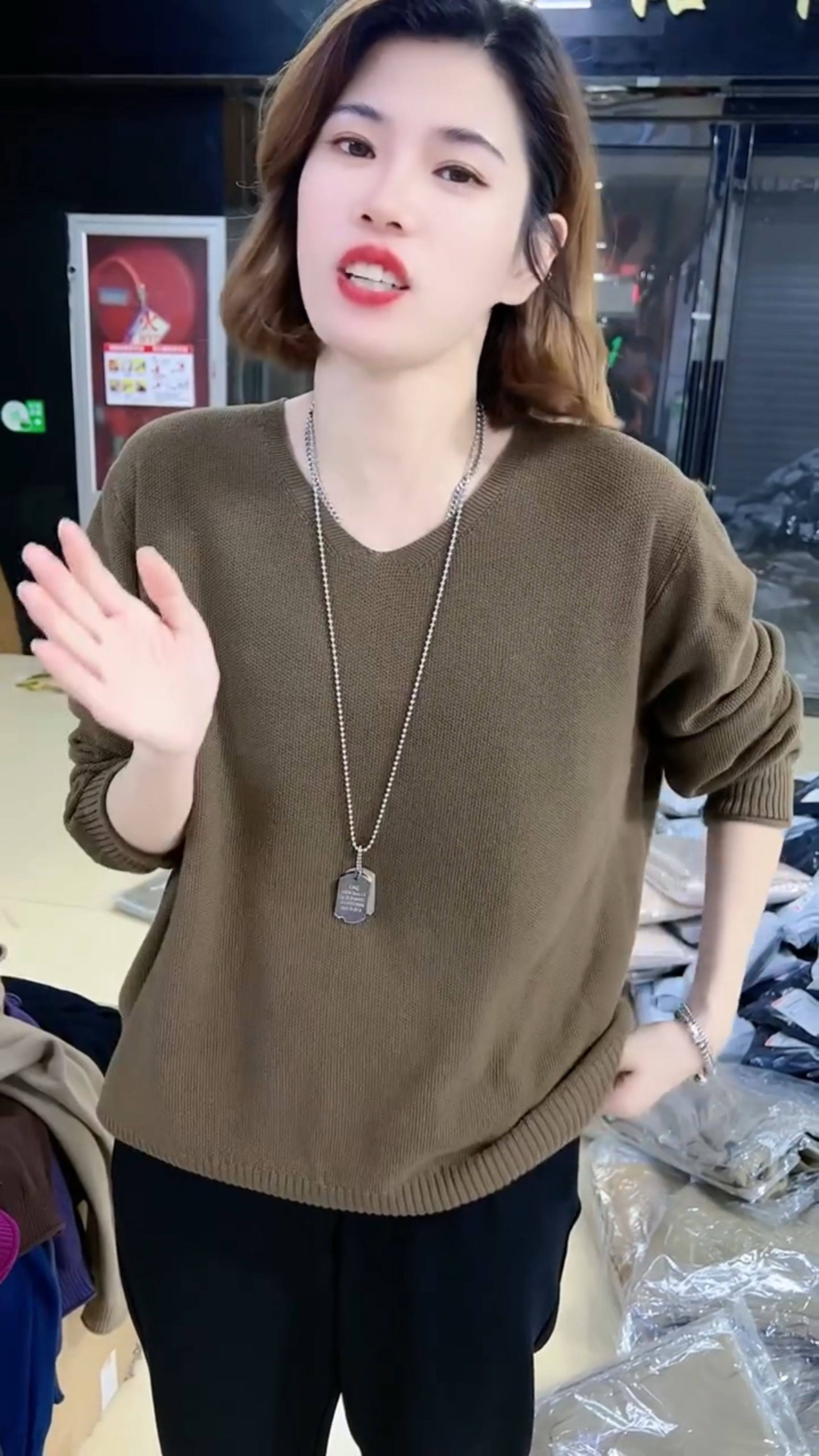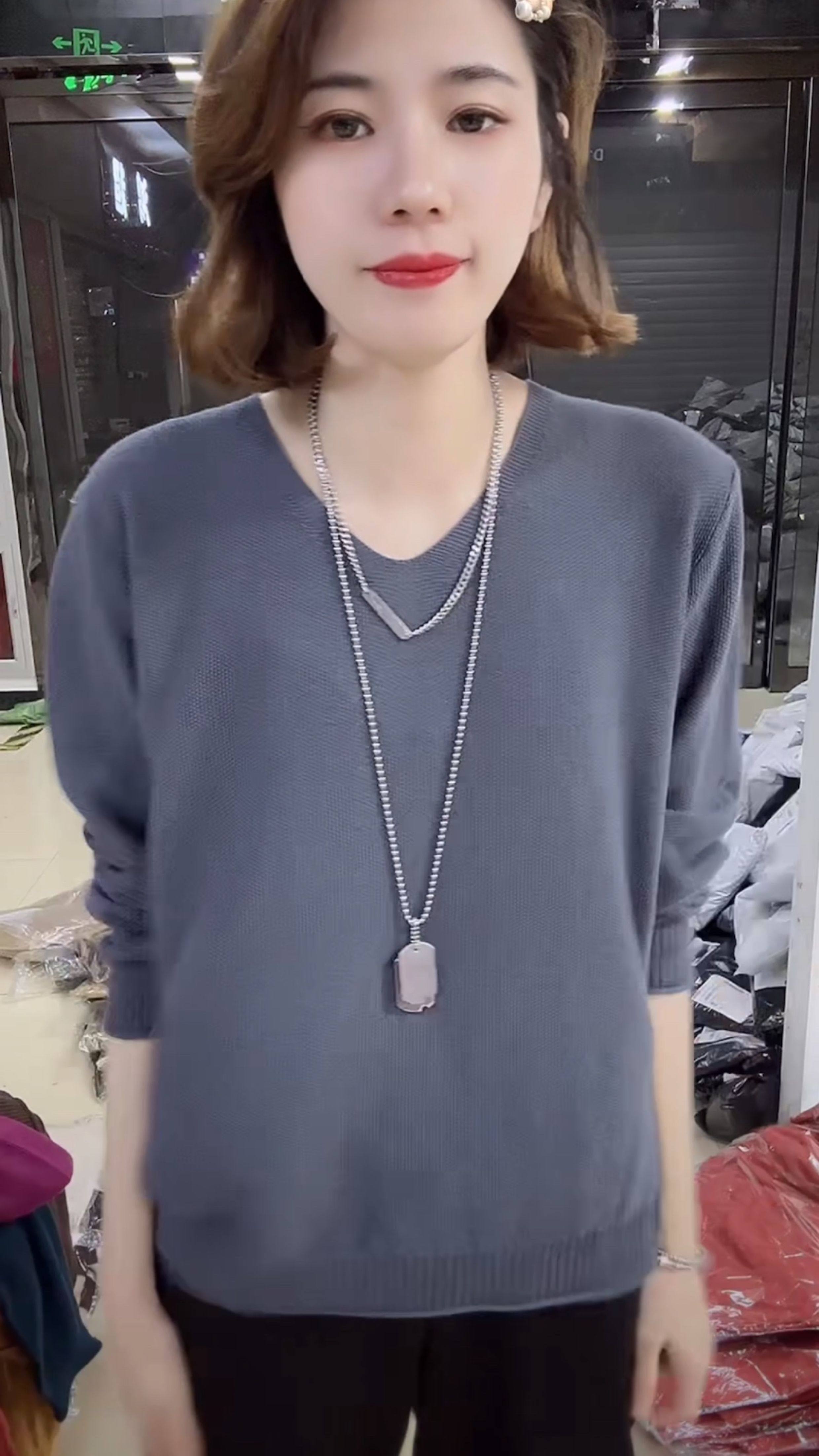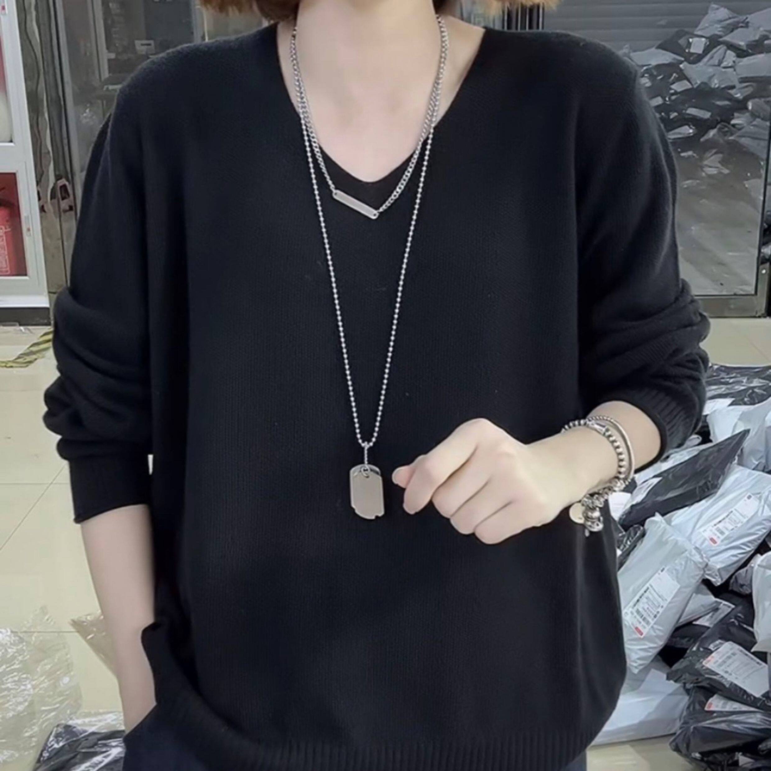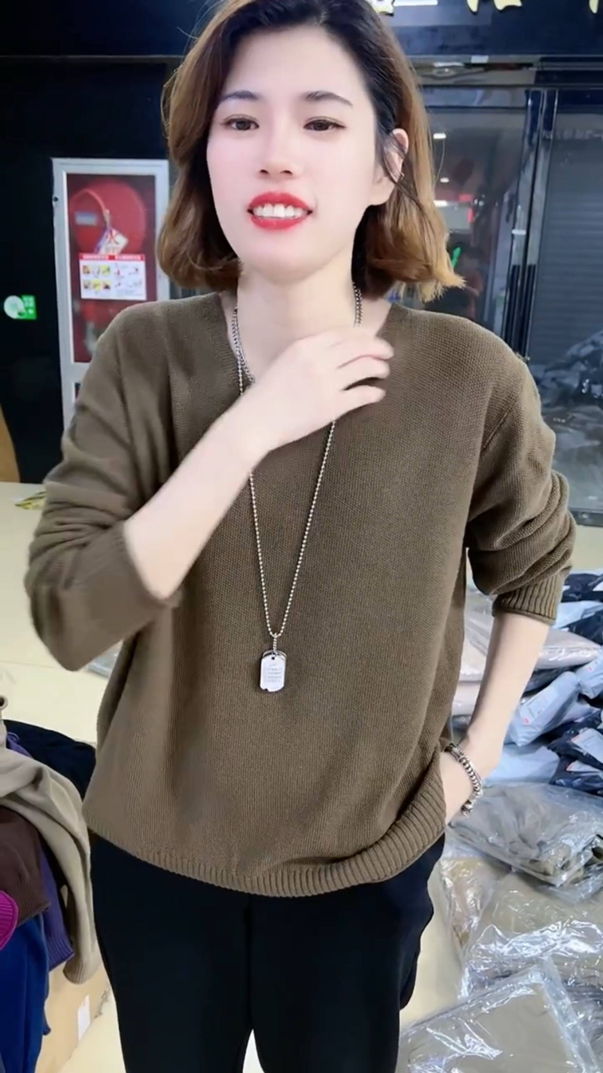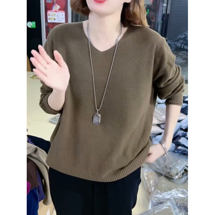 大碼女裝韓版遮肚子顯瘦短款針織上衣女寬松V領長袖套頭百搭毛衣