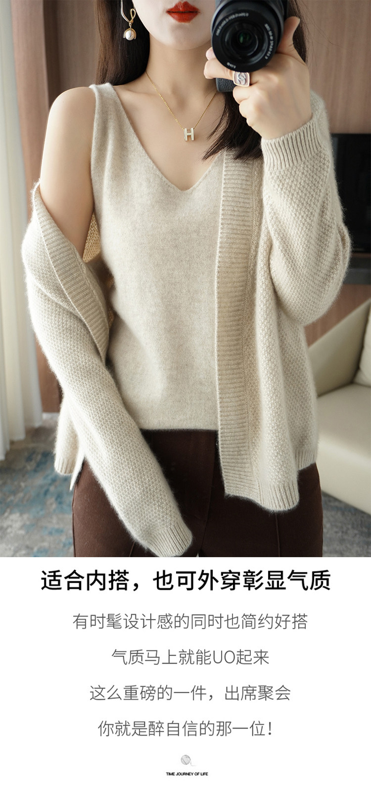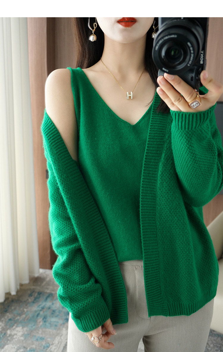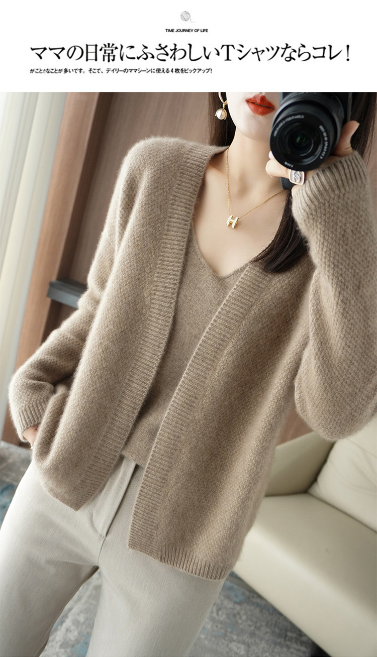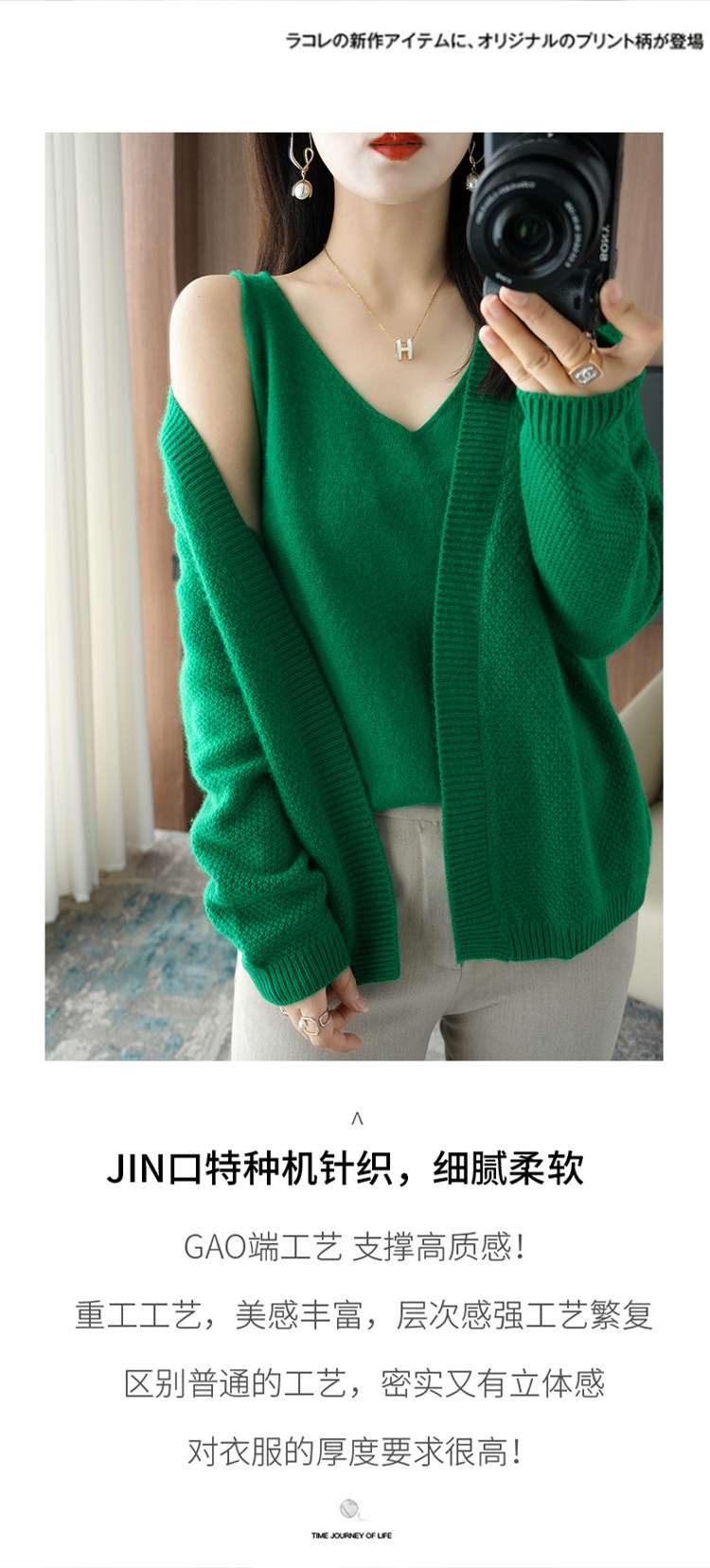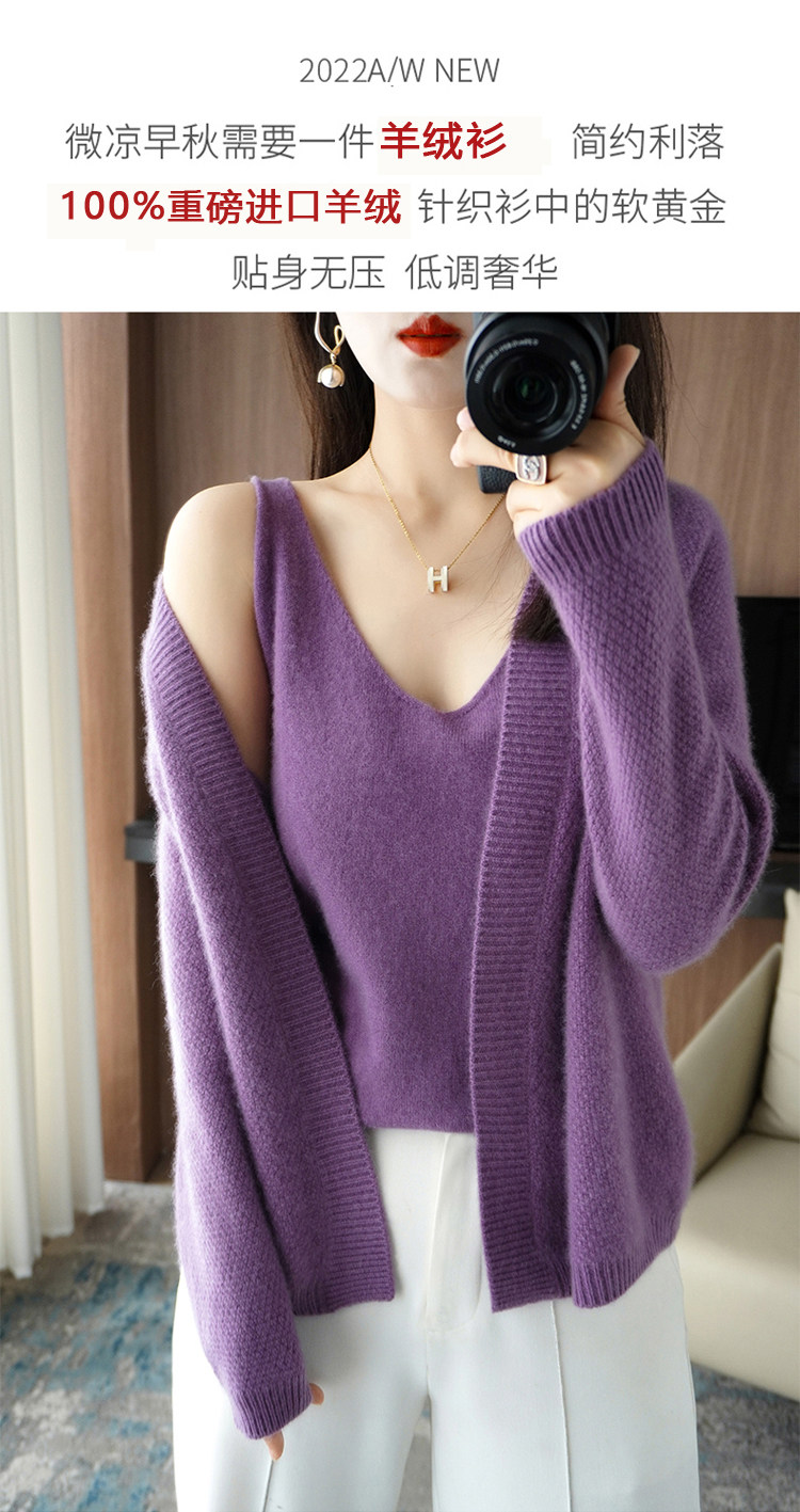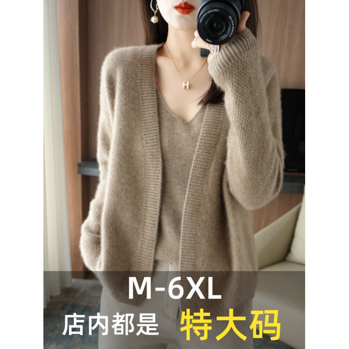 針織開衫大碼外套女春秋新款v領兩件套加肥加大200斤胖MM顯瘦毛衣