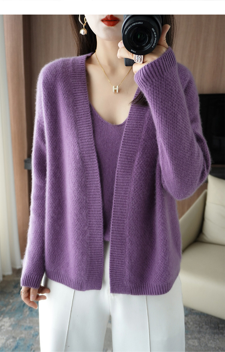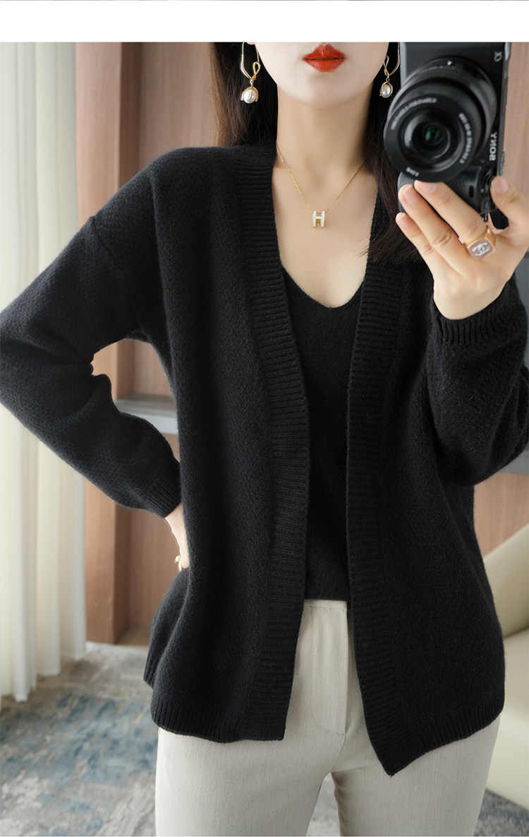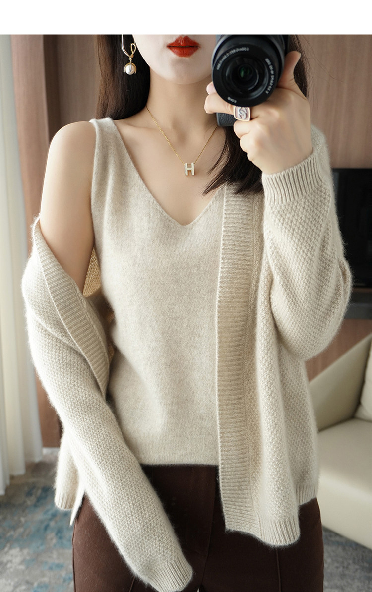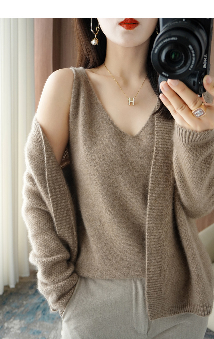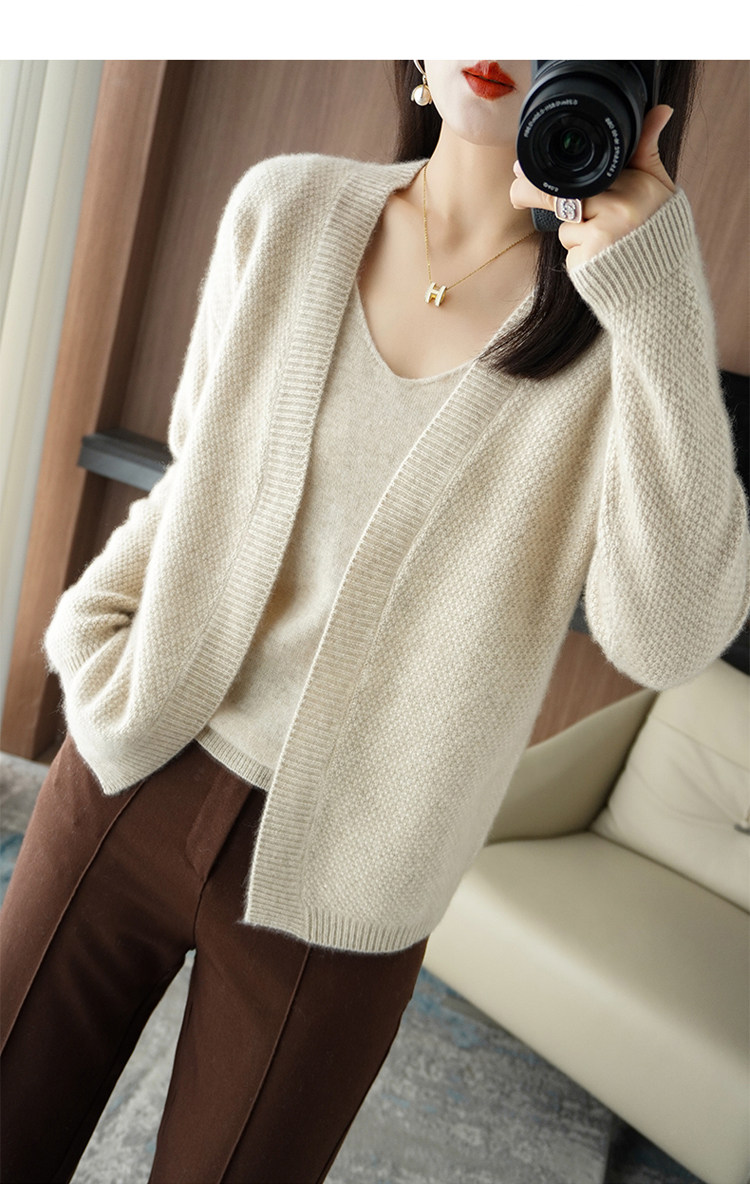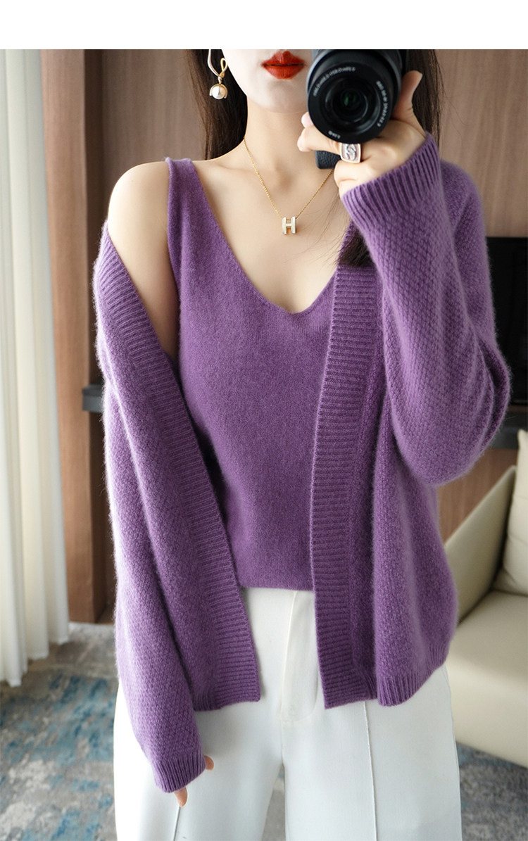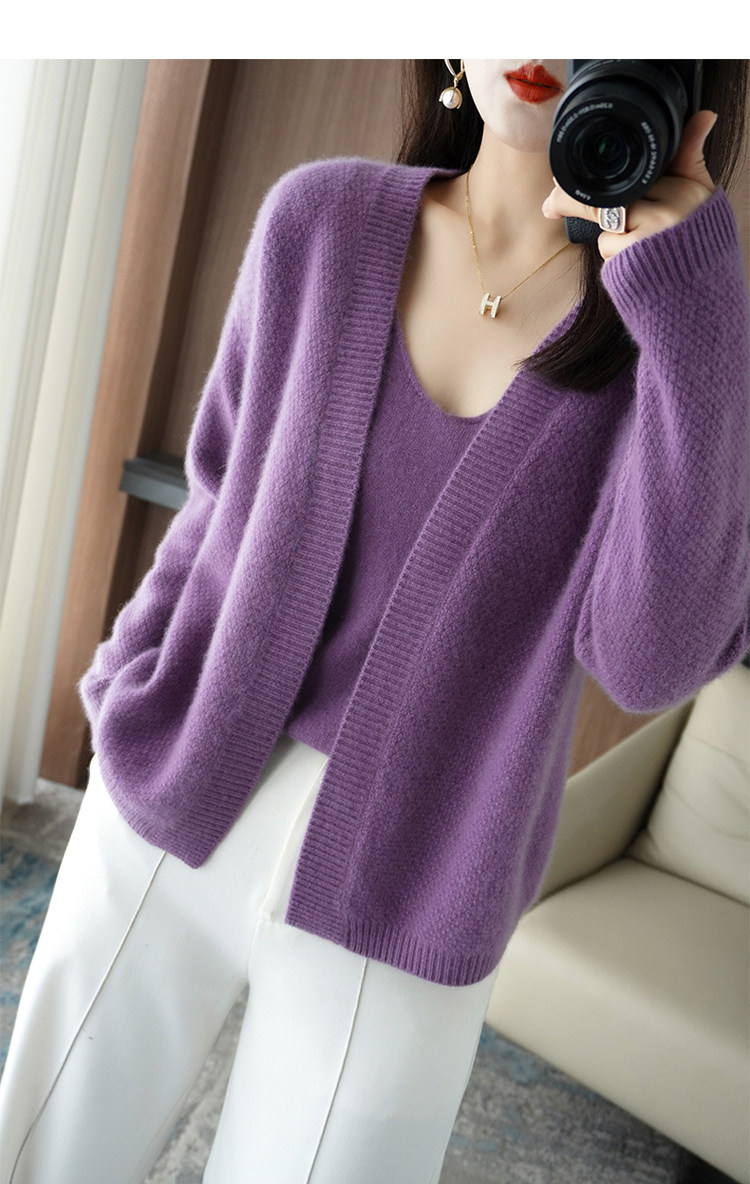 針織開衫大碼外套女春秋新款v領兩件套加肥加大200斤胖MM顯瘦毛衣