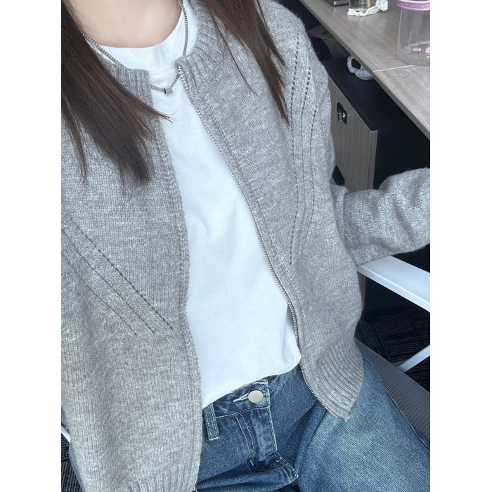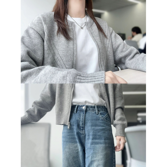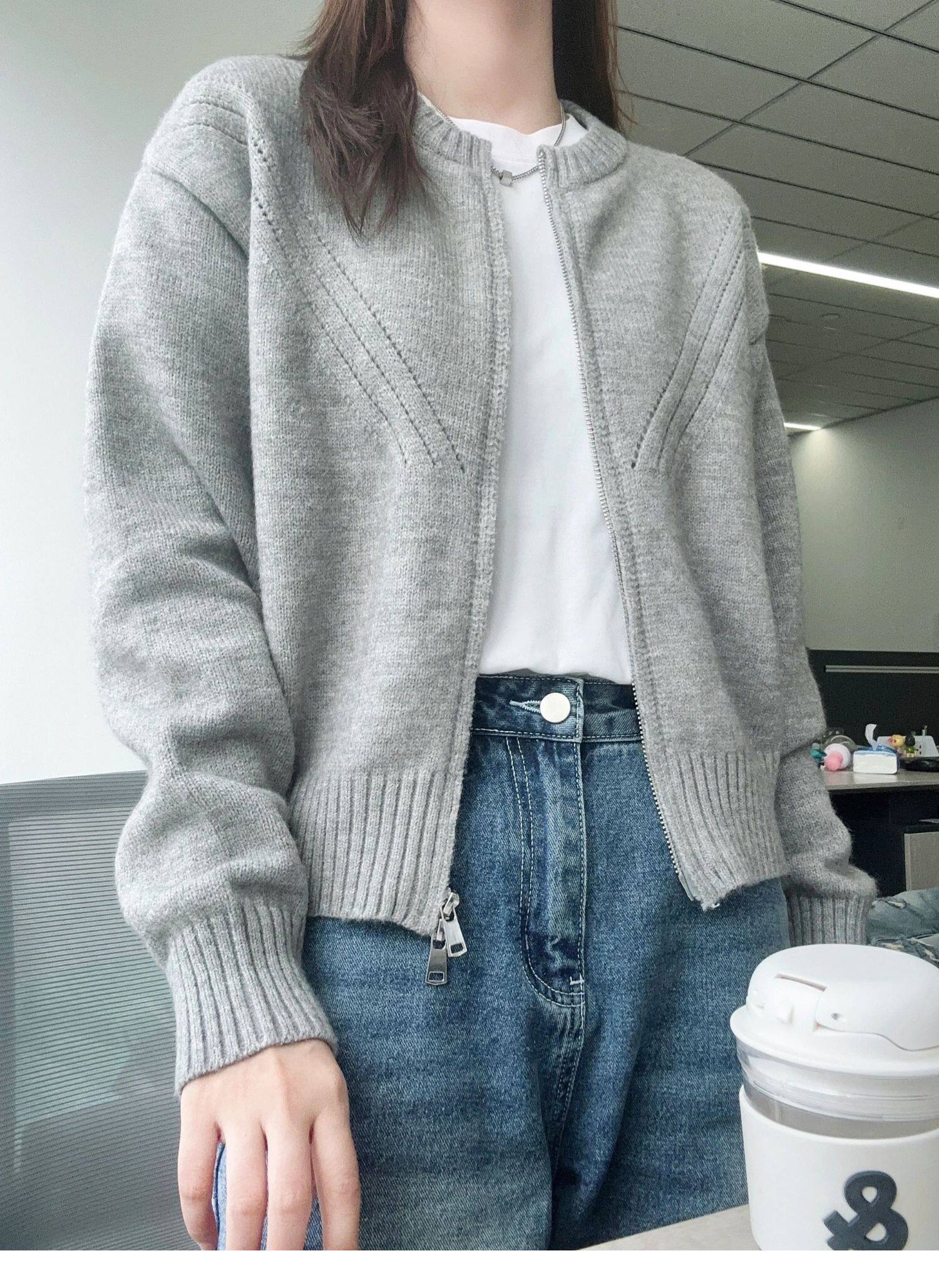 2025新款日系灰色高級感小衆薄款慵懶風針織毛衣女外套上衣春秋季