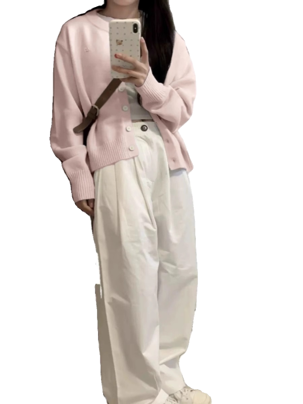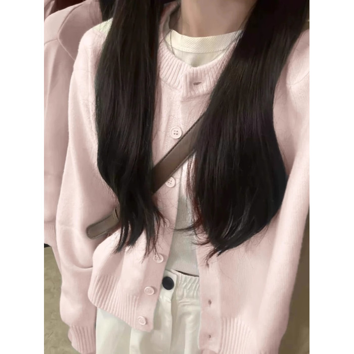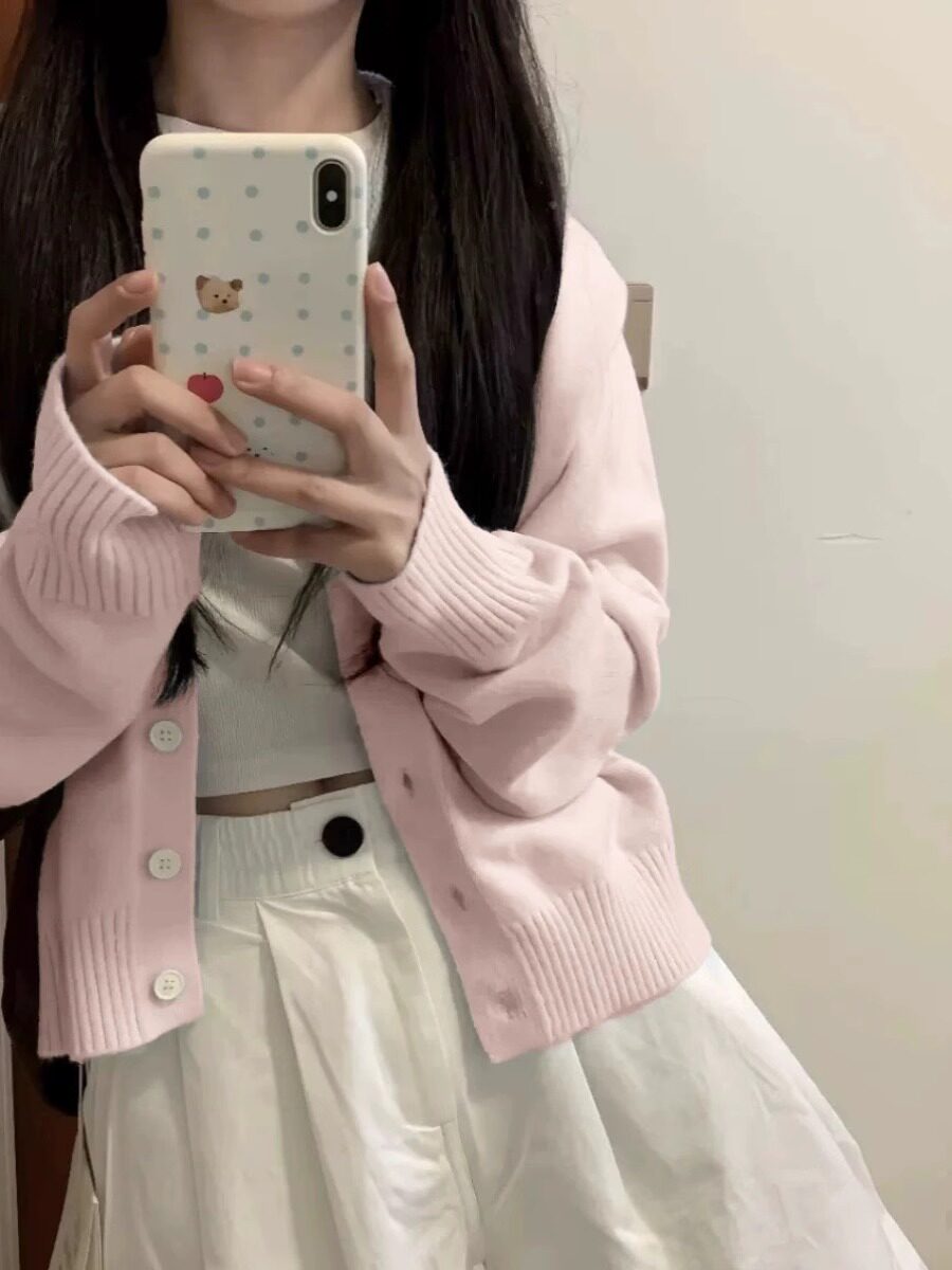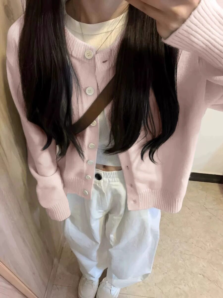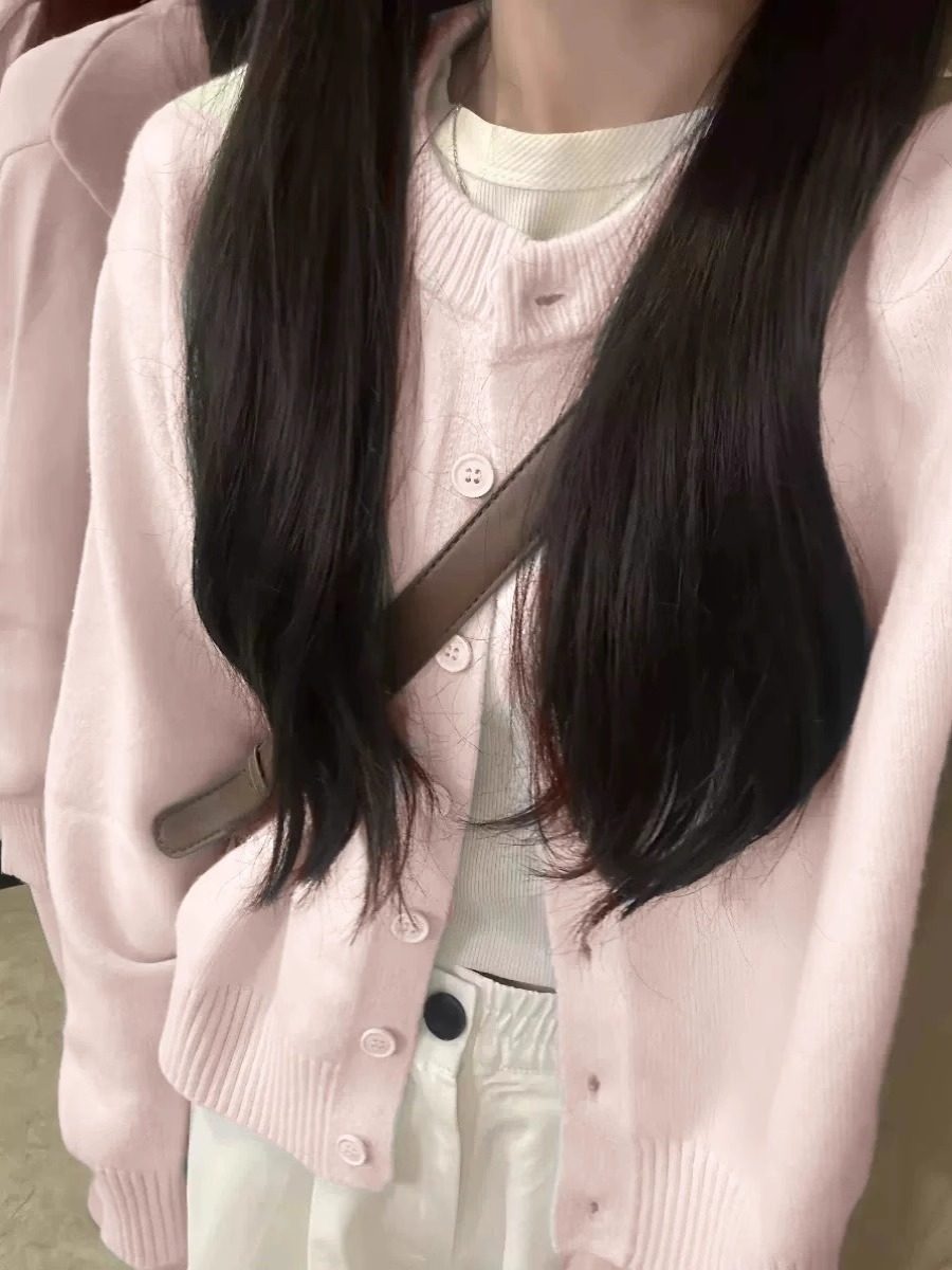粉色針織開衫女早春2025新款奶系穿搭外套小個子藝術生奶乖上衣潮