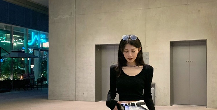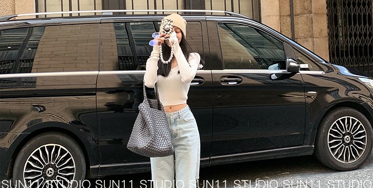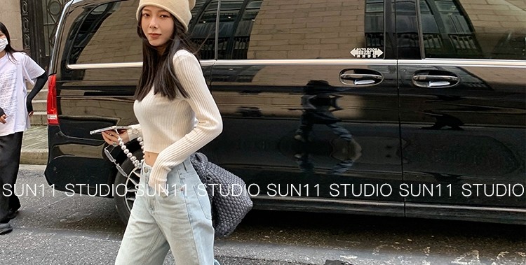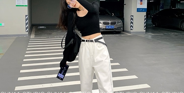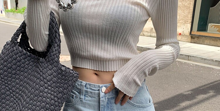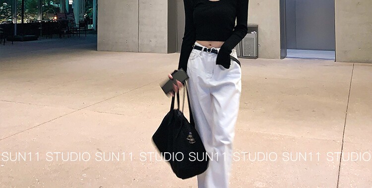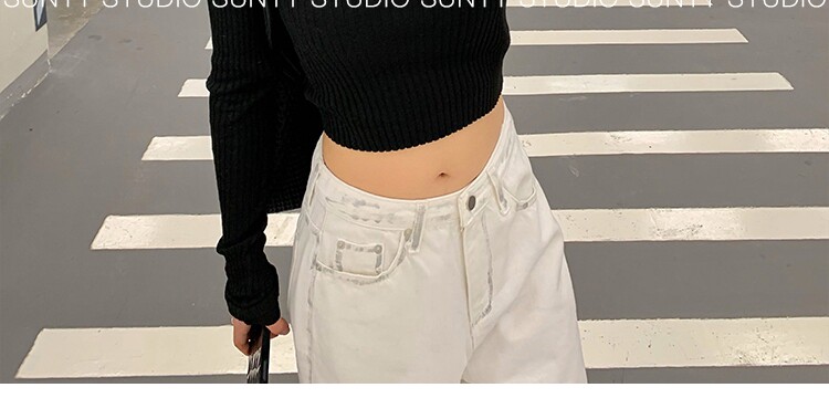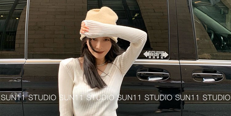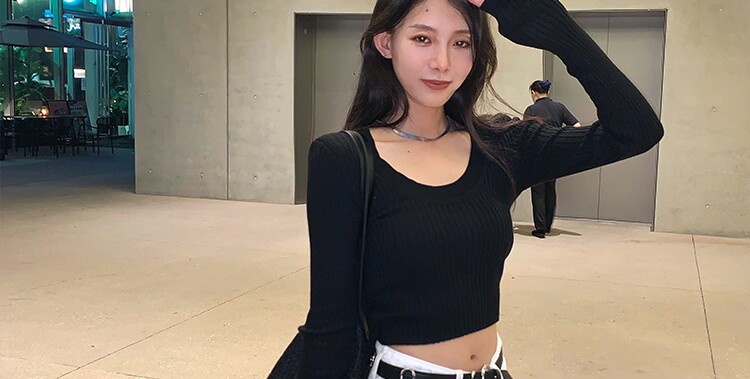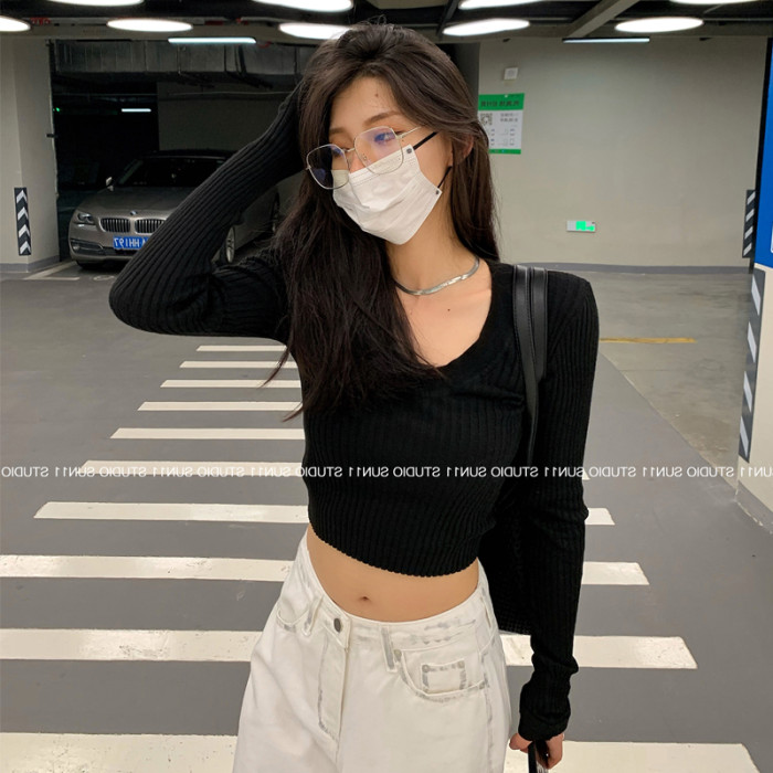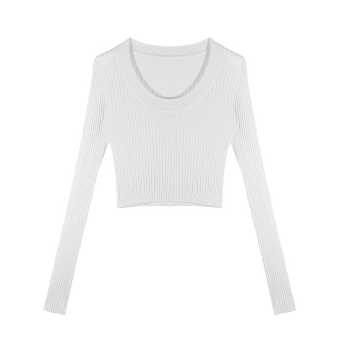 白色U領針織打底衫女早春內搭修身短款高腰針織衫上衣女設計感薄