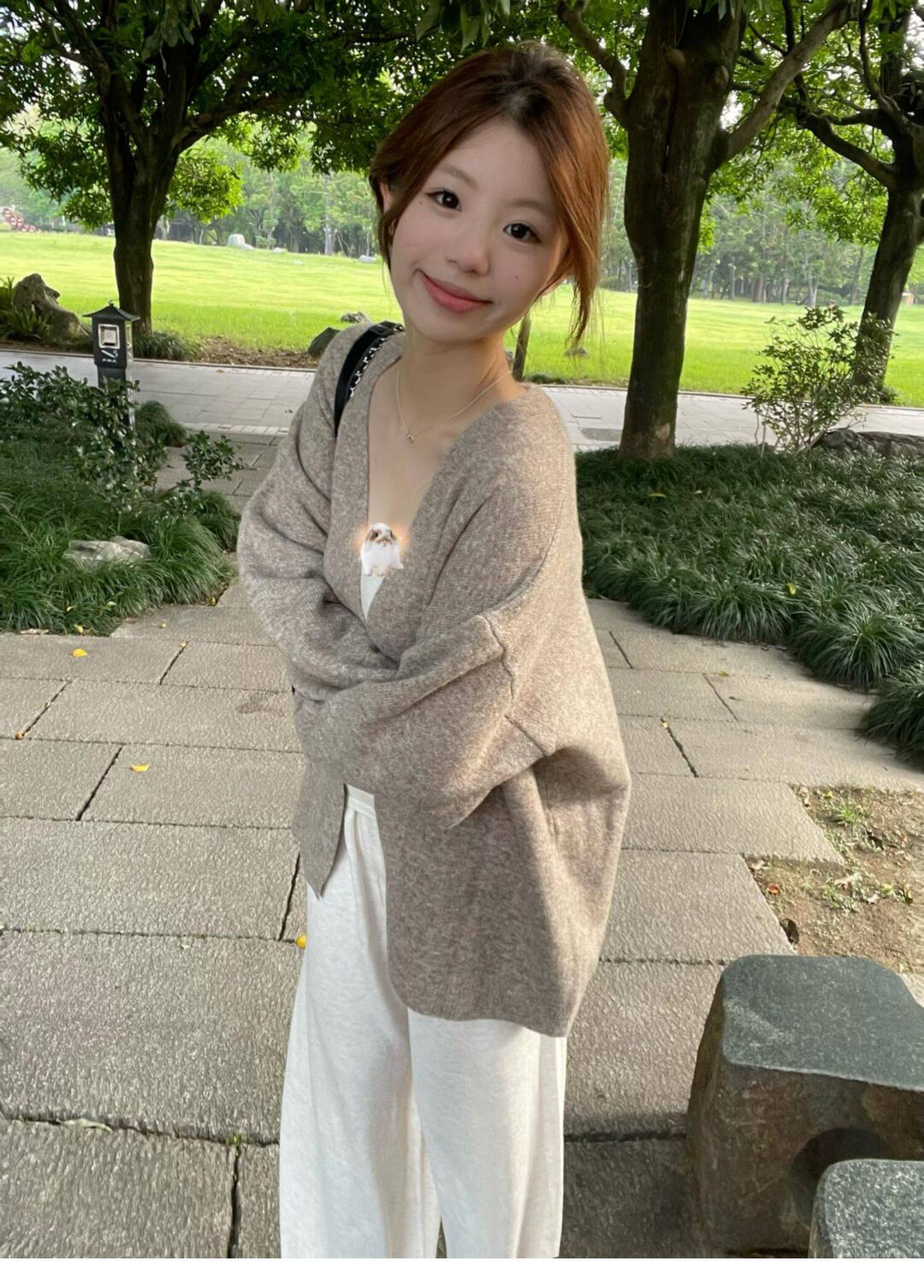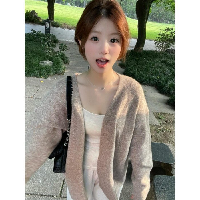韓系慵懶風開衫毛衣女春秋季寬松軟糯溫柔小個子休閒針織外套上衣