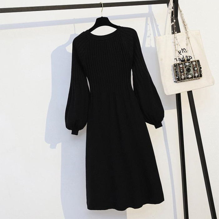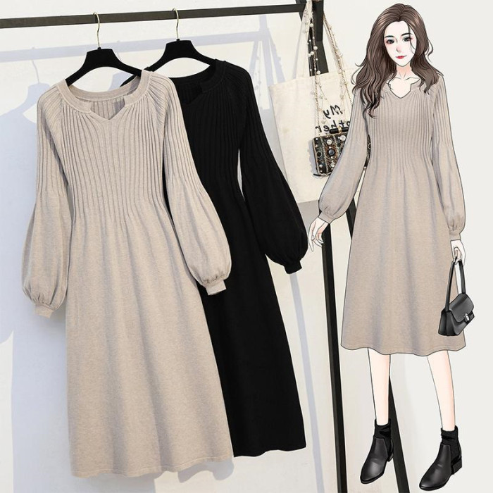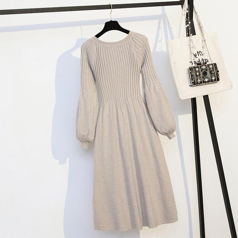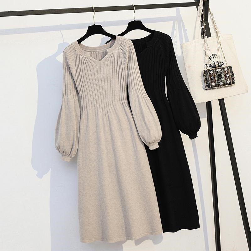 秋冬裝胖妹妹特大碼300斤寬松遮肚中長款針織毛衣打底連衣裙ins潮