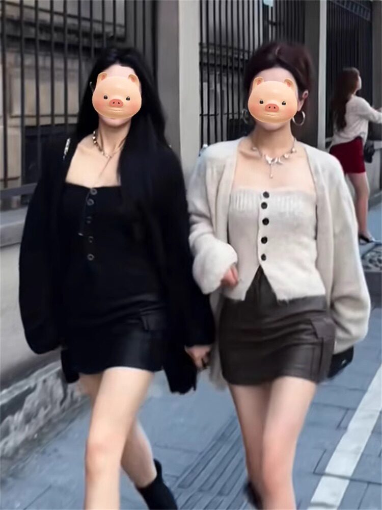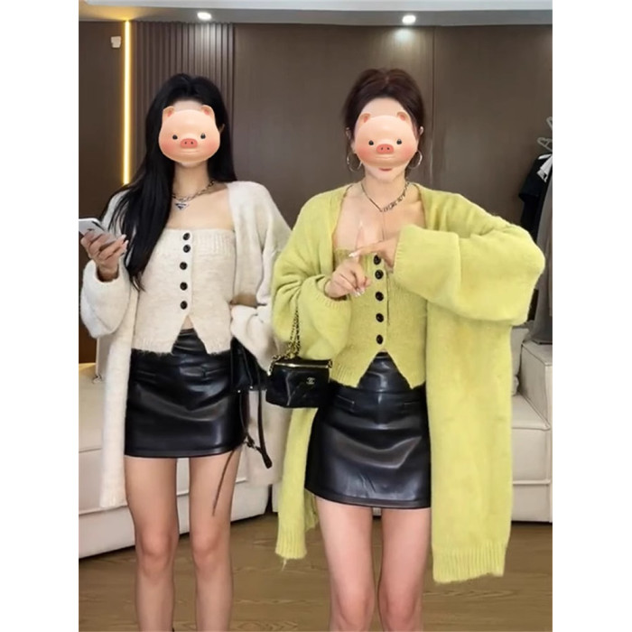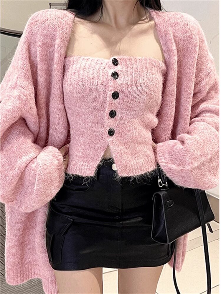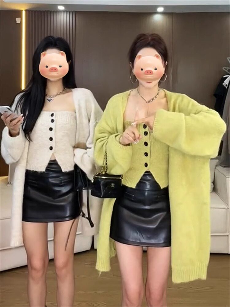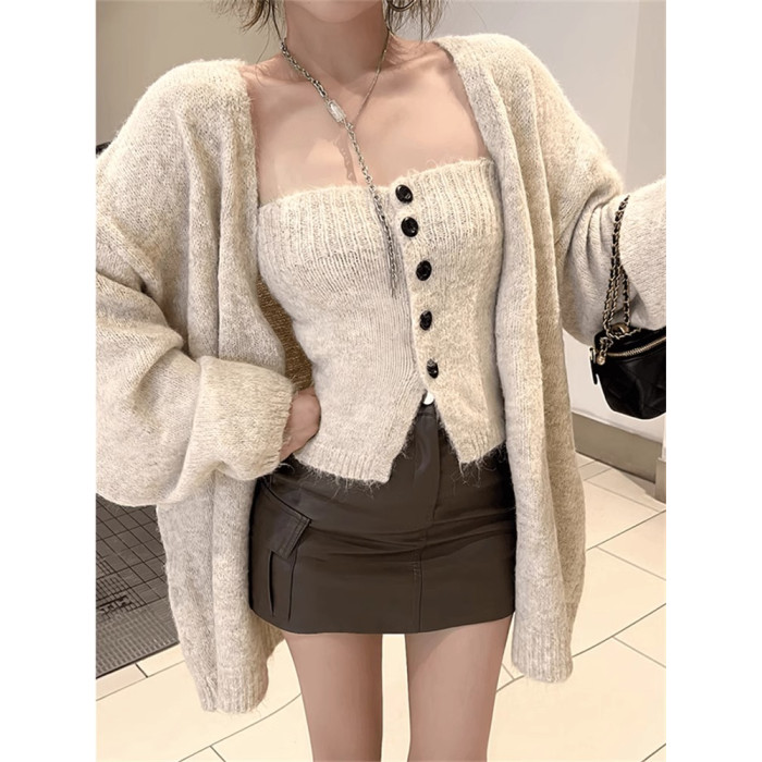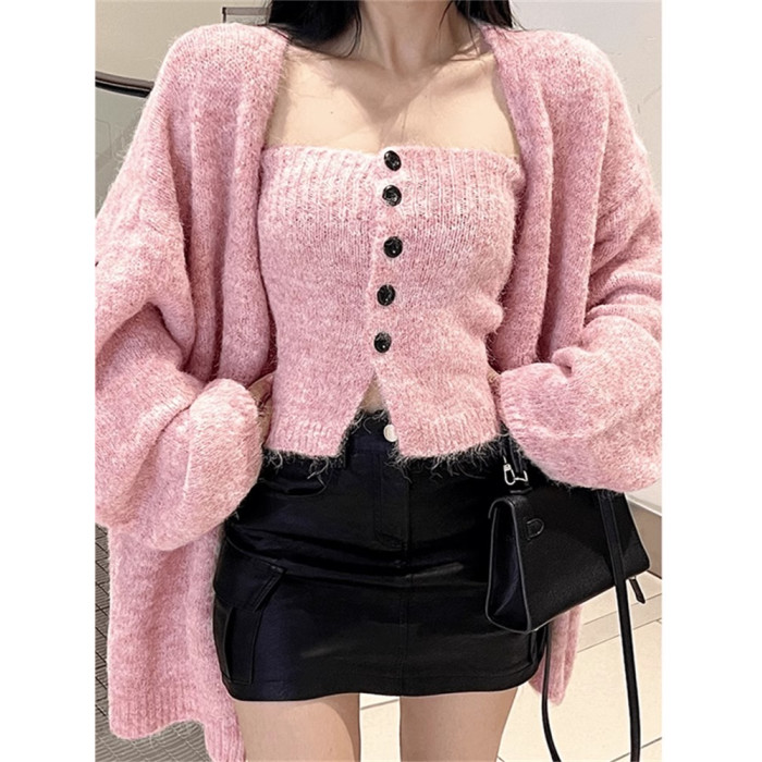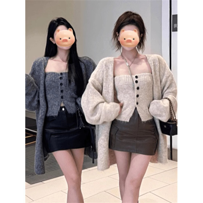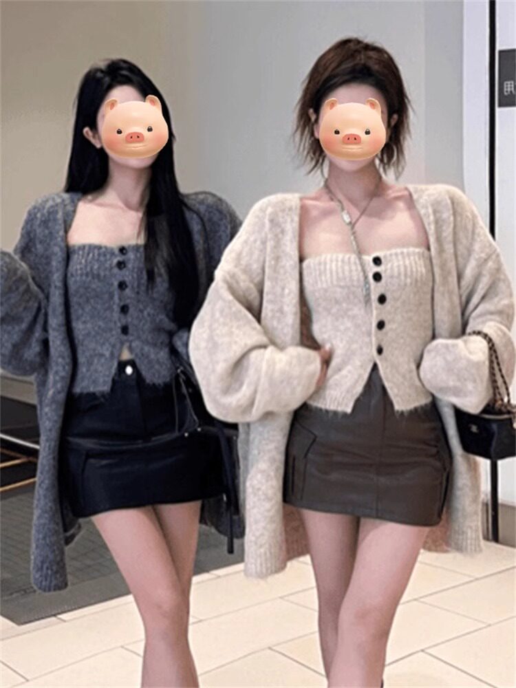 溫柔風軟糯針織開衫外套女秋冬韓系穿搭兩件套毛衣外搭中長款套裝