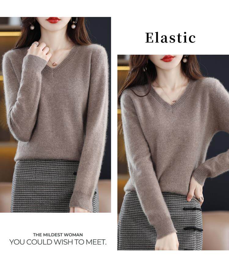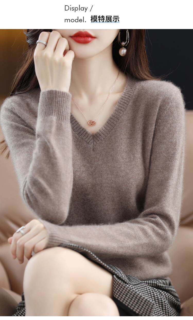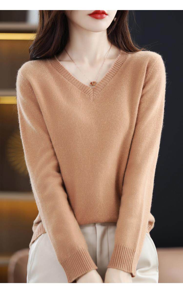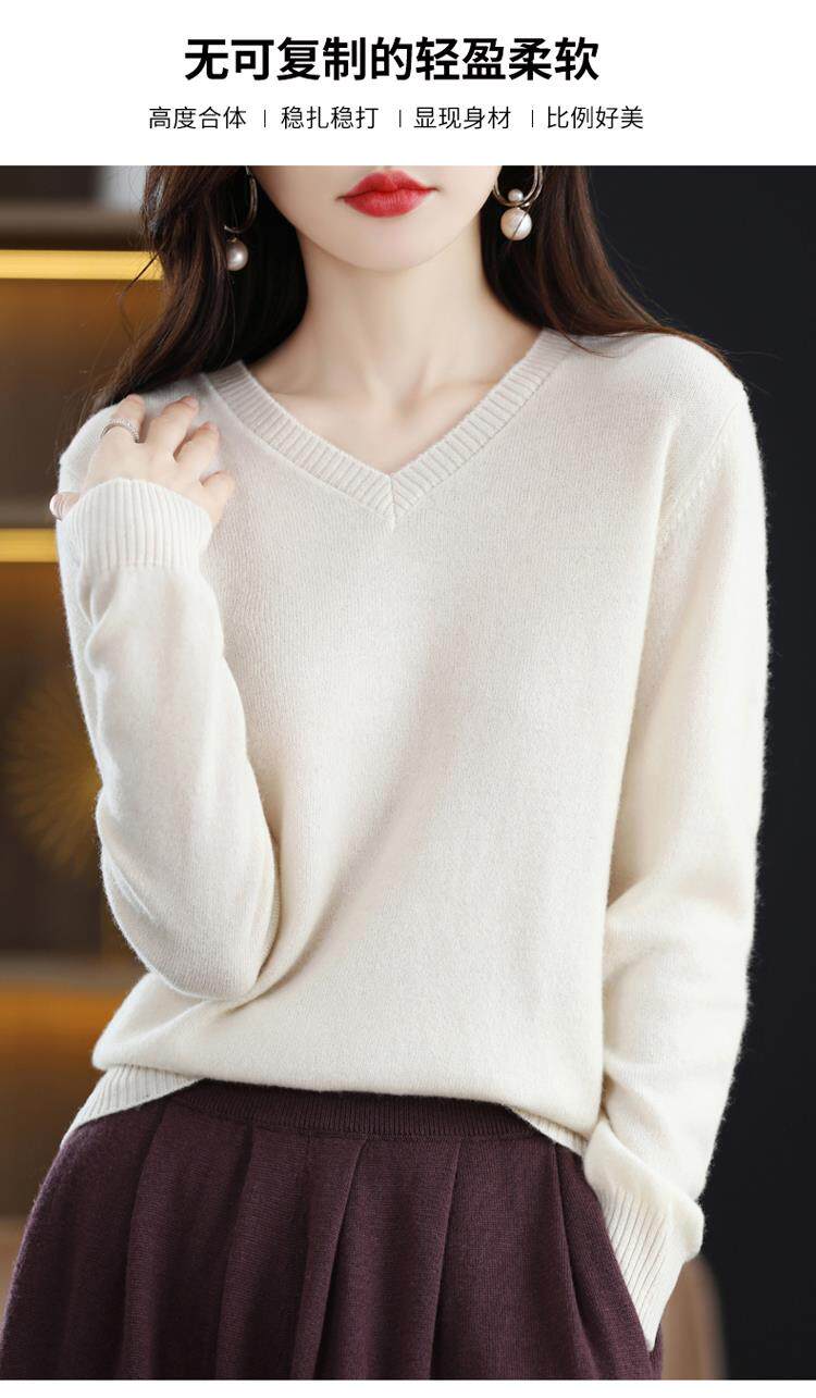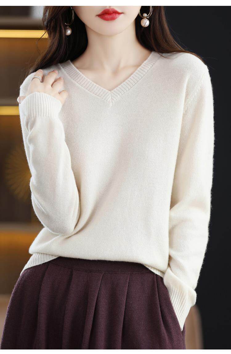 羊毛衫女2025秋冬新款V領羊絨衫毛衣寬松套頭長袖百搭針織打底衫