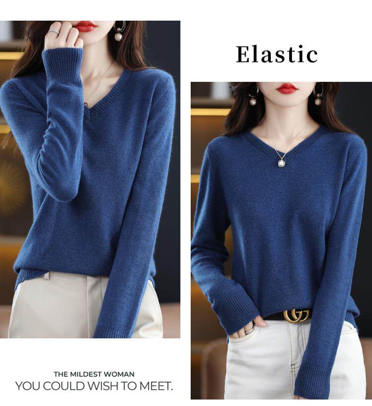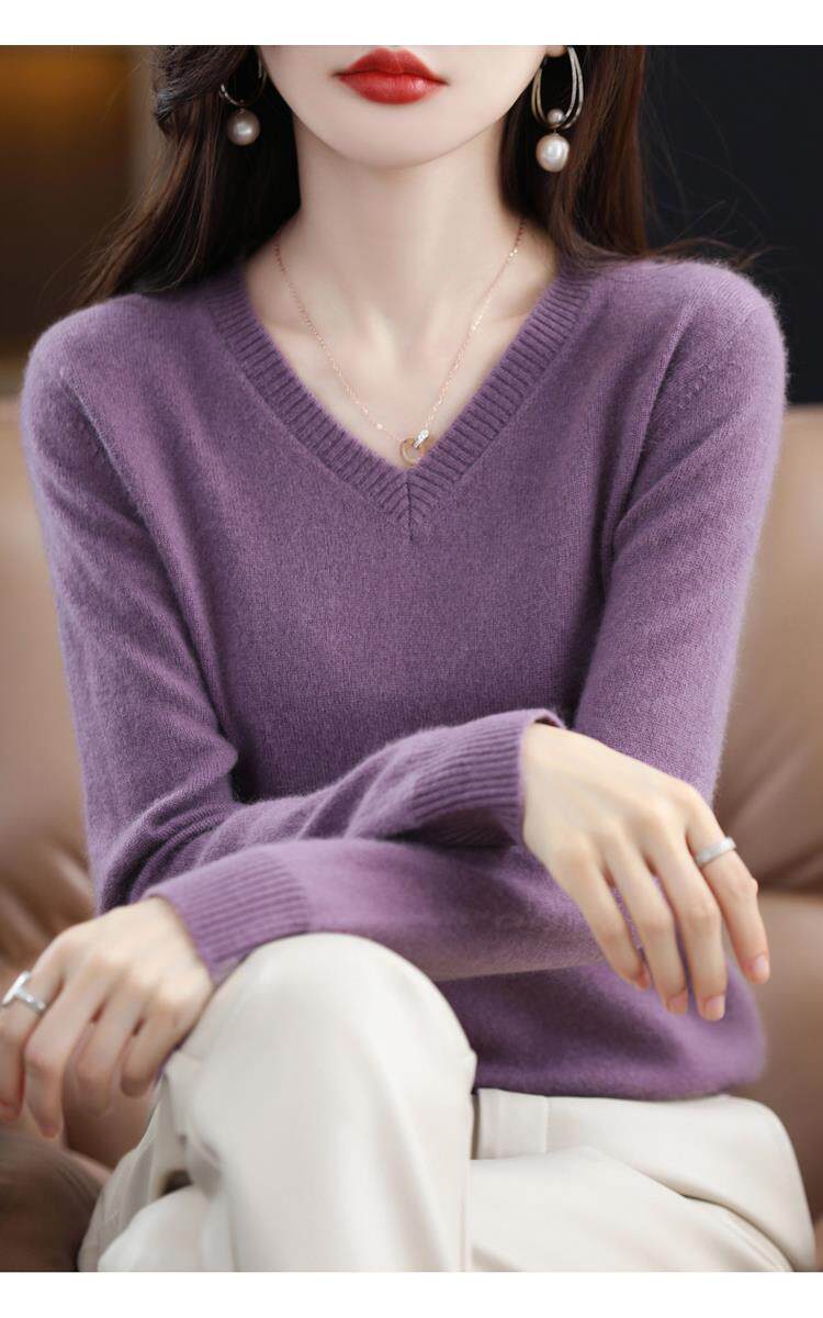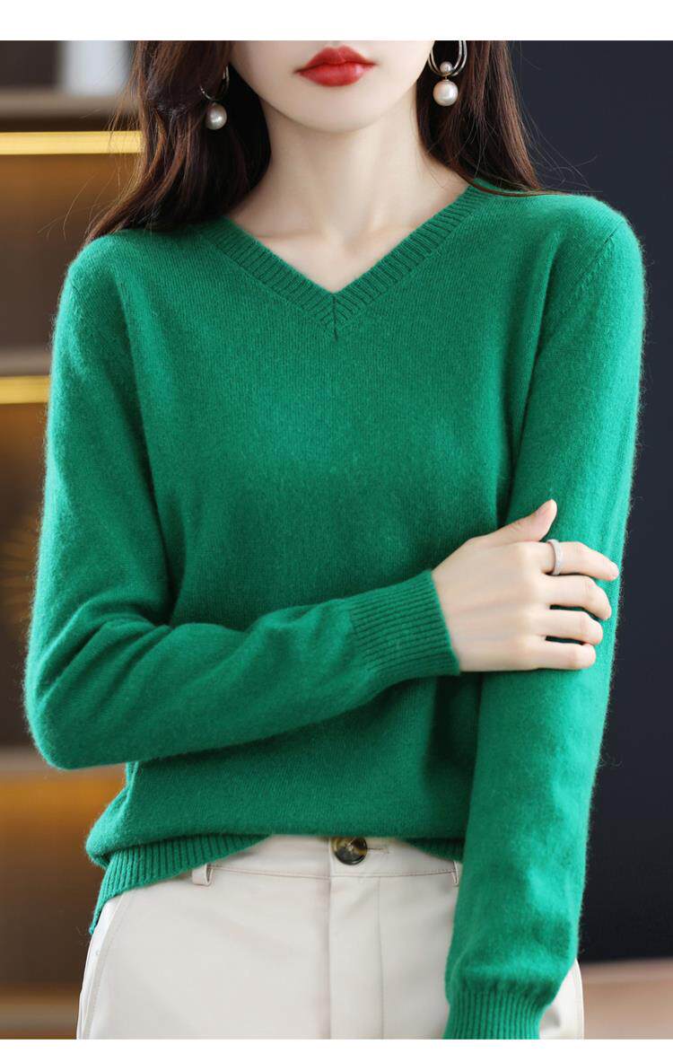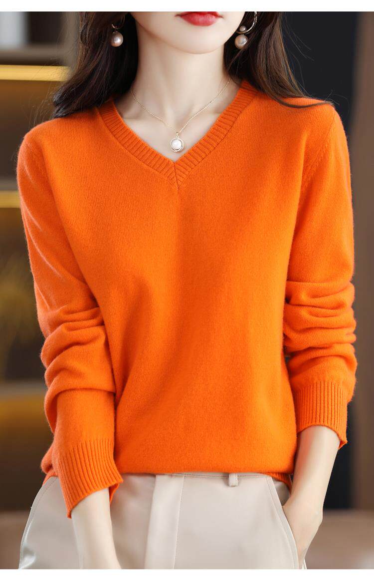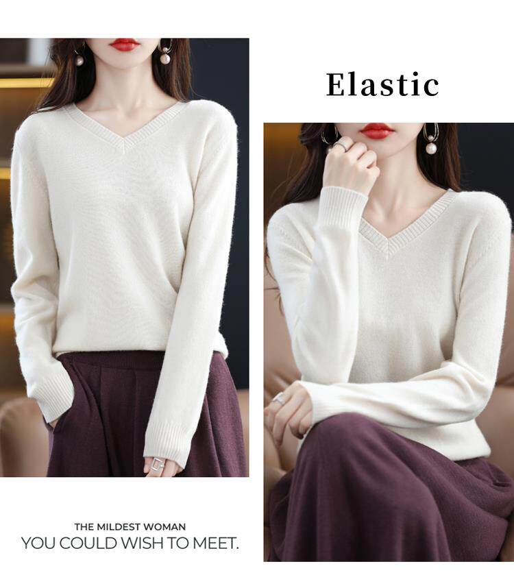 羊毛衫女2025秋冬新款V領羊絨衫毛衣寬松套頭長袖百搭針織打底衫