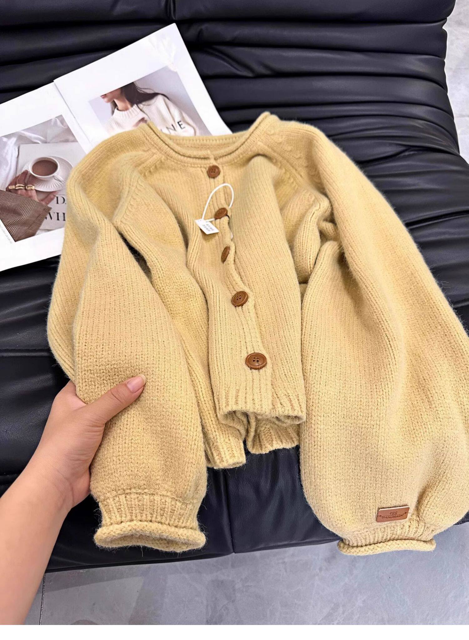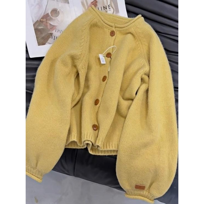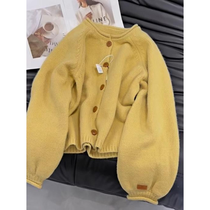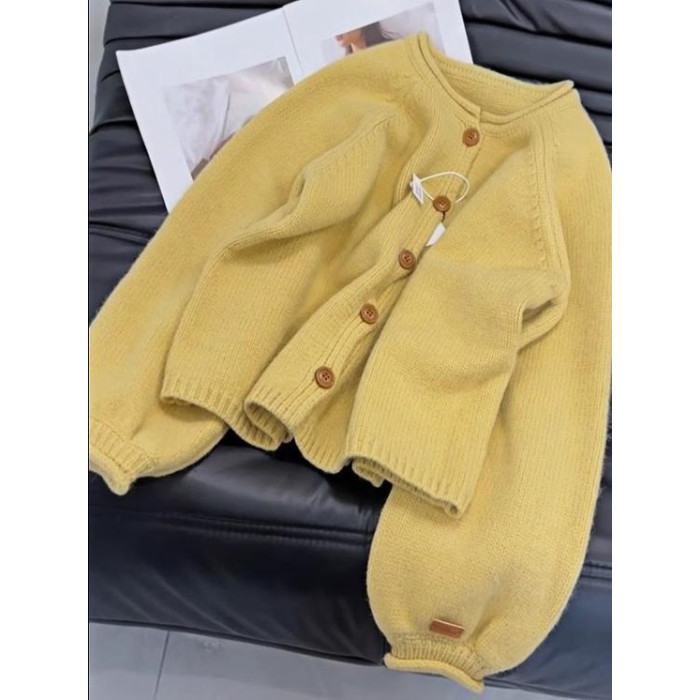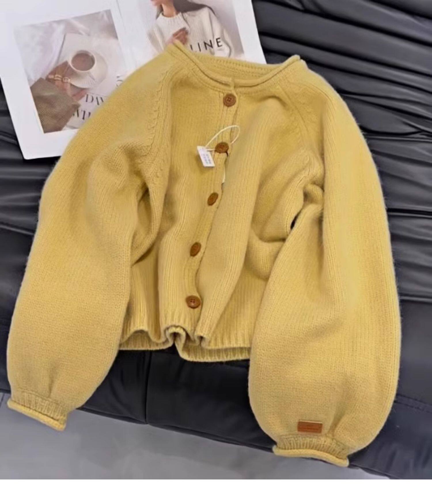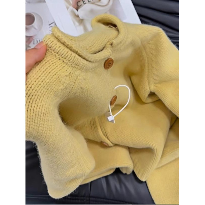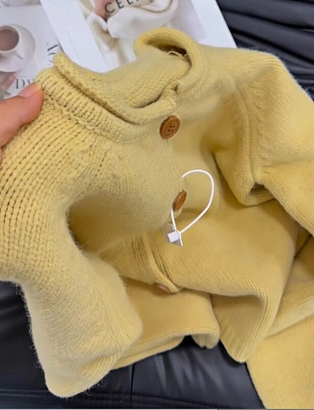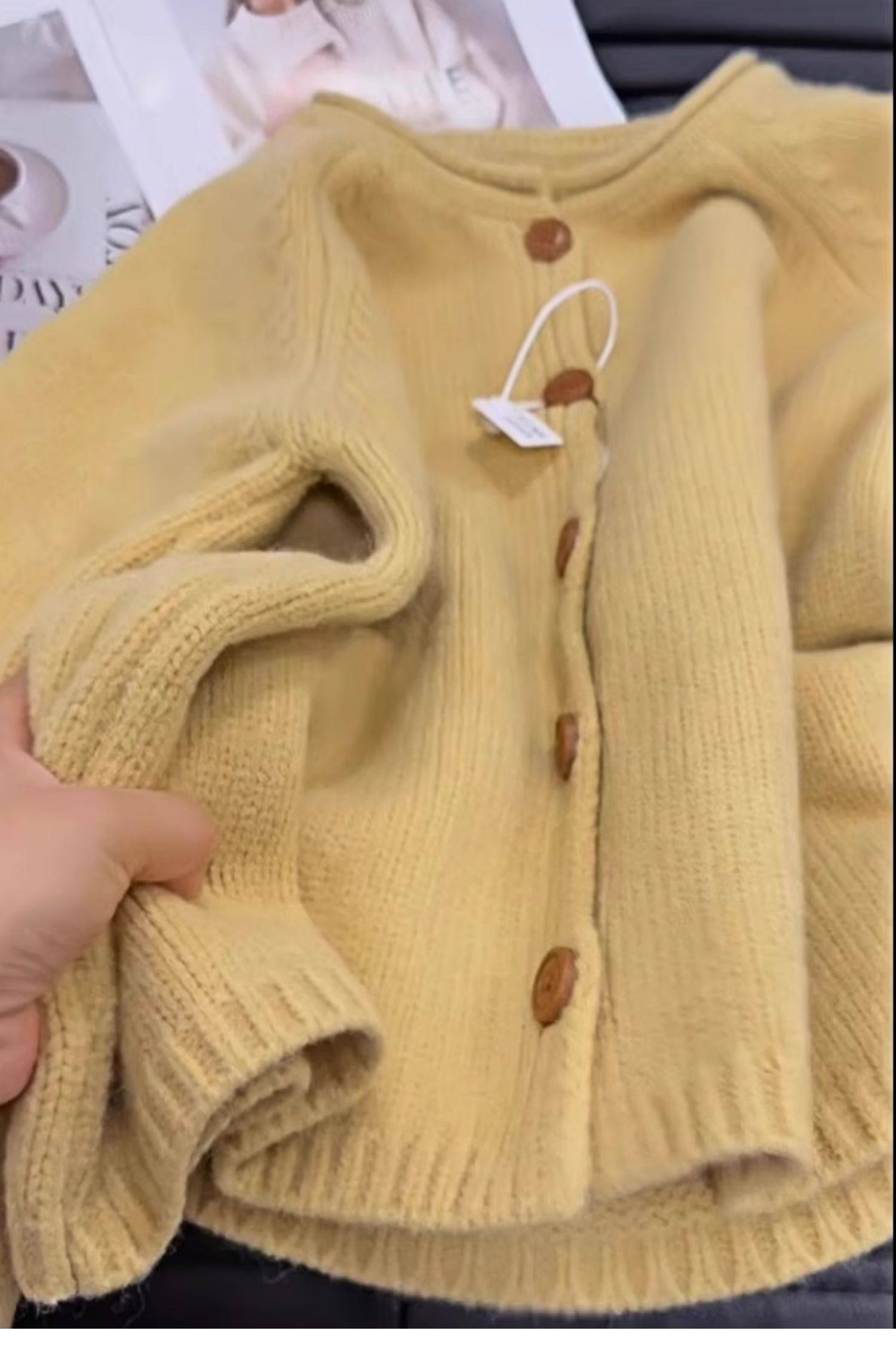 早秋小個子穿搭黃色外搭針織開衫軟糯高級慵懶風毛衣女秋冬款上衣