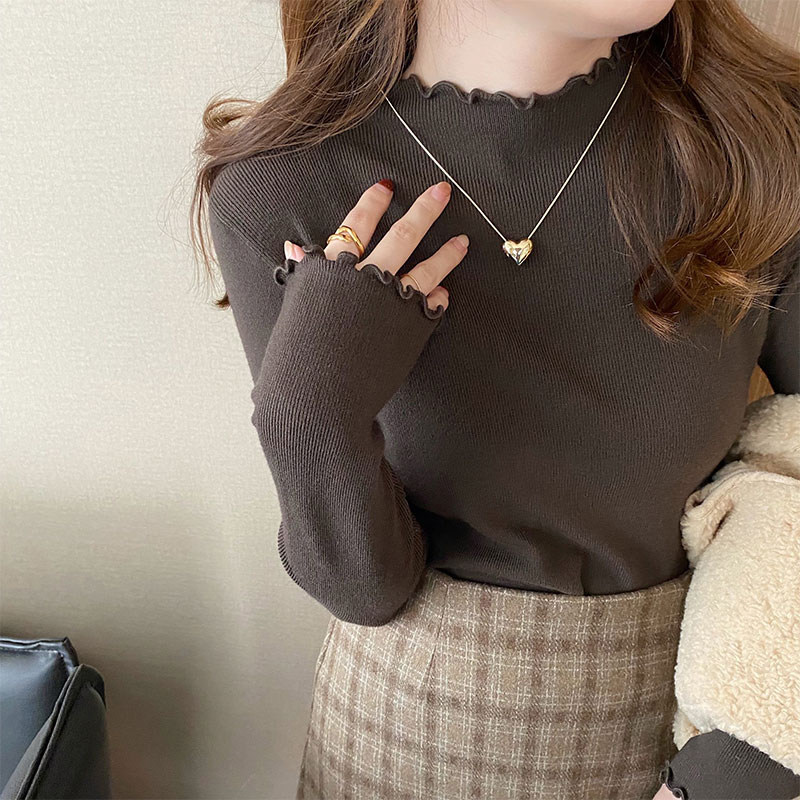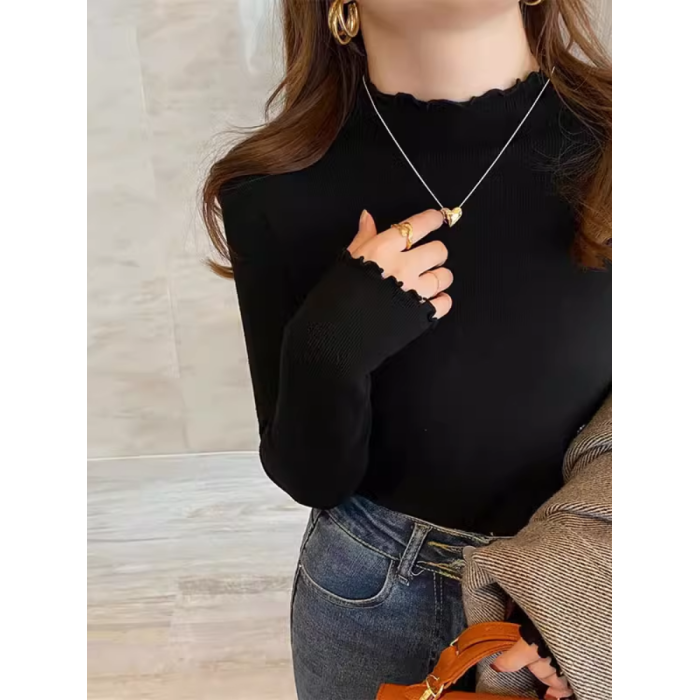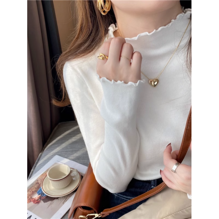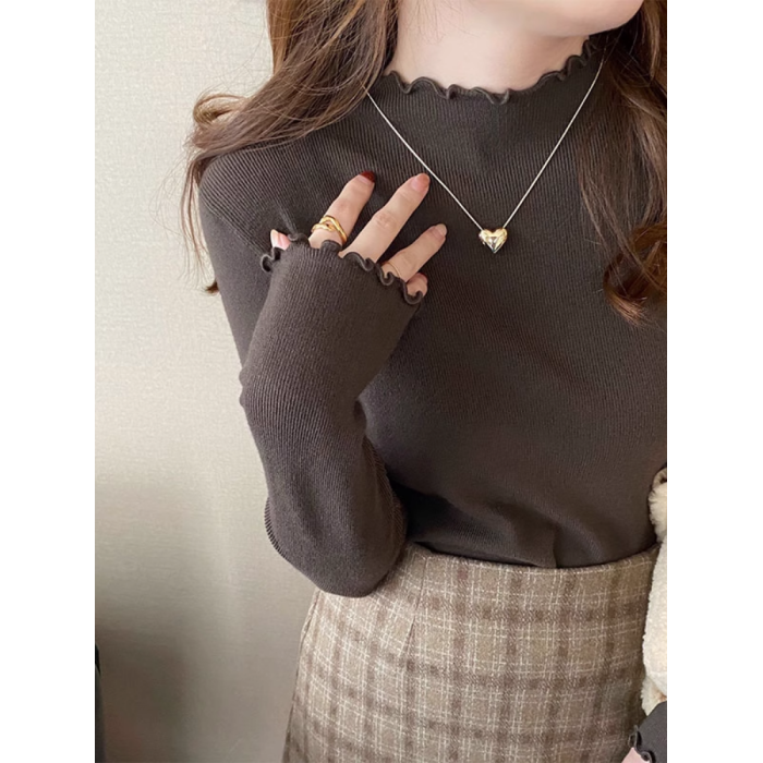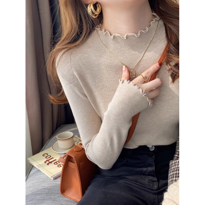 高級洋氣內搭打底衫女2025年秋冬新款木耳邊半高領毛衣針織衫上衣