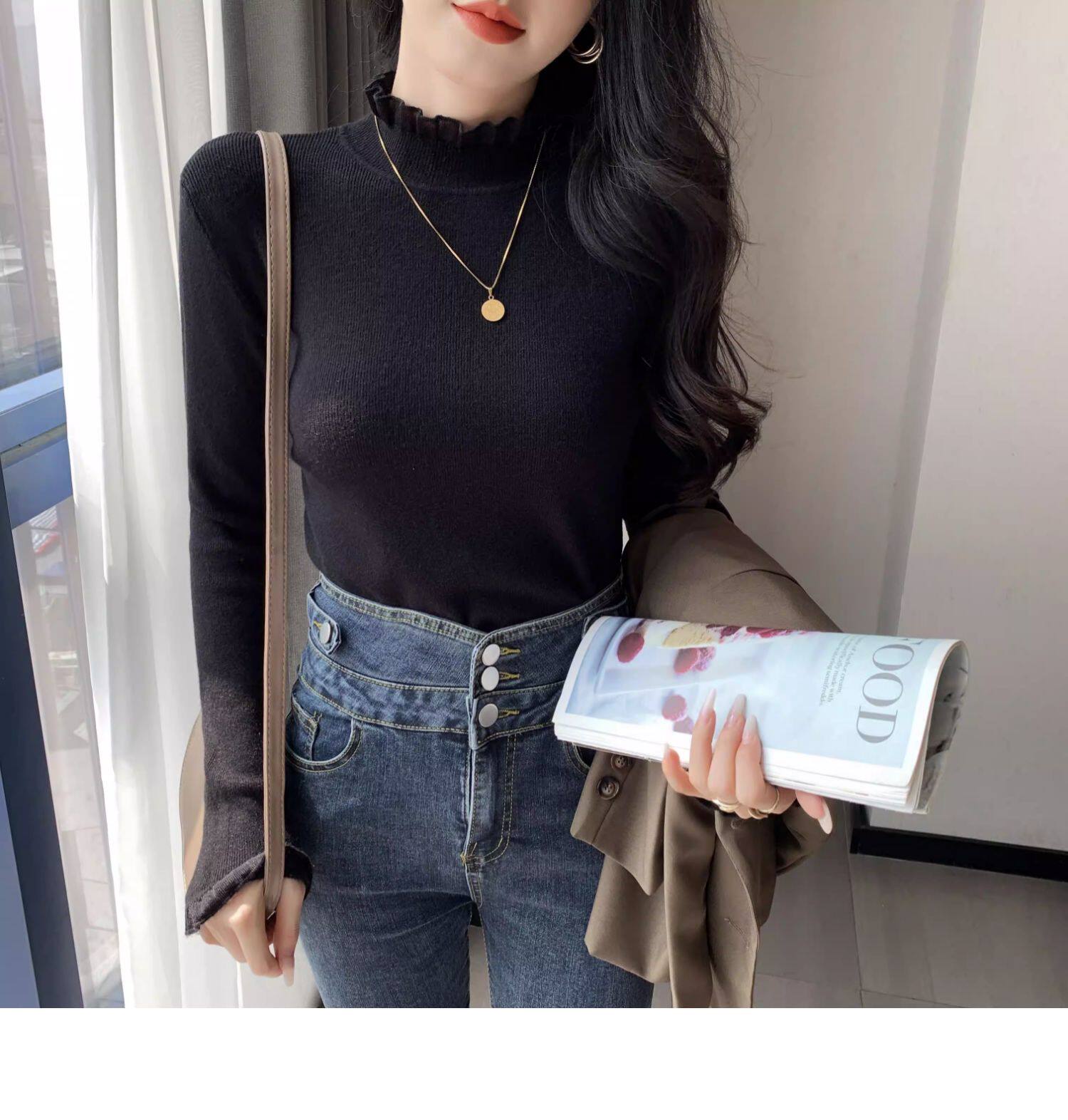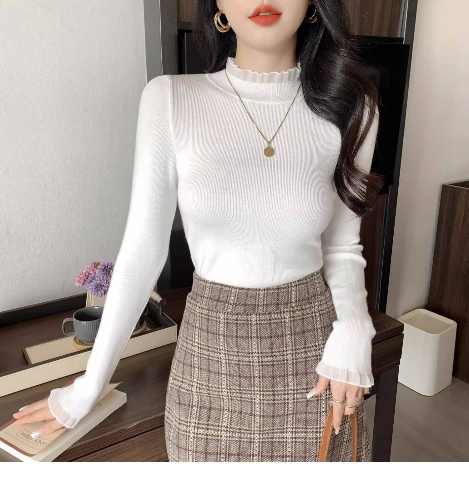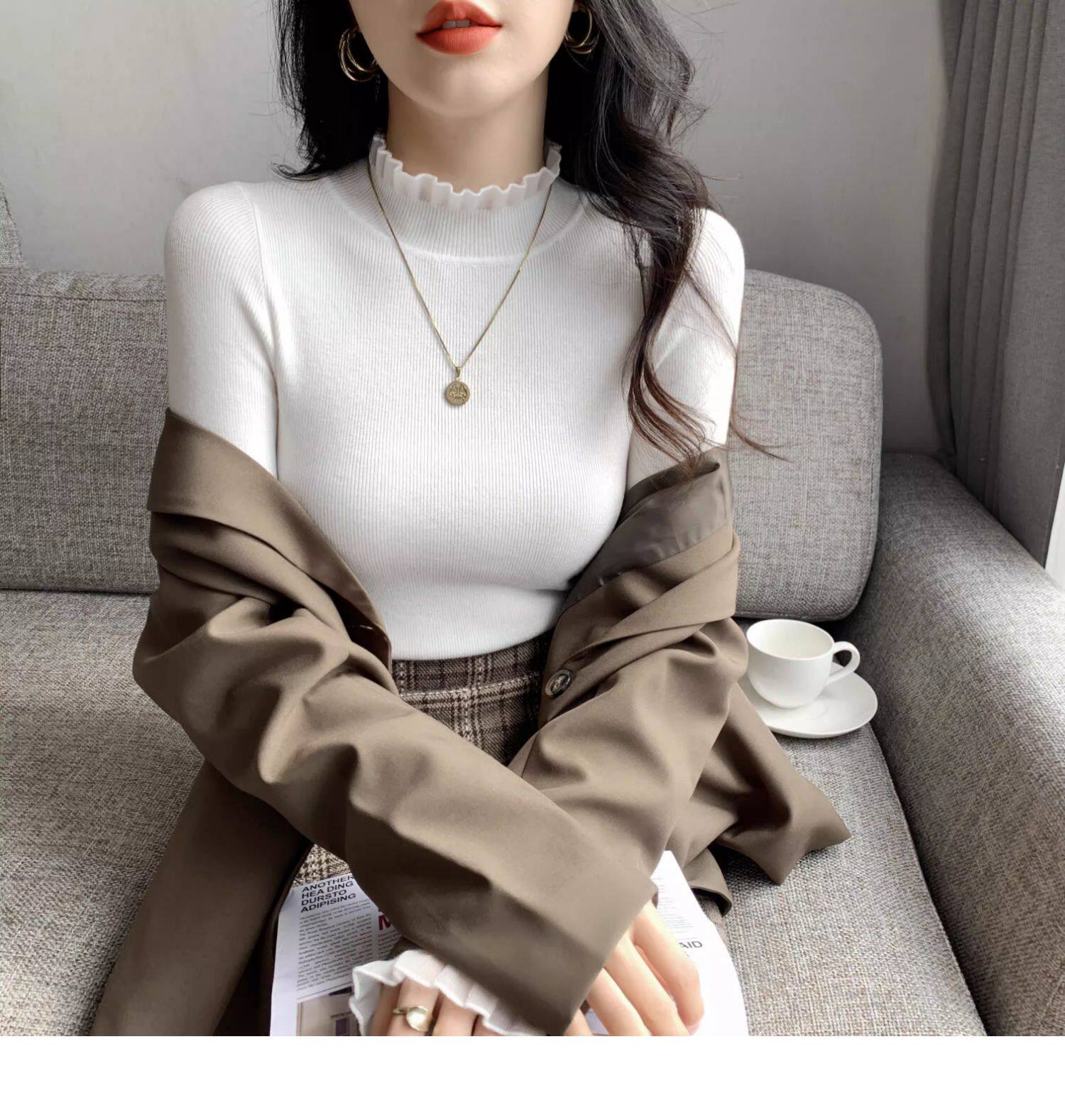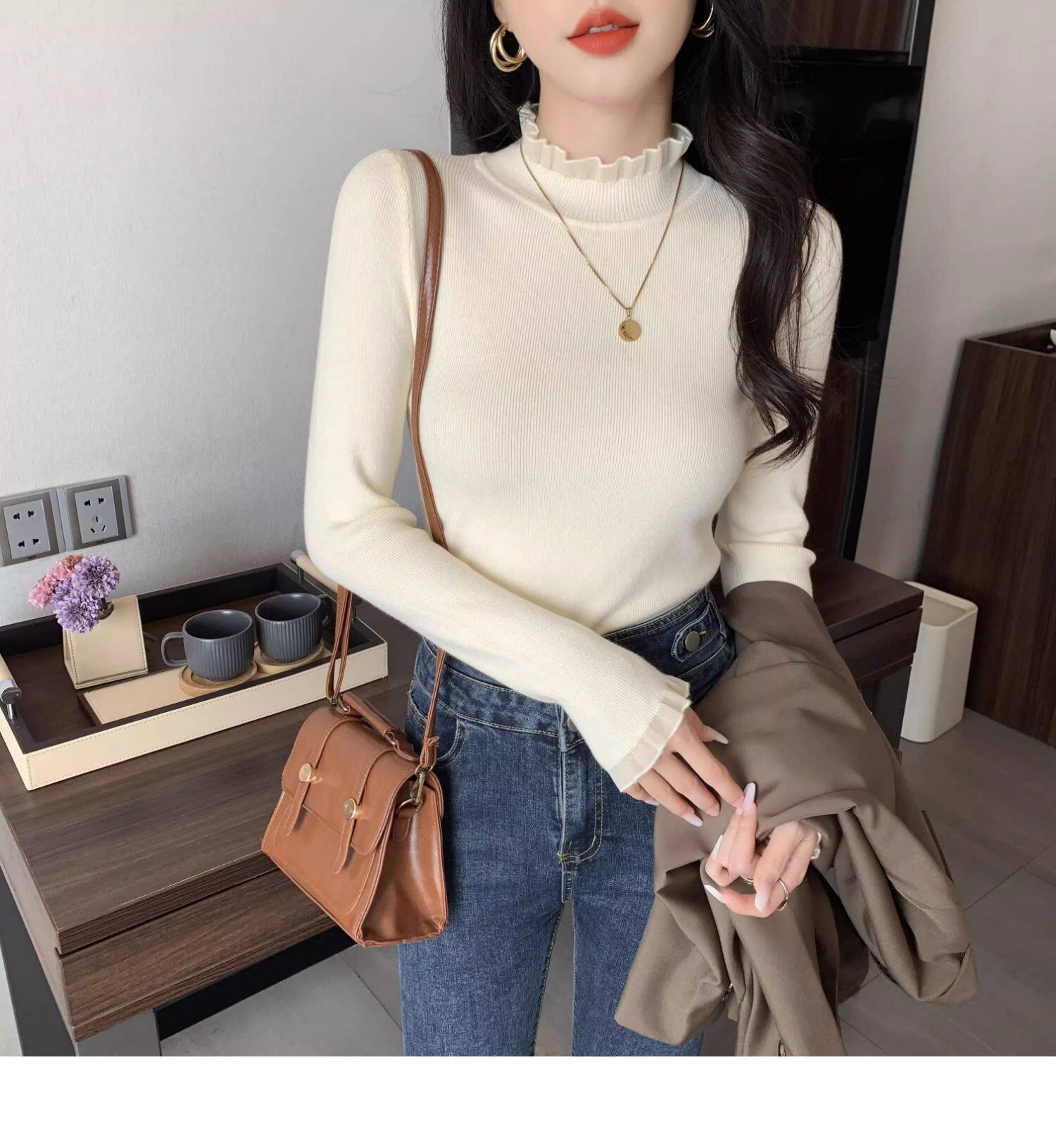 2025年秋季絕美蕾絲半高領長袖針織衫女修身內搭加絨毛衣打底上衣