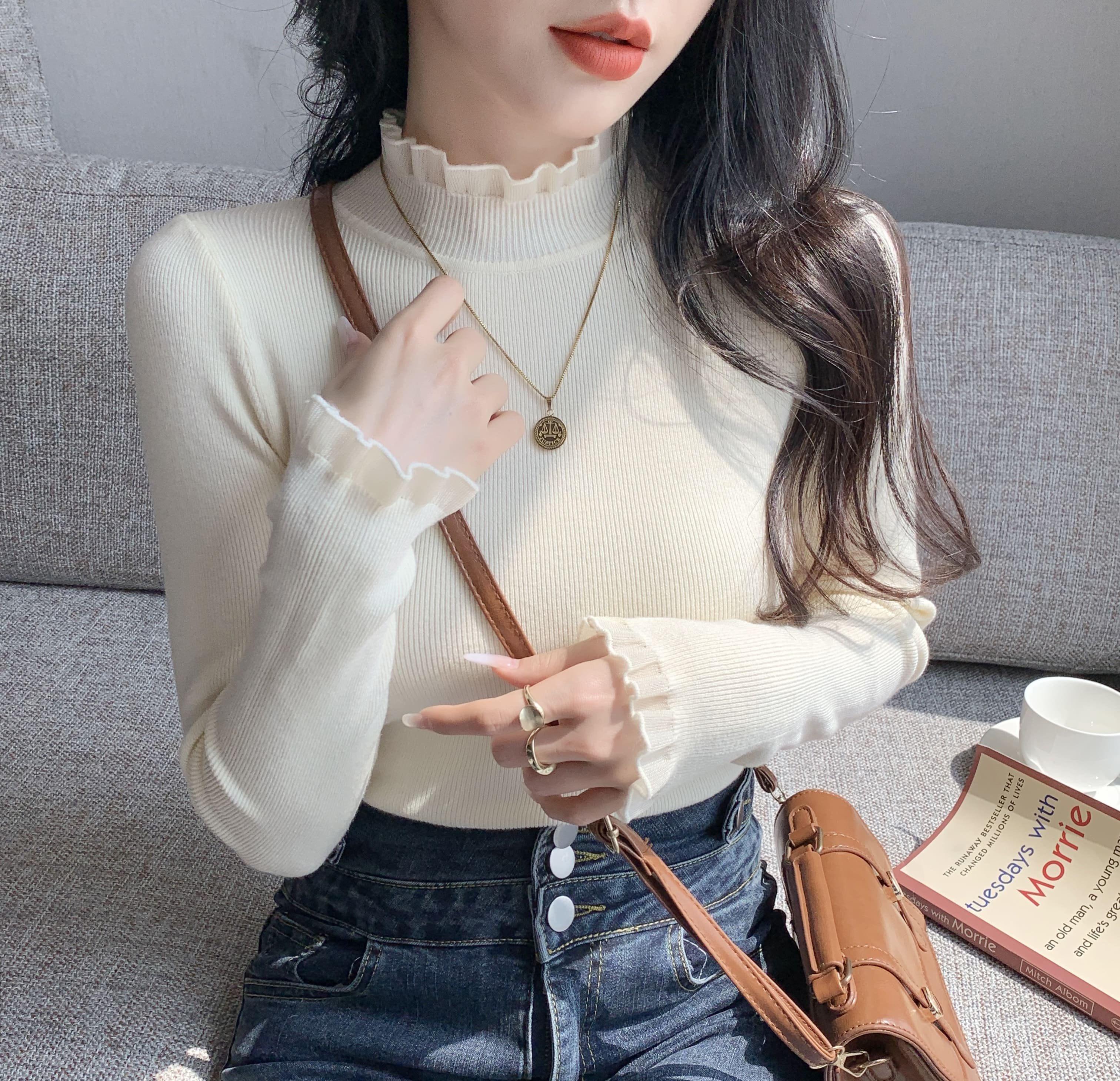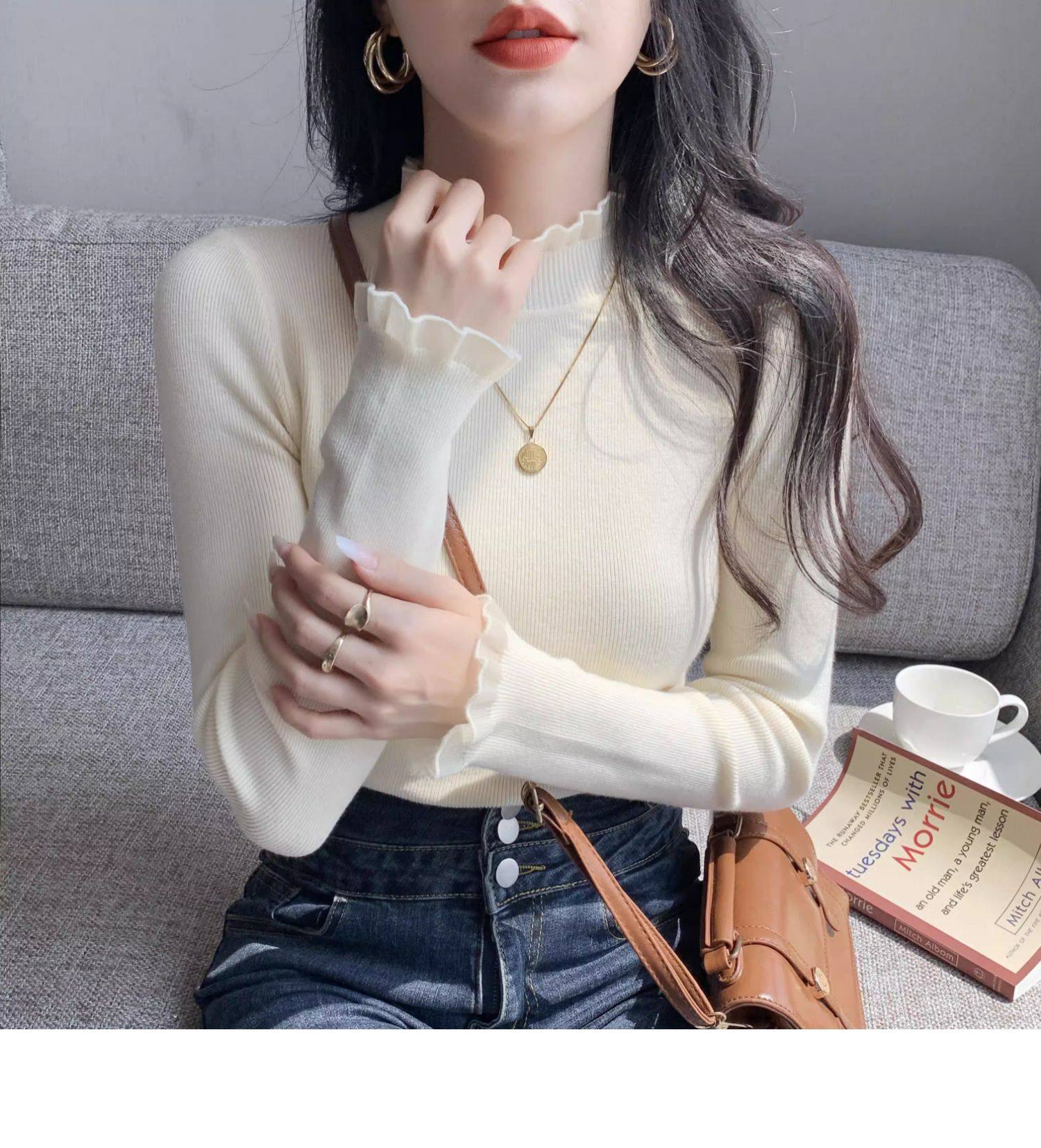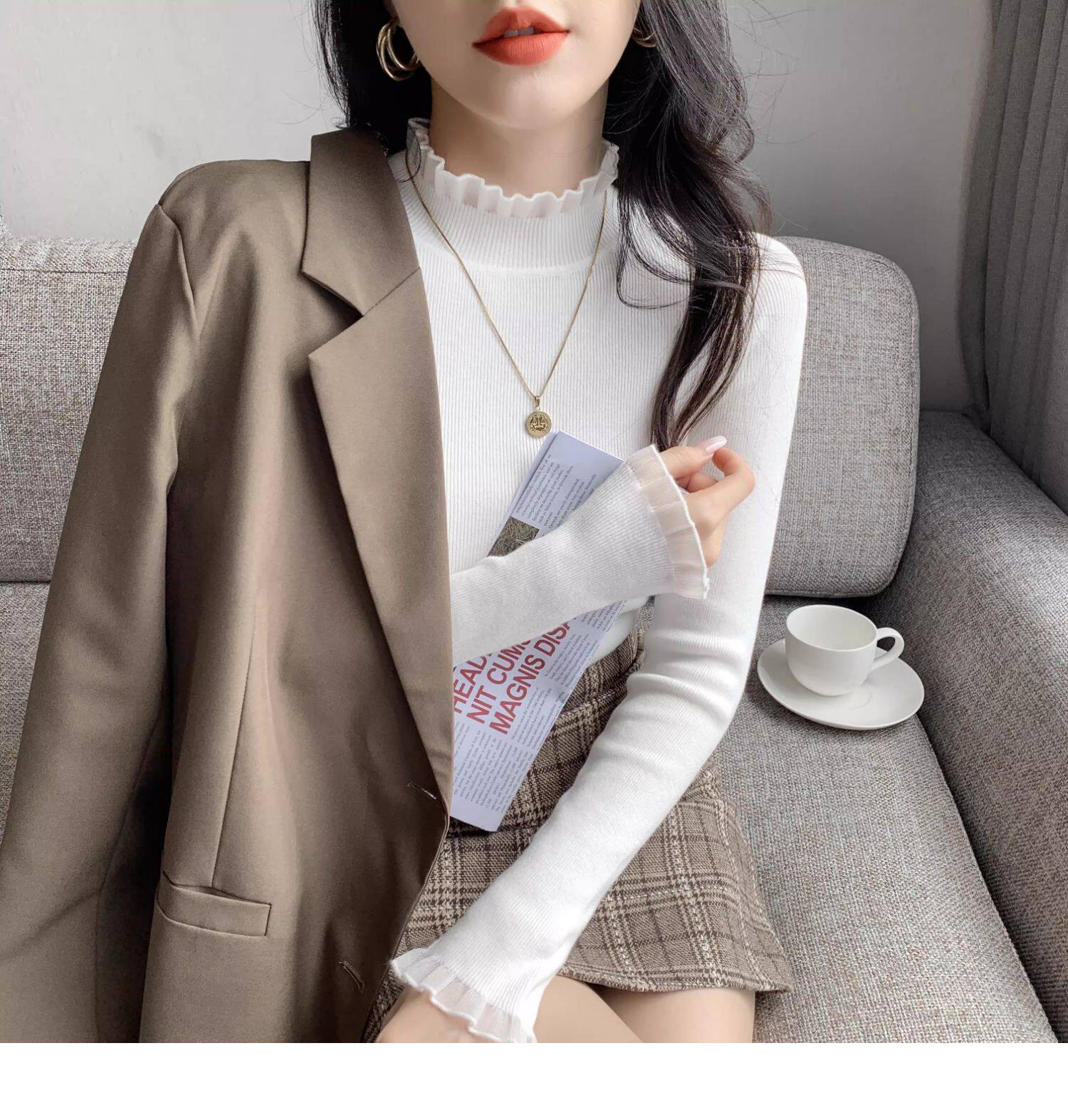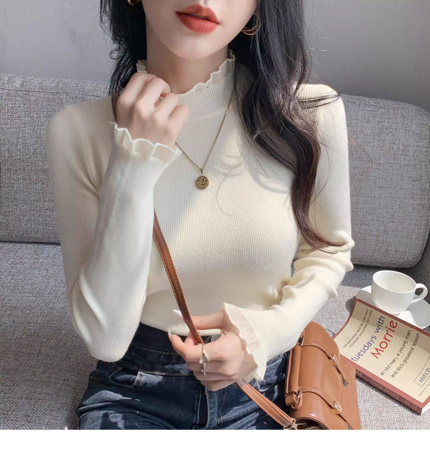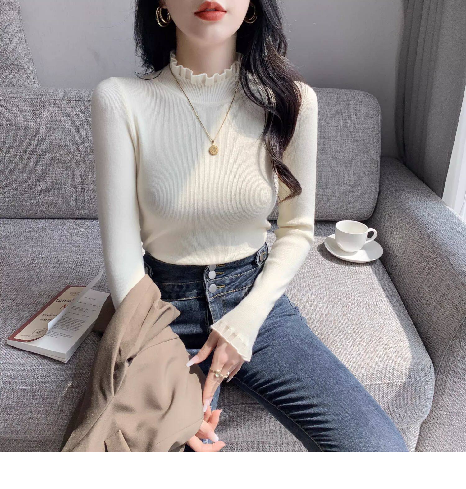 2025年秋季絕美蕾絲半高領長袖針織衫女修身內搭加絨毛衣打底上衣