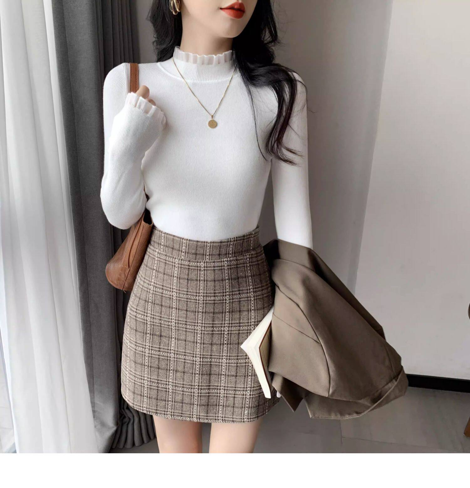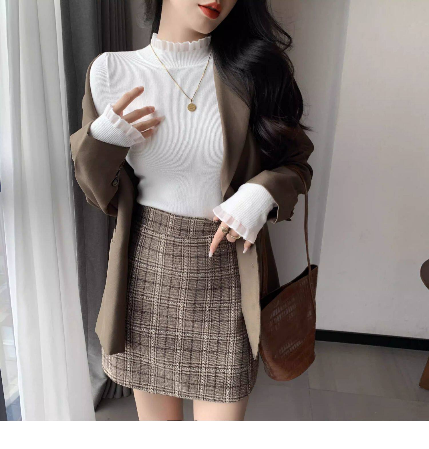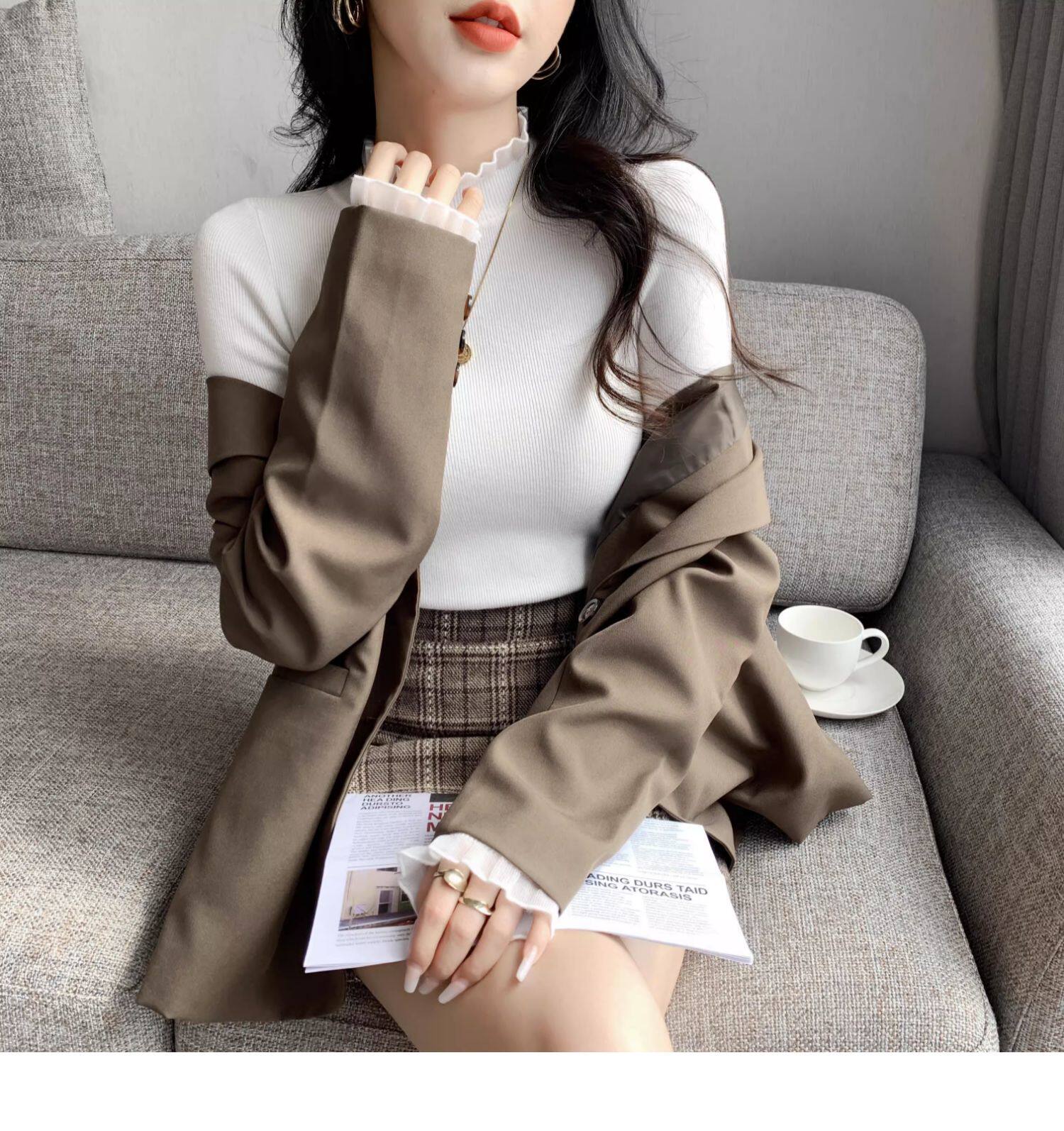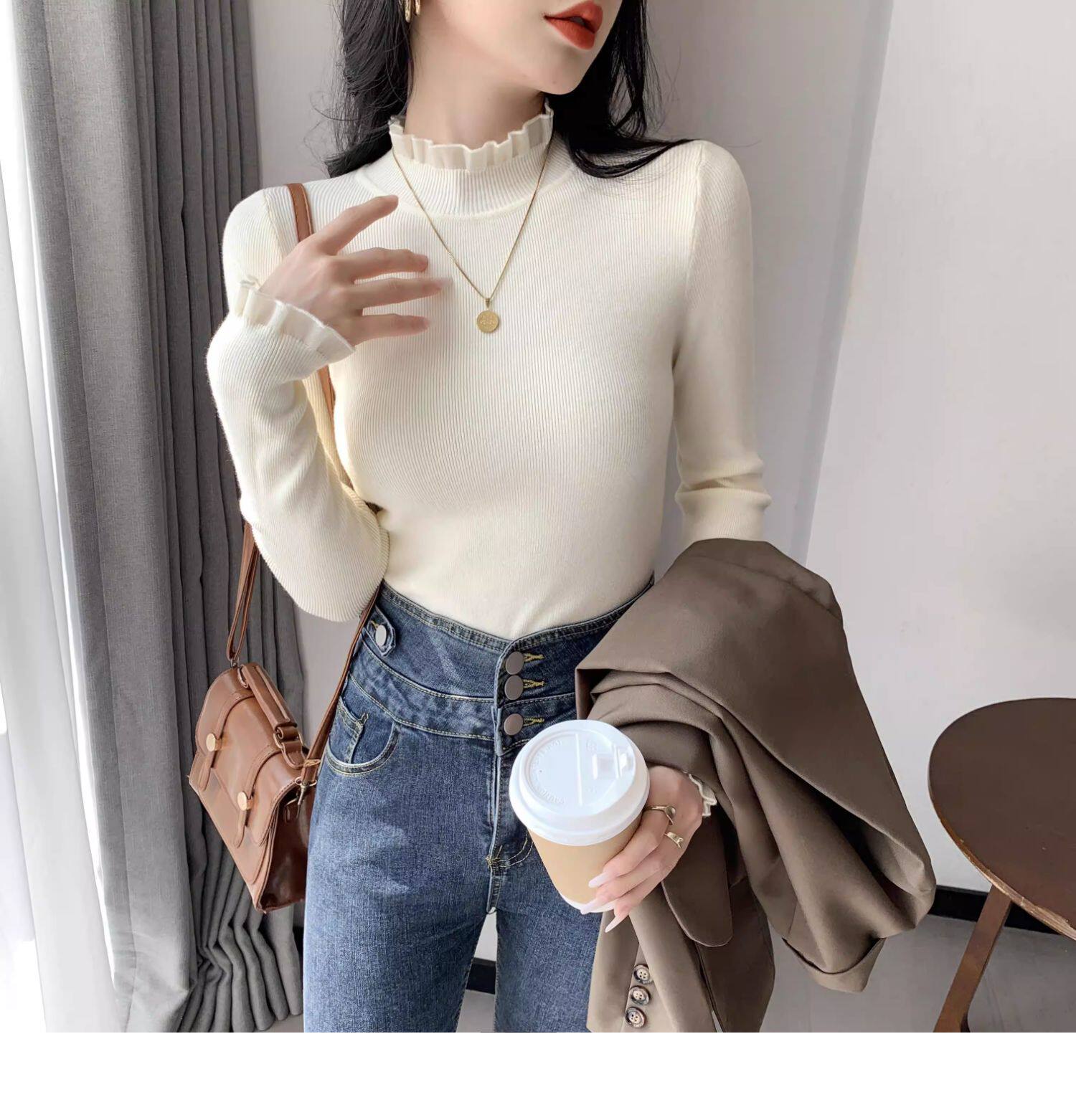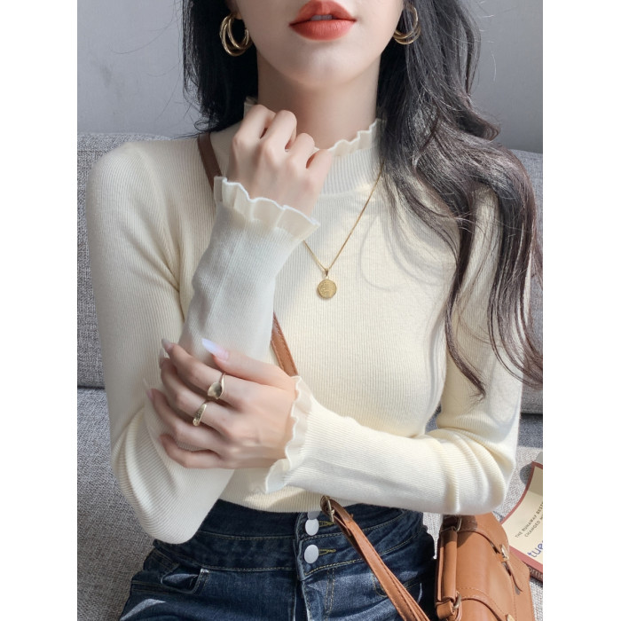 2025年秋季絕美蕾絲半高領長袖針織衫女修身內搭加絨毛衣打底上衣