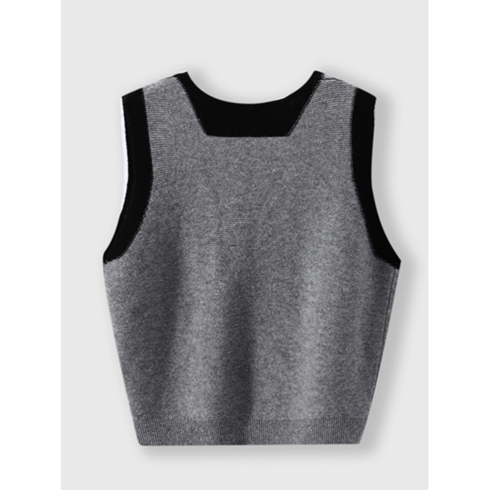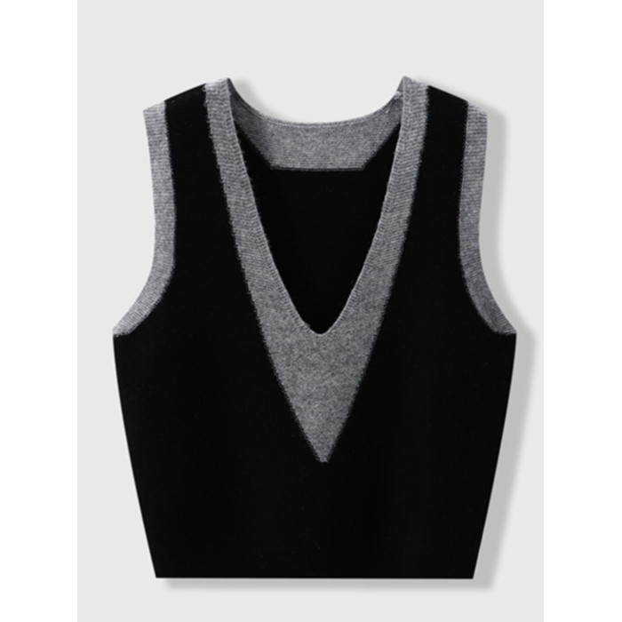 出口意大利大牌原單撤櫃餘單羊毛v領針織馬夾女曡穿背心馬夾