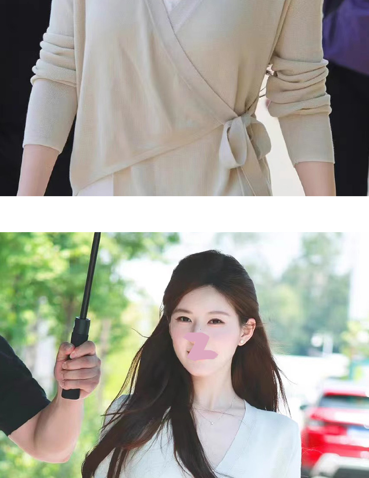 許我耀眼趙露思許妍同款不規則系帶針織衫女薄款冰絲百搭防曬衣服