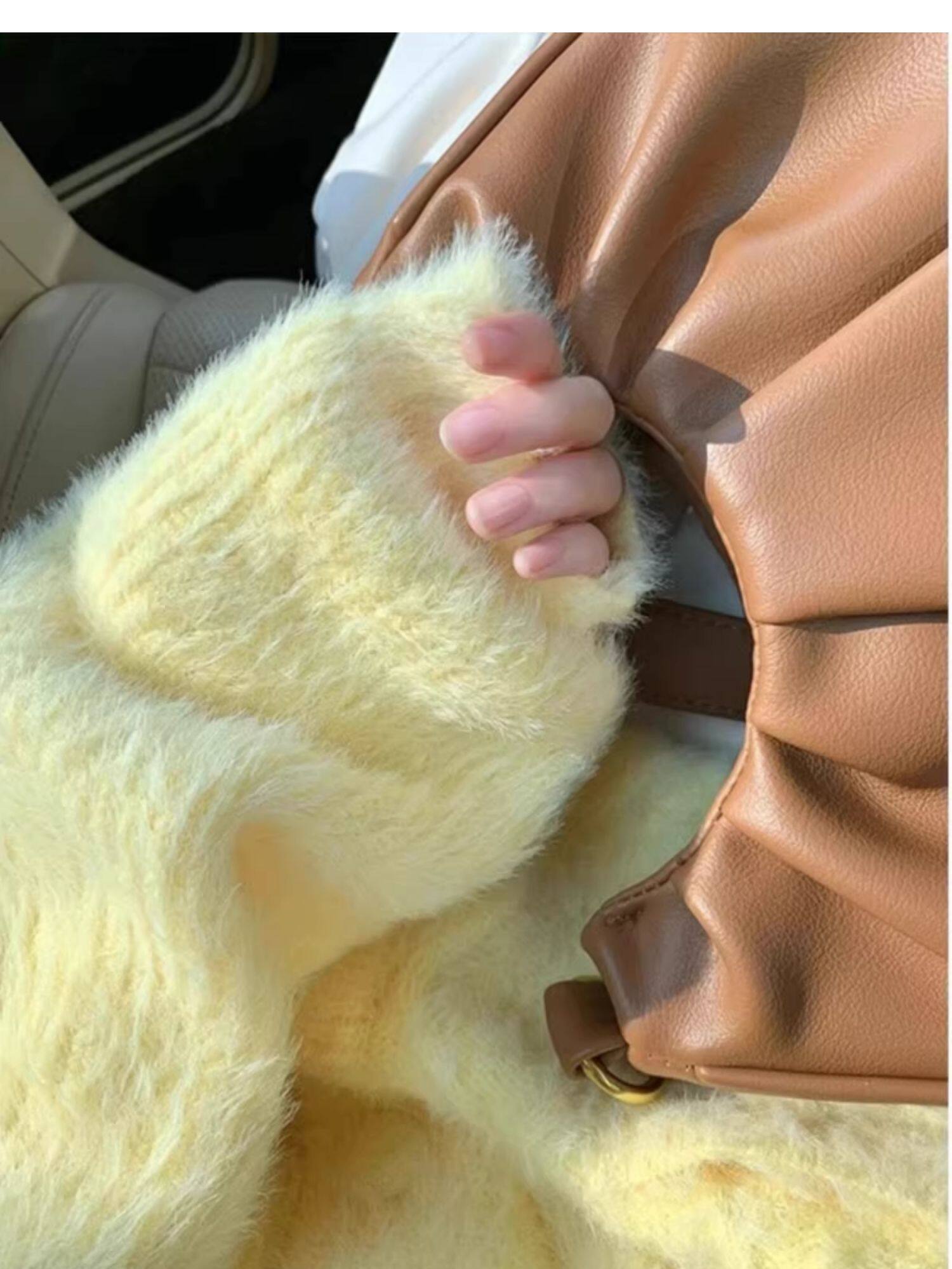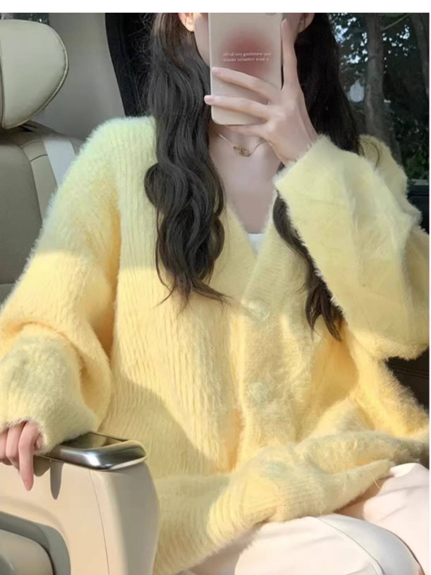 溫柔風軟糯奶黃色毛衣外套女秋冬2025新款寬鬆外搭馬海毛針織開衫