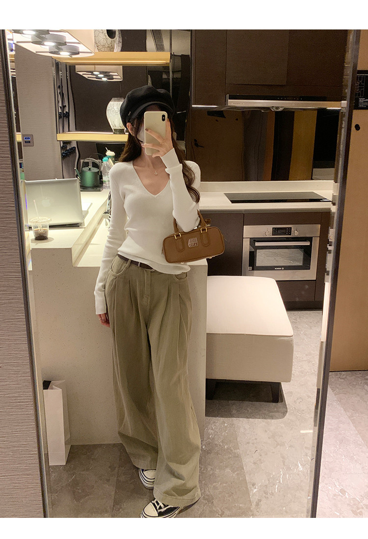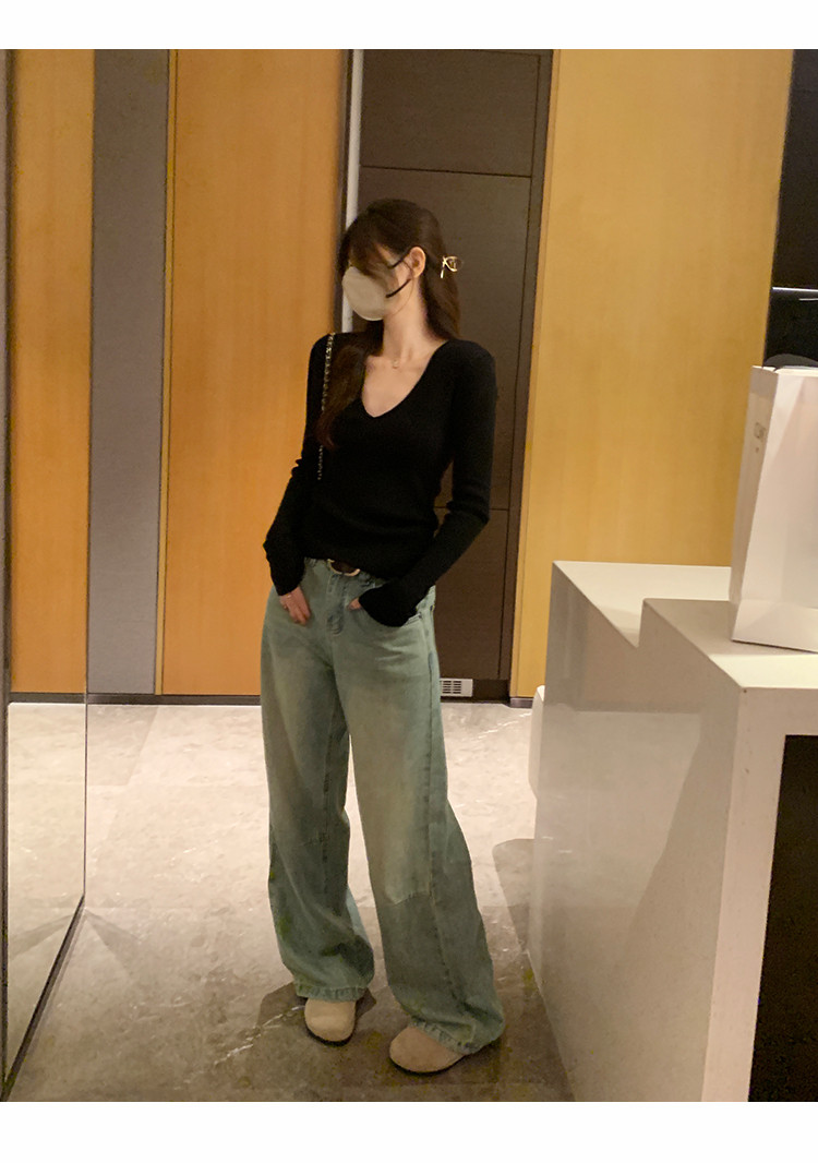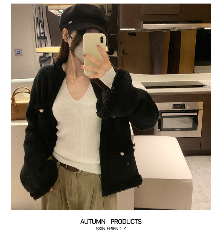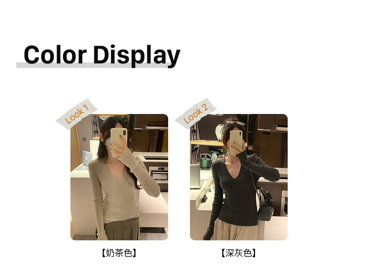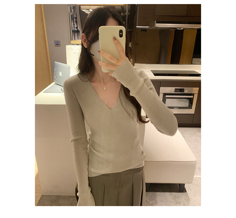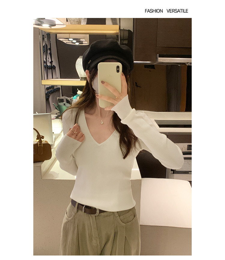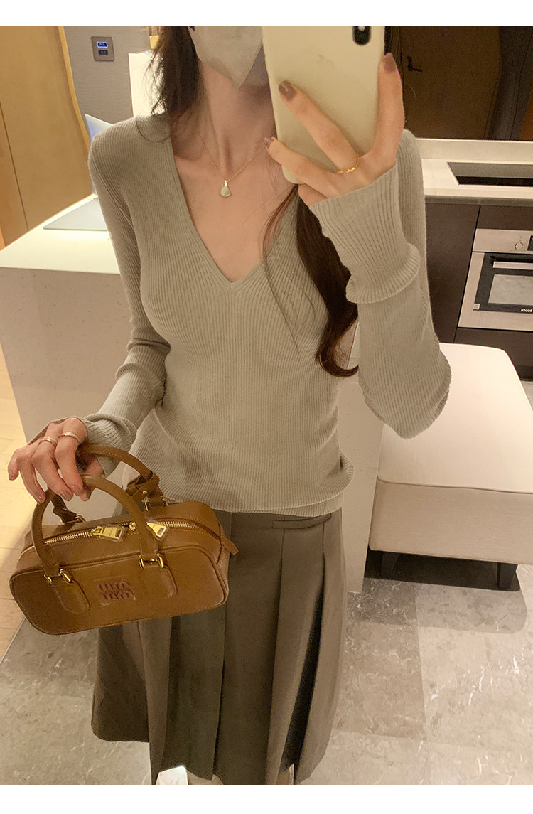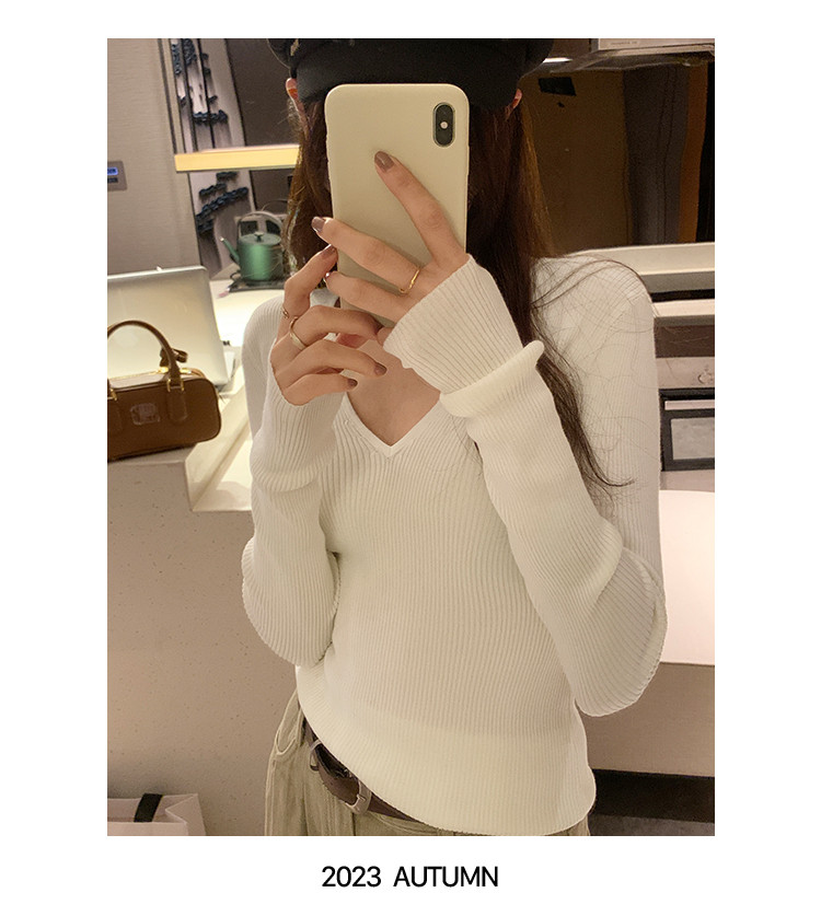 早秋外穿黑色V領高級感長袖內搭毛衣女冬絕美顯瘦針織打底衫上衣