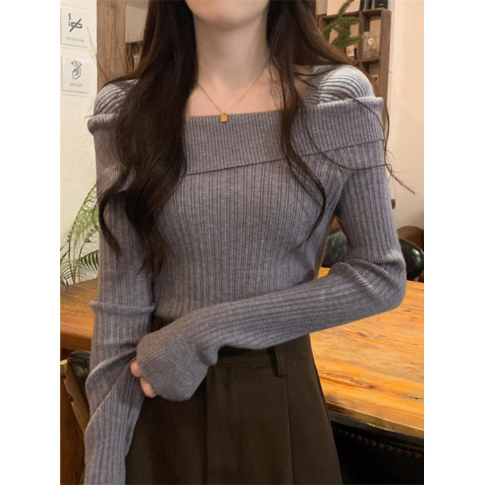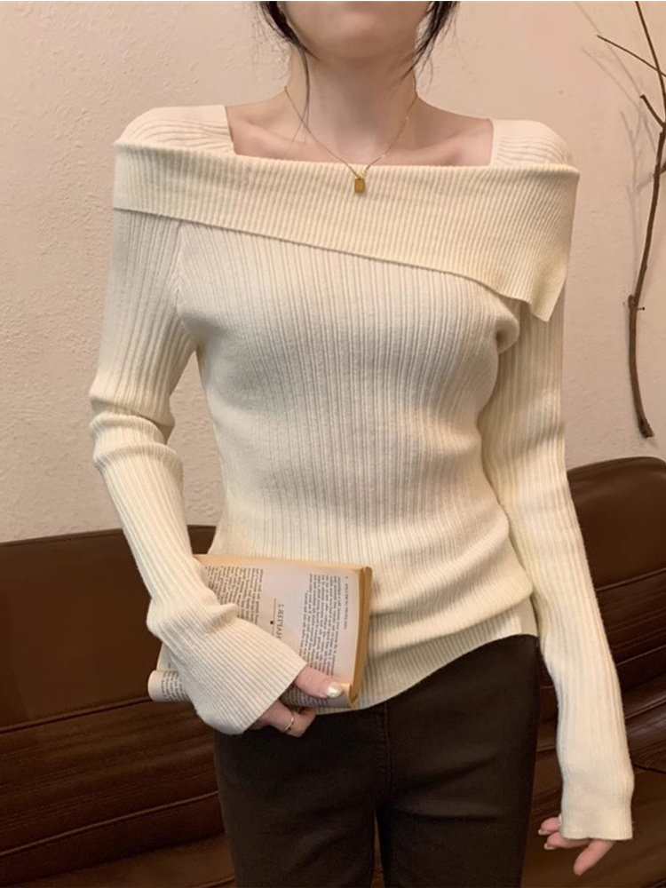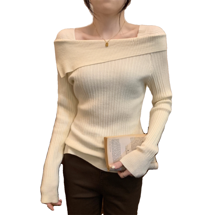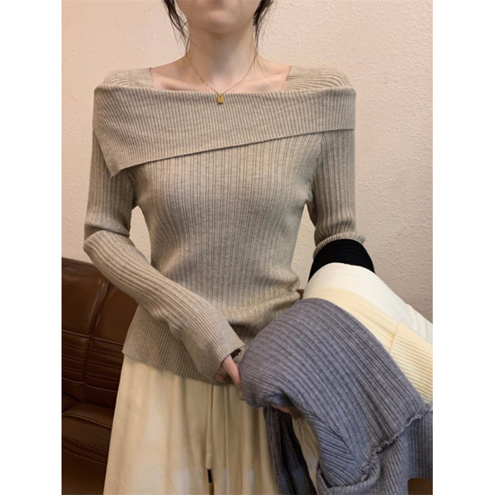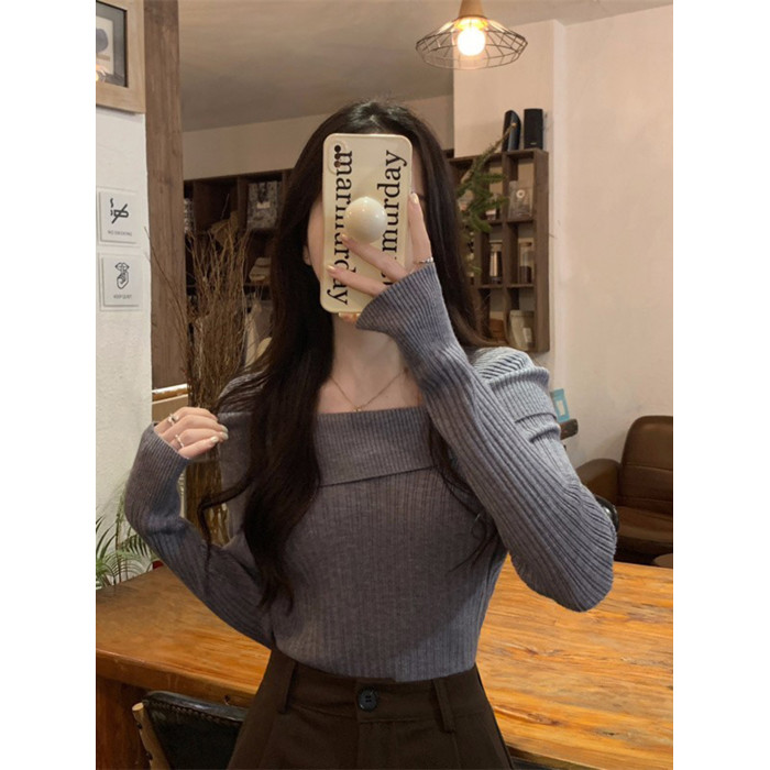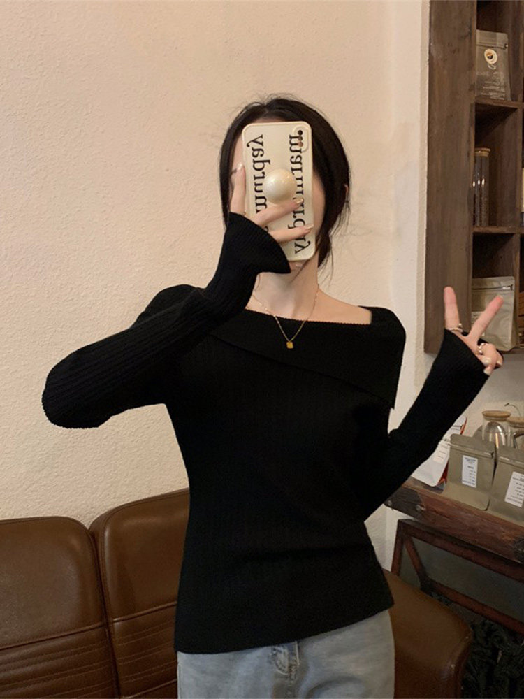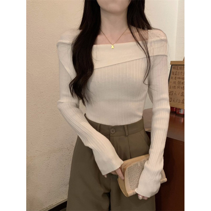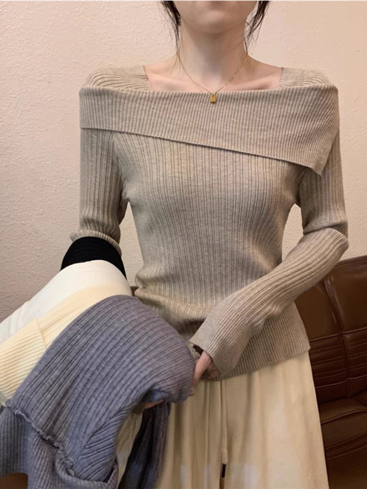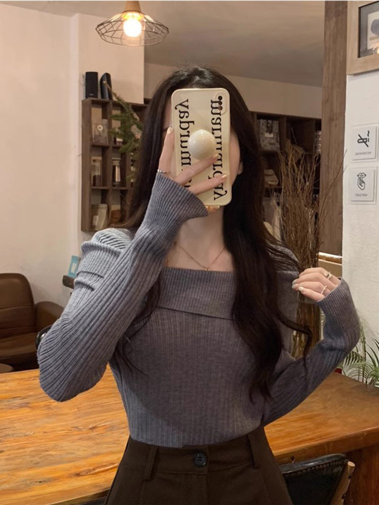 設計感一字肩針織衫女2025秋冬季新款打底衫內搭毛衣小衆高級上衣