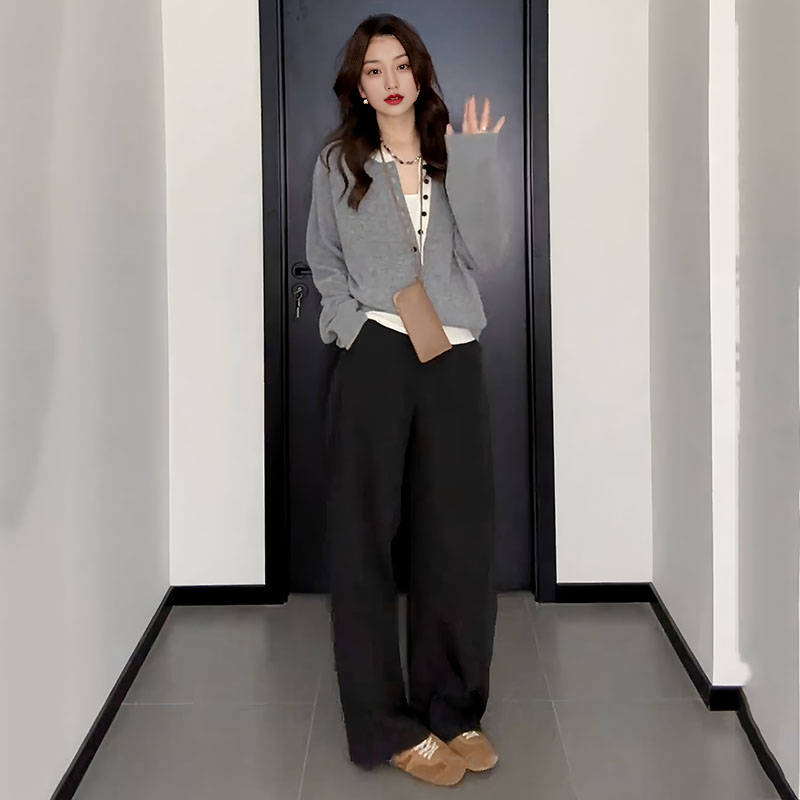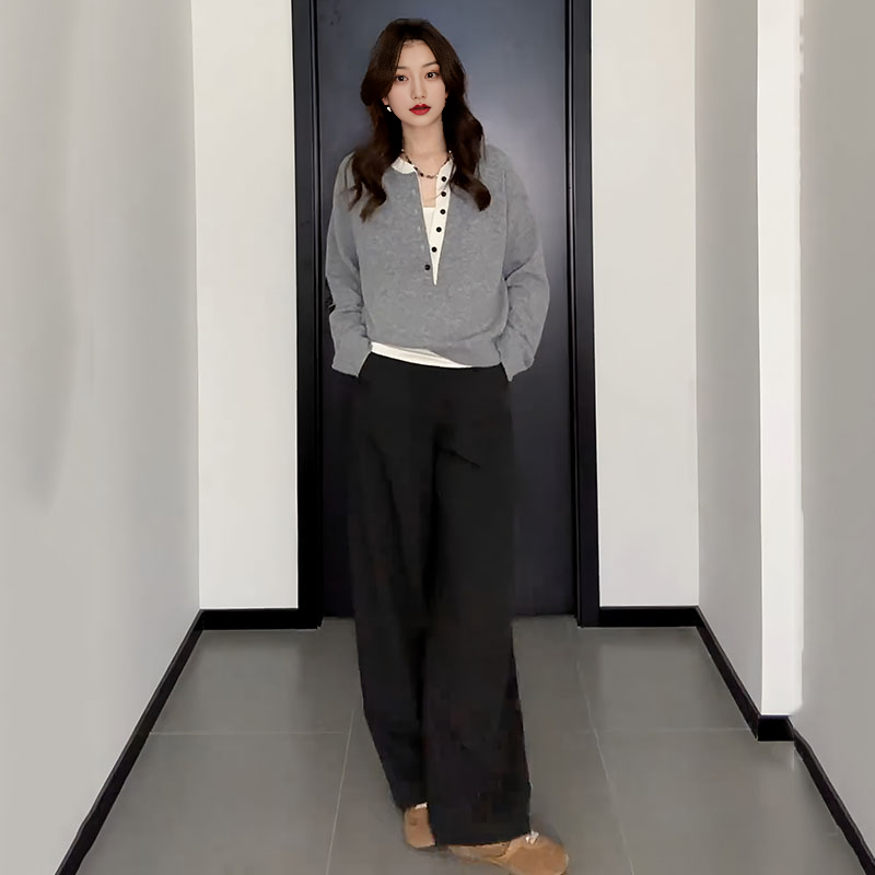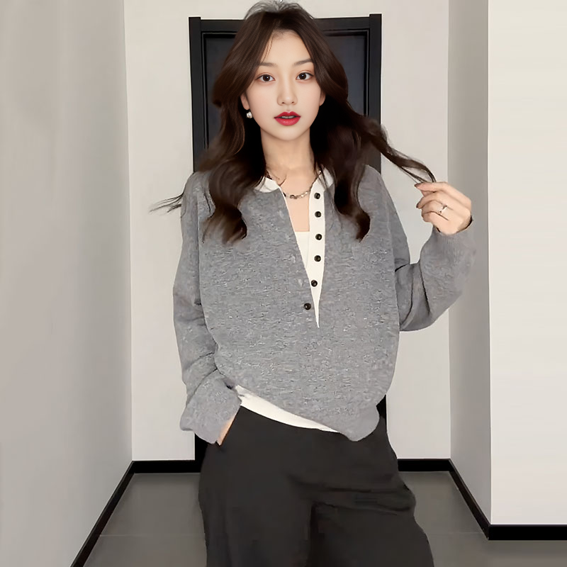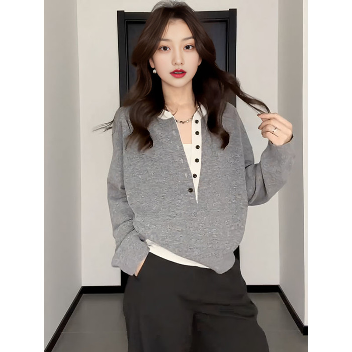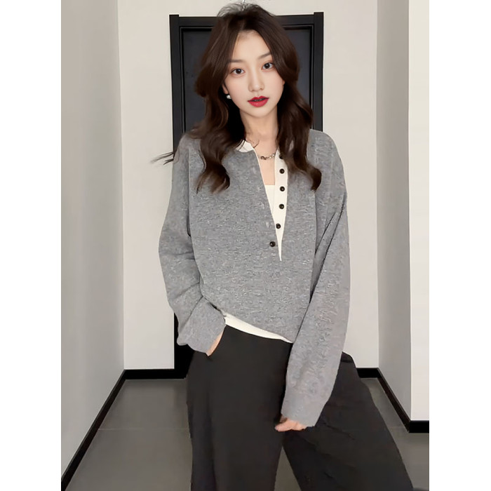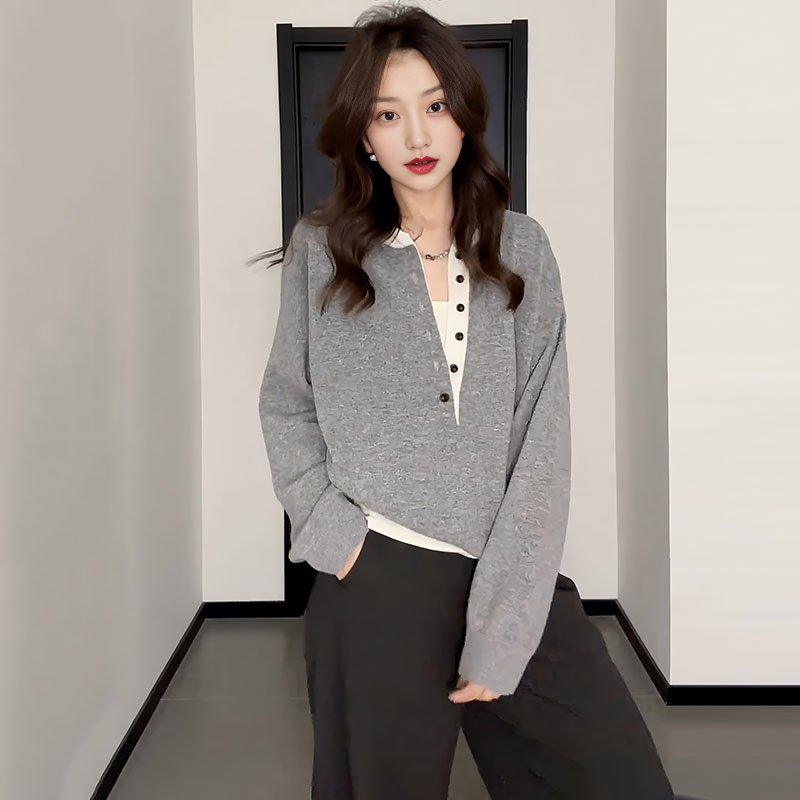 大碼女裝假兩件毛衣針織衫早秋新款胖mm寬松遮肚顯瘦內搭外穿上衣