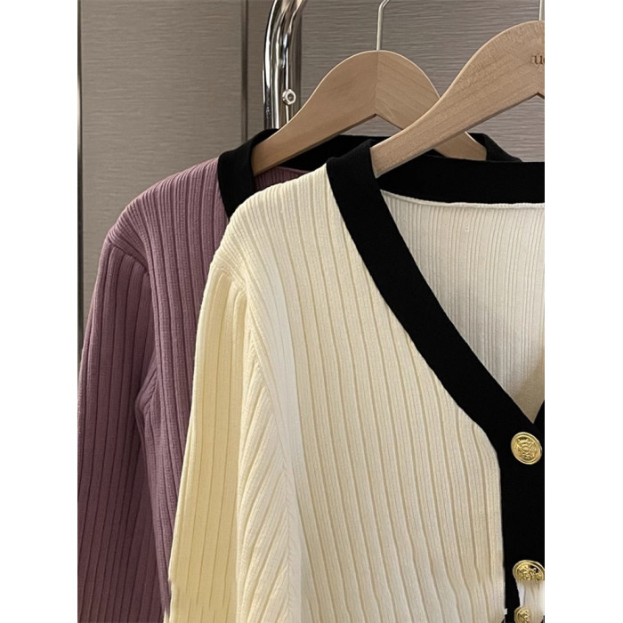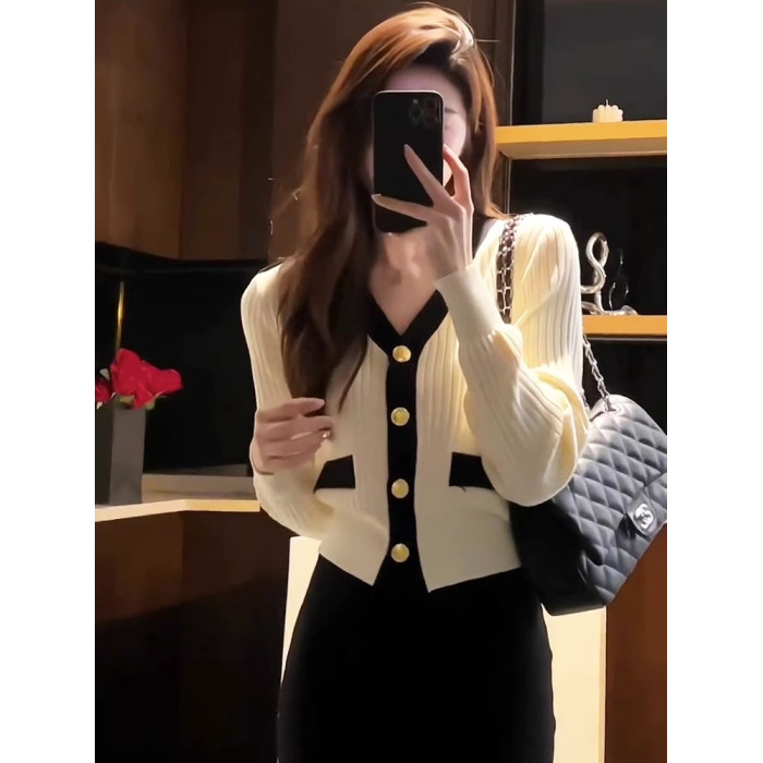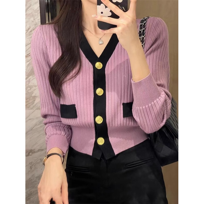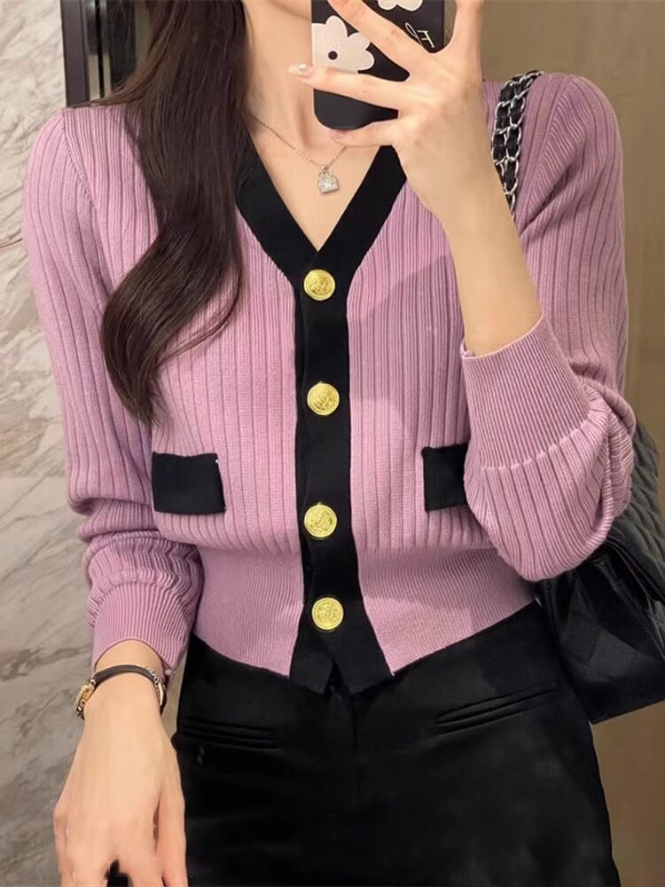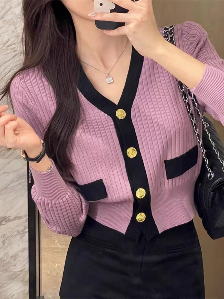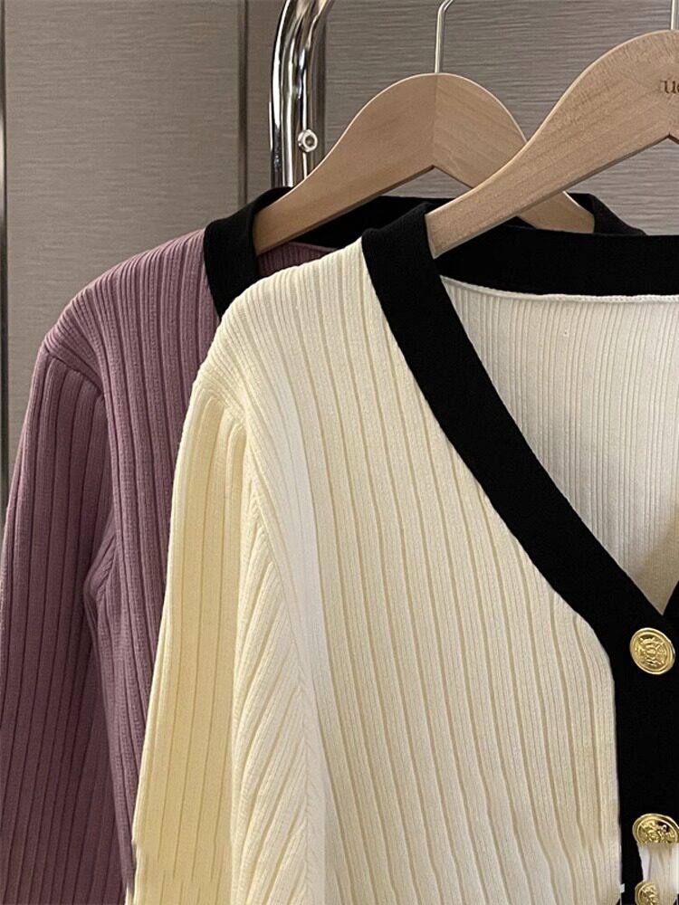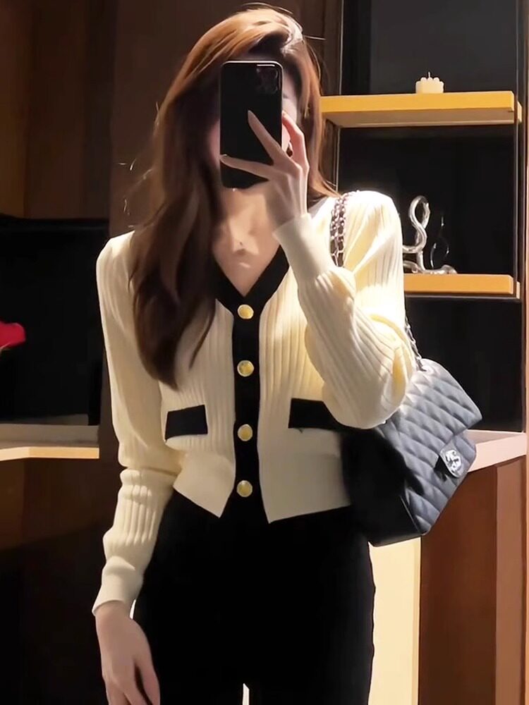 短款小香風V領毛衣女秋季2025新款女裝爆款長袖針織開衫外套上衣