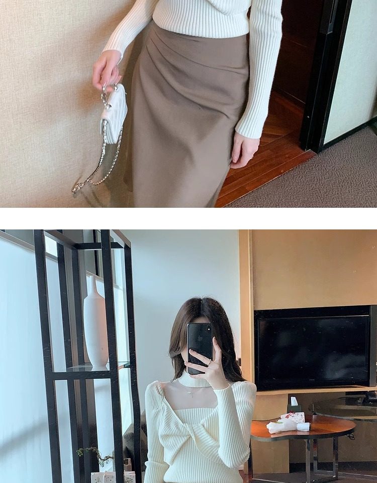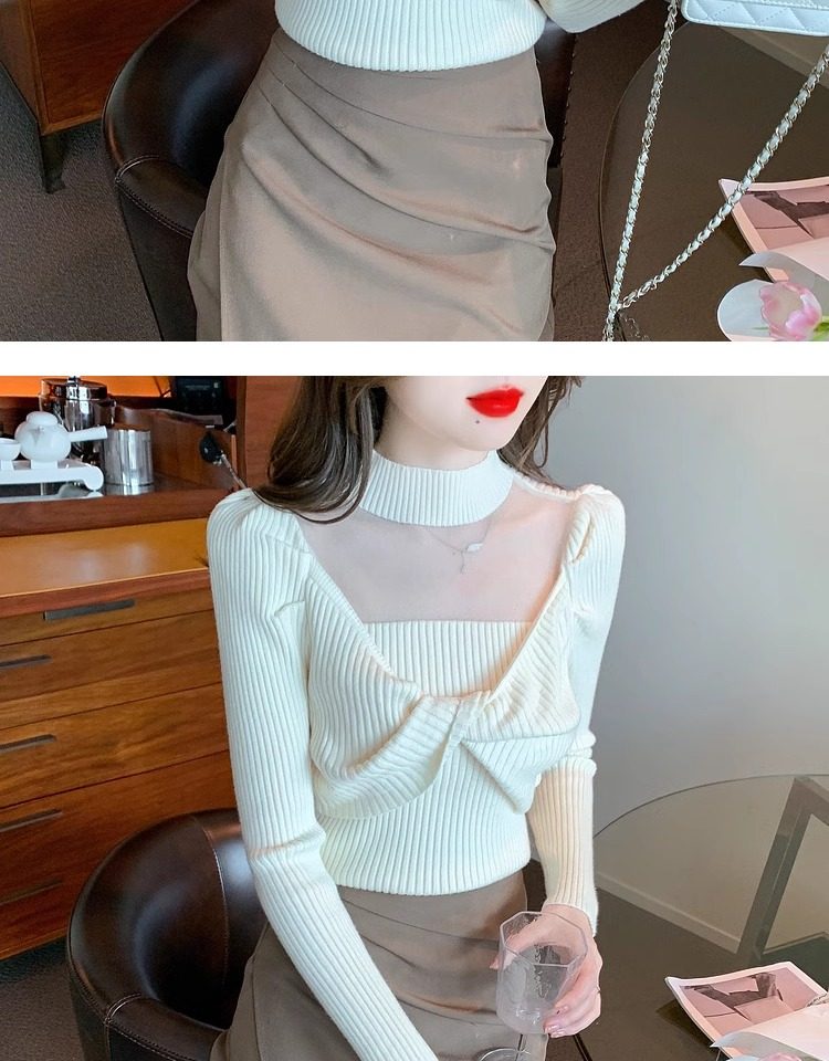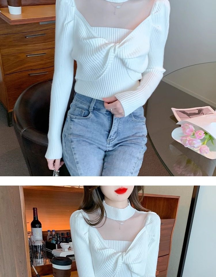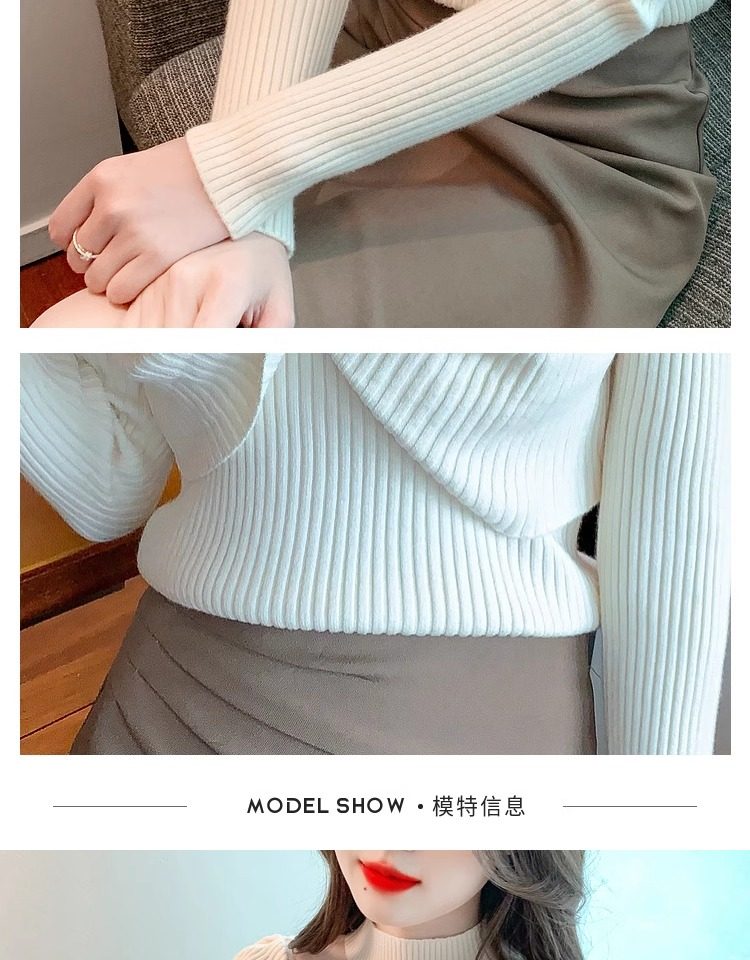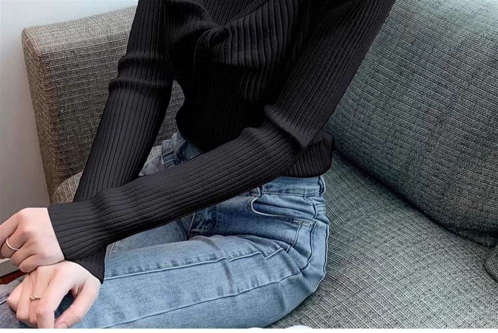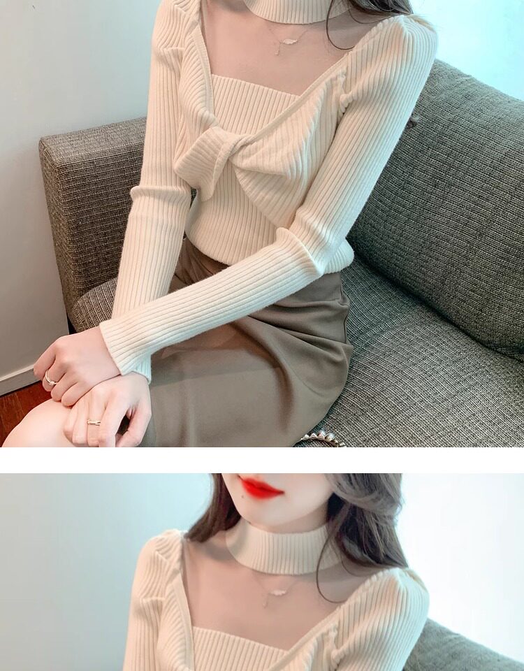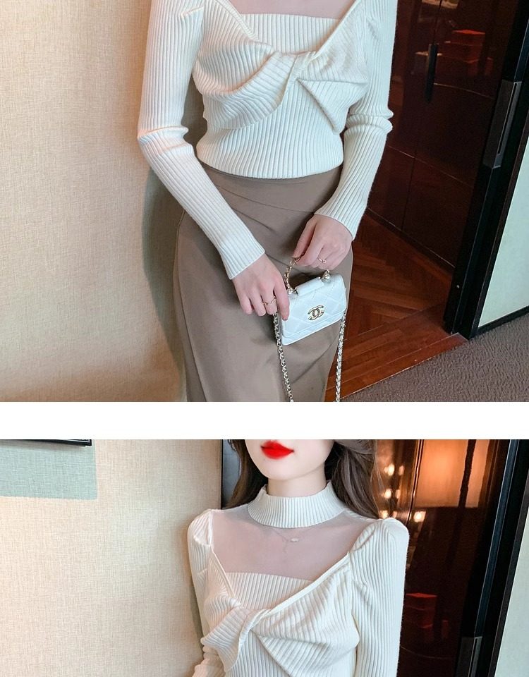 2024年新款秋冬半高領長袖網紗針織衫女氣質扭結毛衣打底衫上衣潮