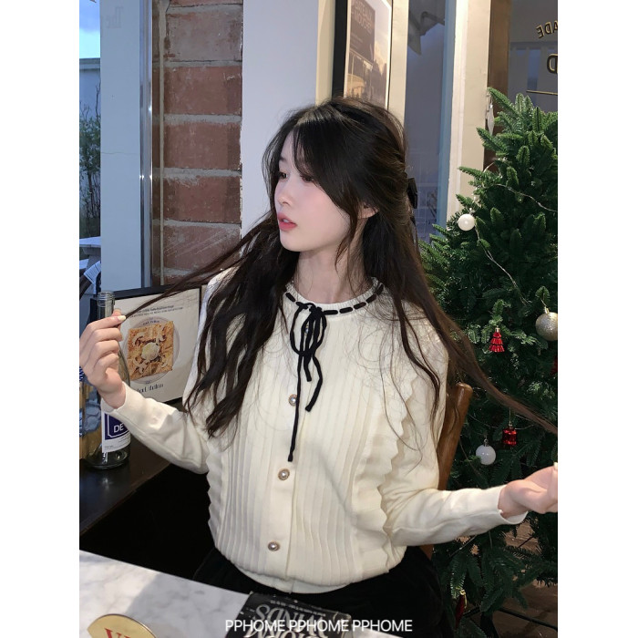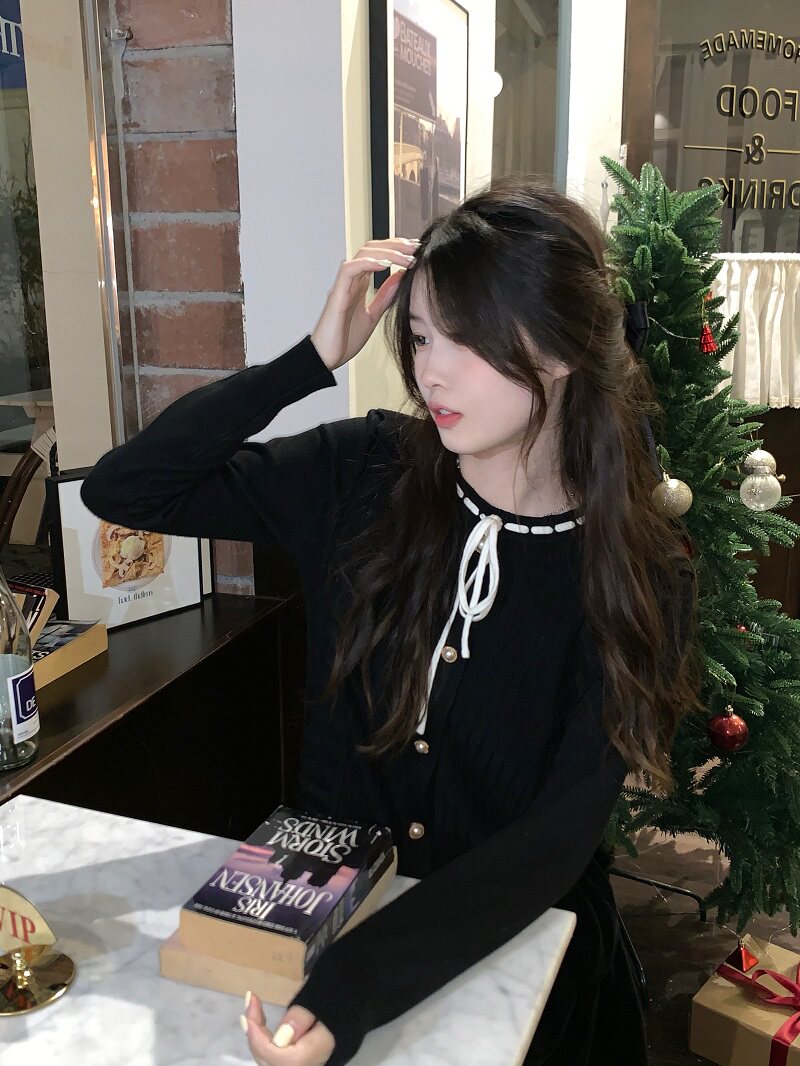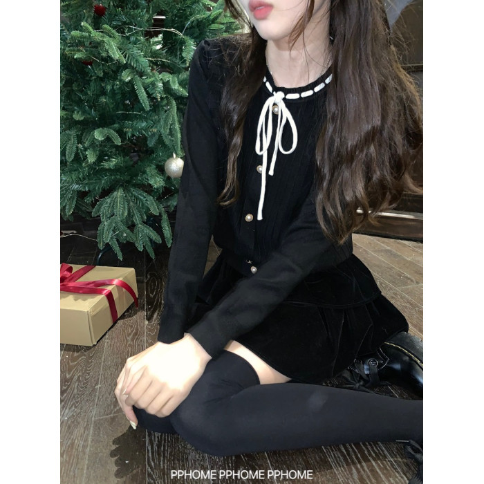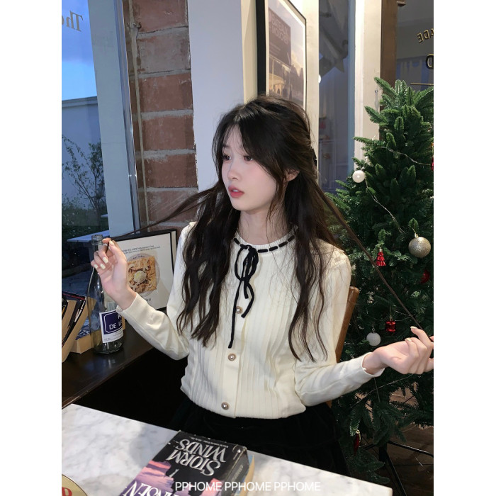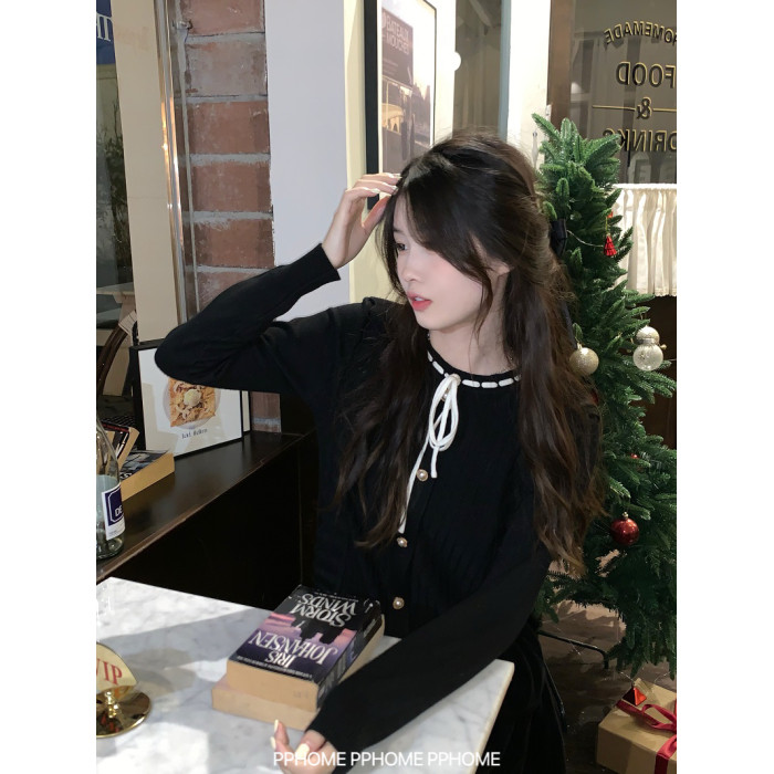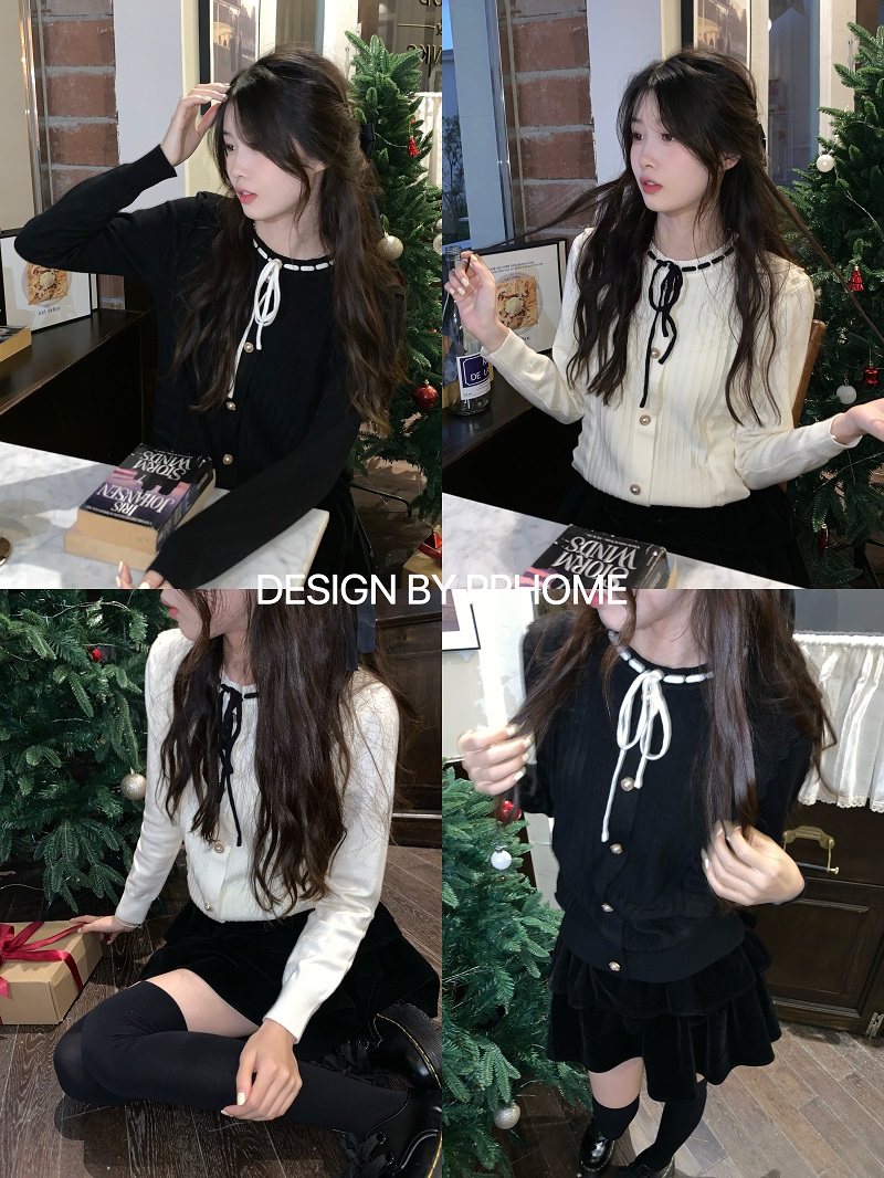 PPHOME自製~千金公主 冬季毛衣精緻小香風撞色圓領內搭打底針織衫