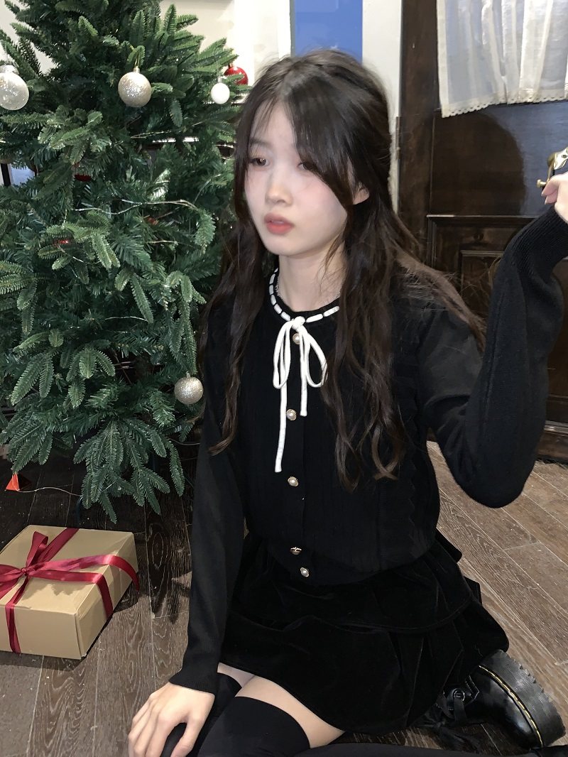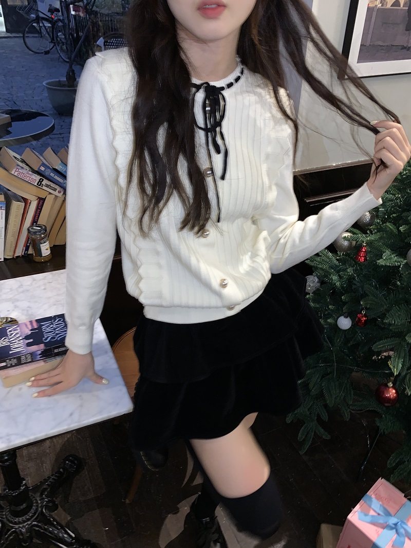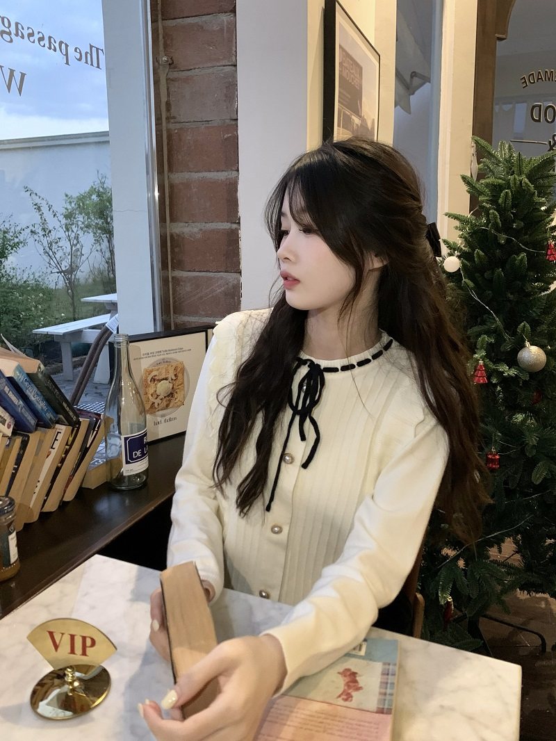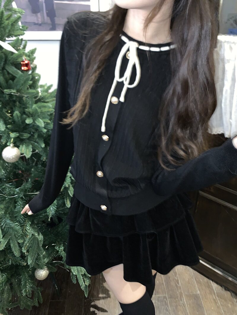 PPHOME自製~千金公主 冬季毛衣精緻小香風撞色圓領內搭打底針織衫