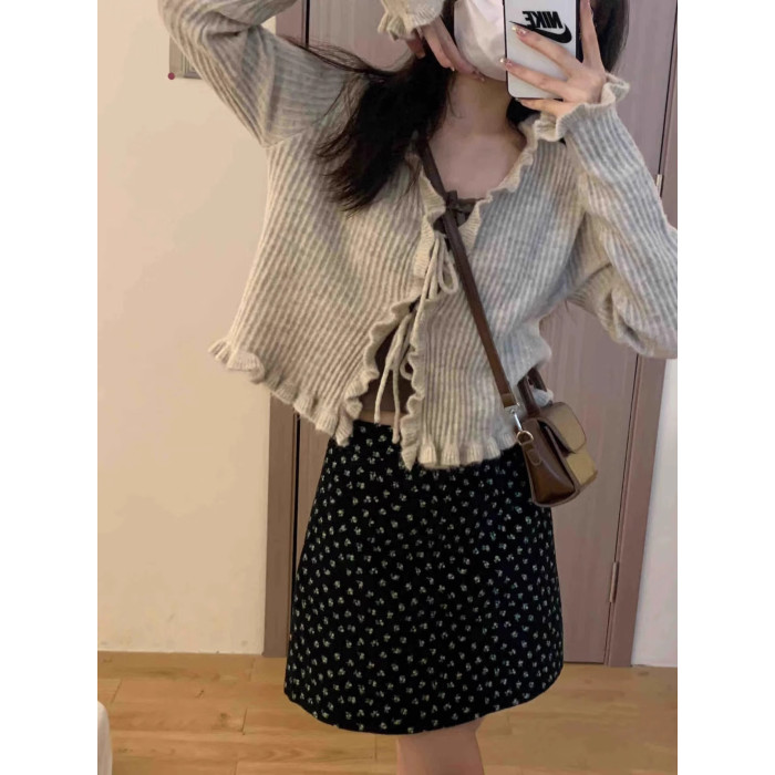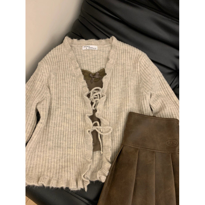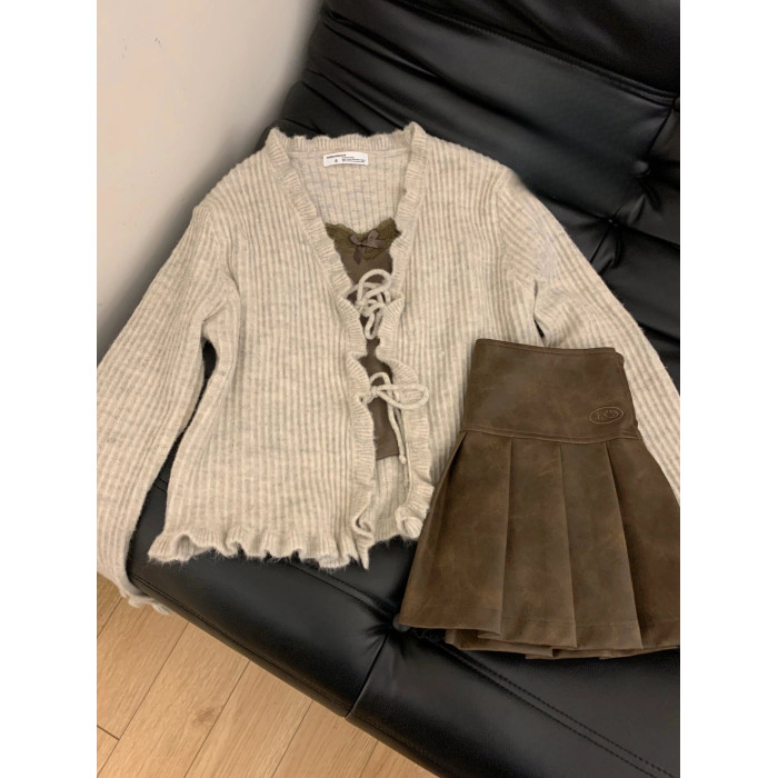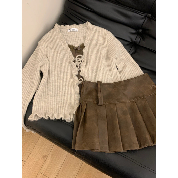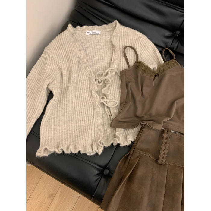 外搭開衫高級感小衆設計感兩件套女2025秋季針織小外套蕾絲邊吊帶