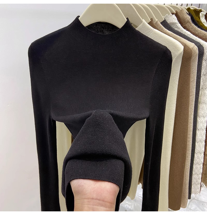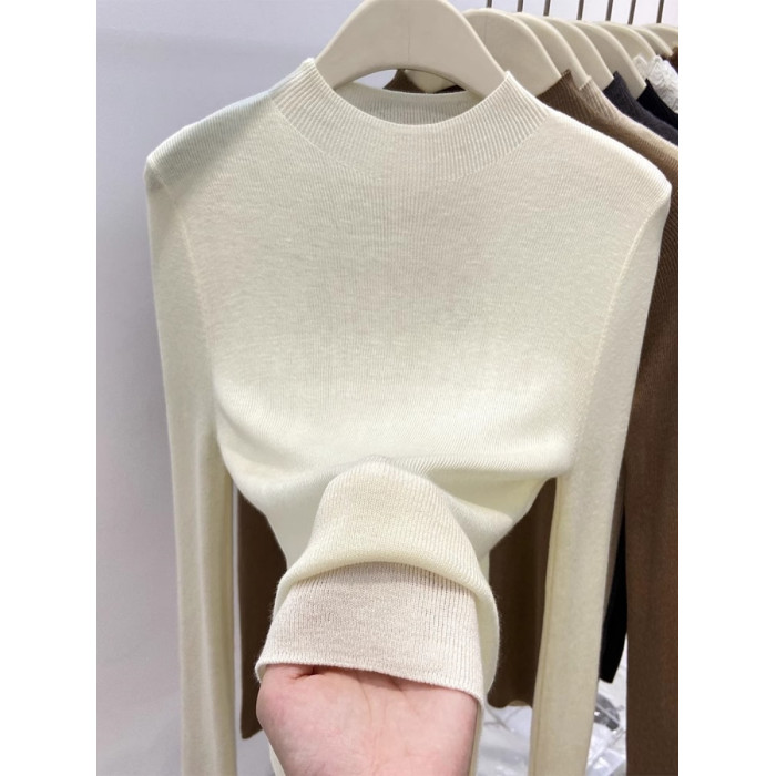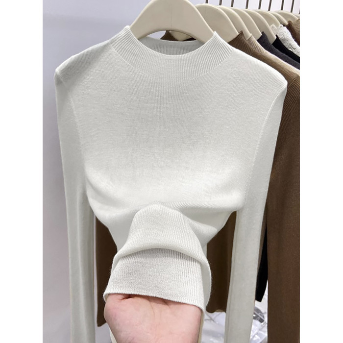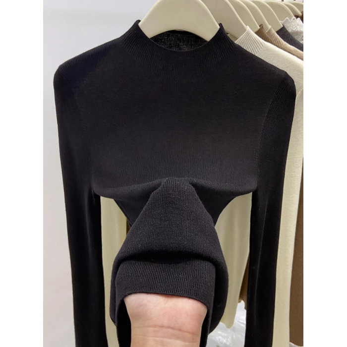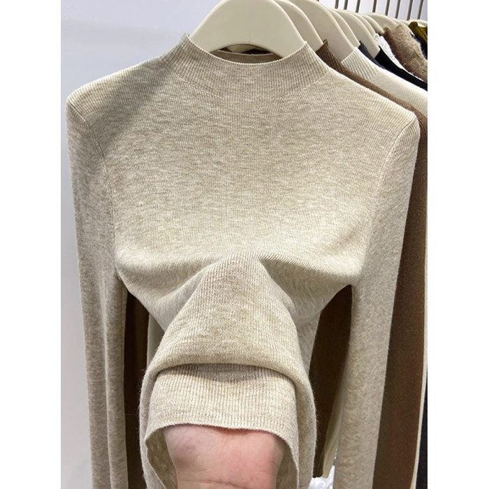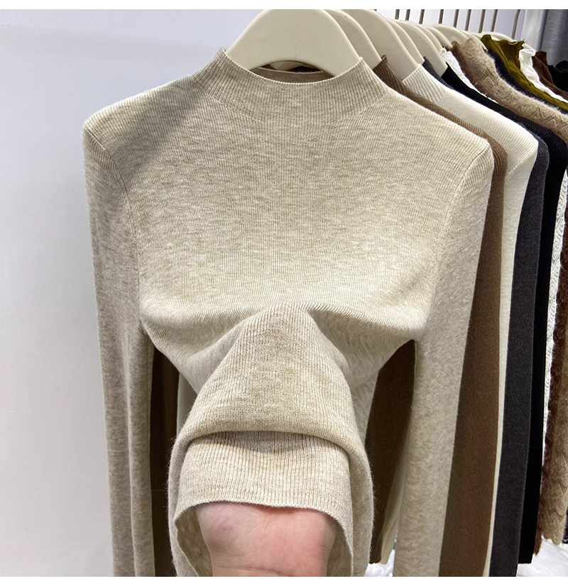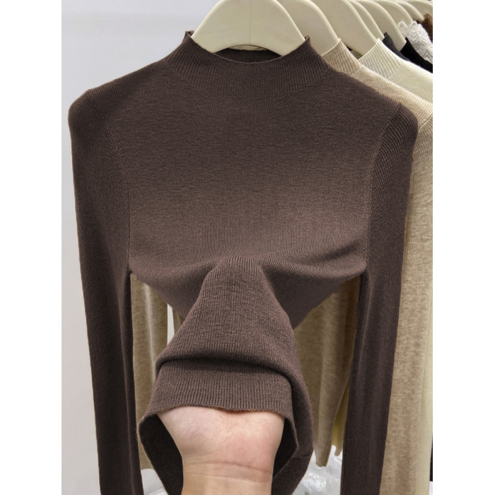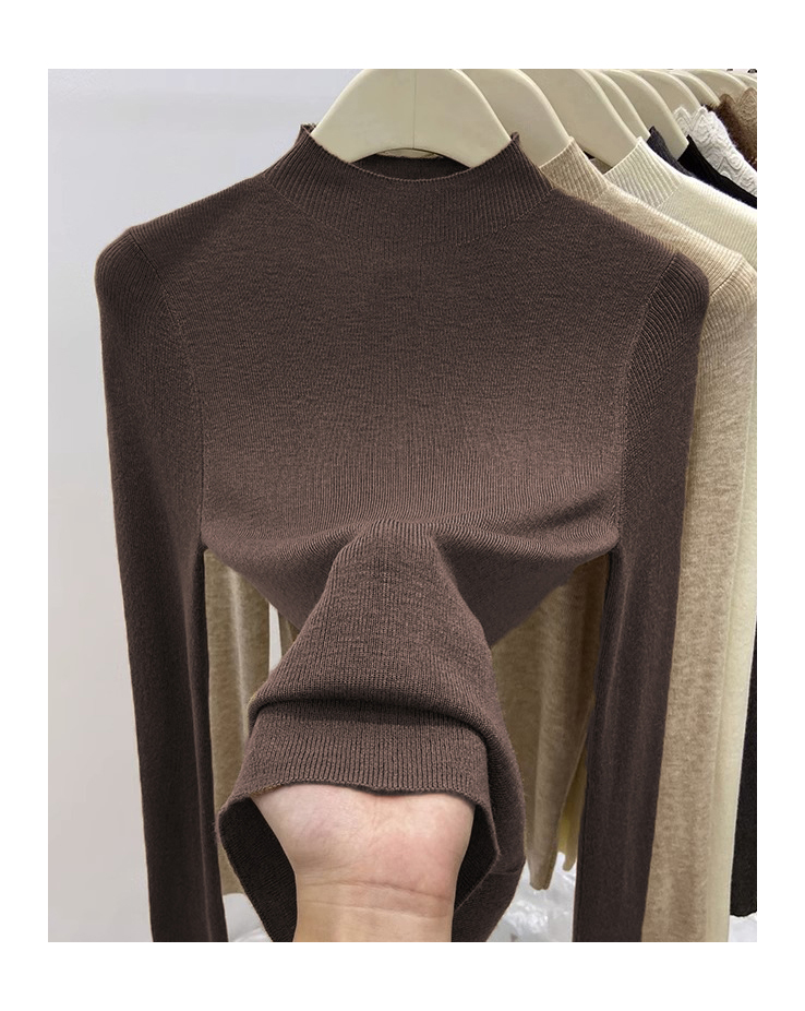 歐貨美拉德咖色打底衫女春季秋冬半高領修身上衣簡約洋氣內搭毛衣