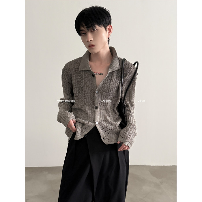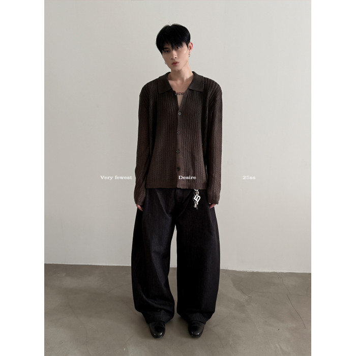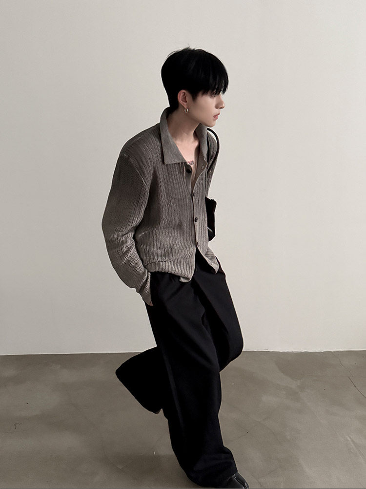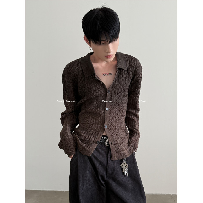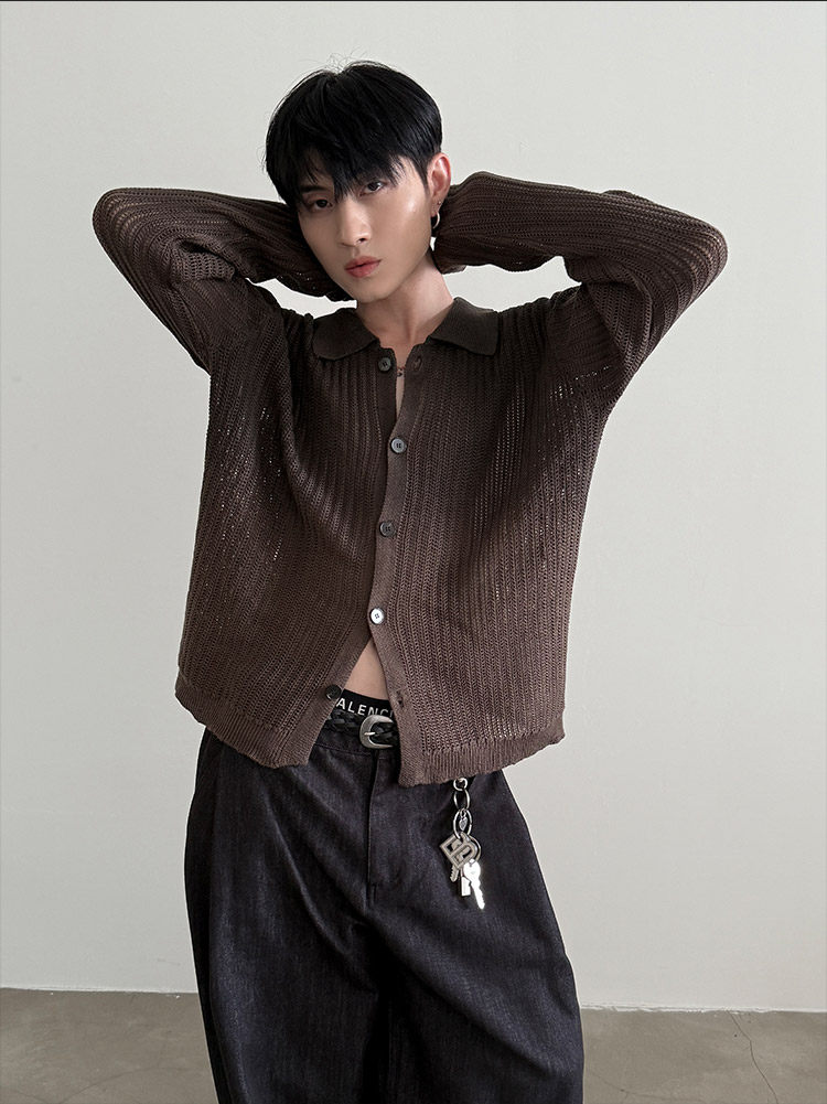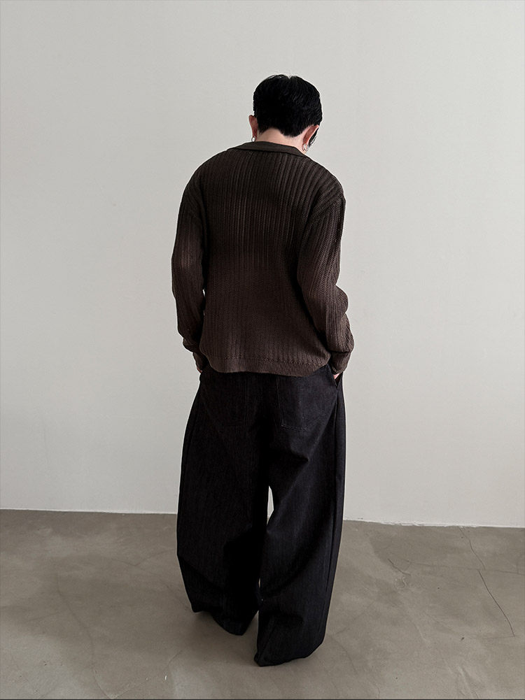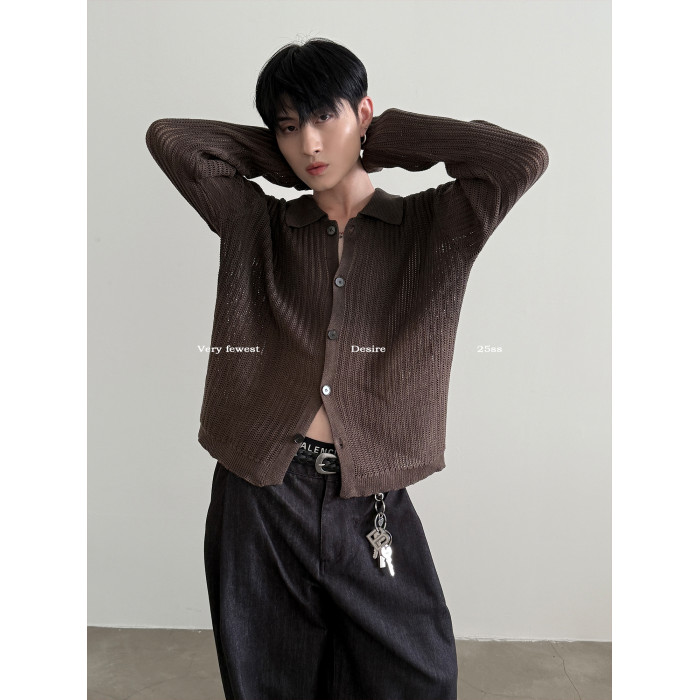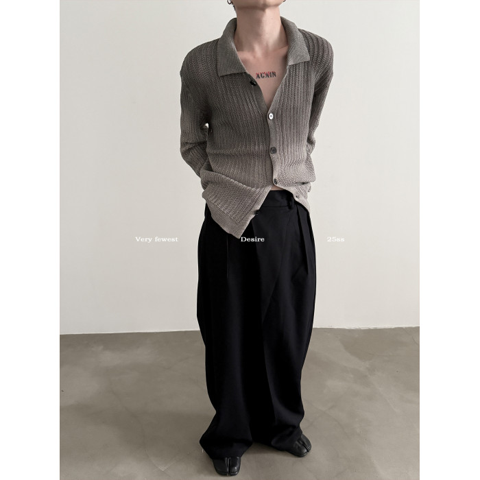 VERY FEWEST cleanfit做舊噴染漸變POLO領長袖針織衫老錢松弛開衫