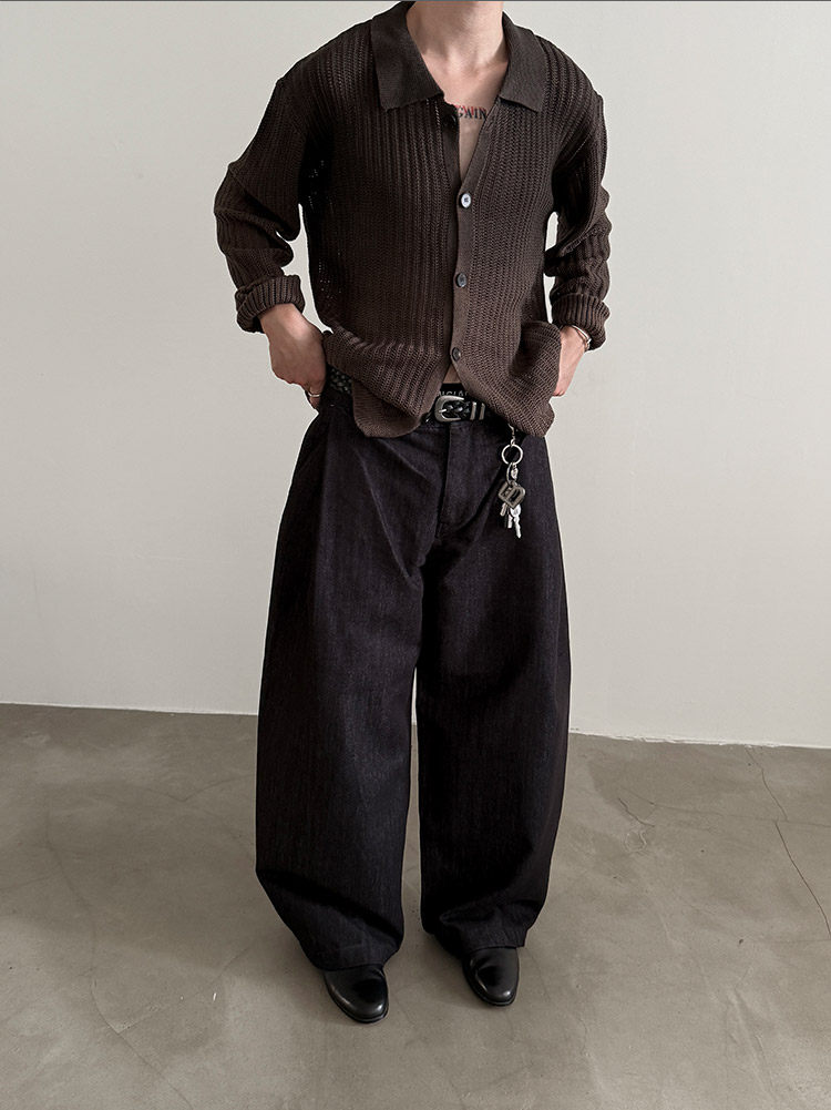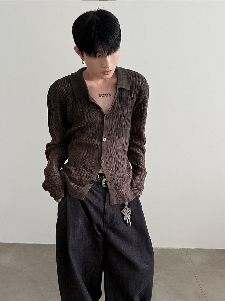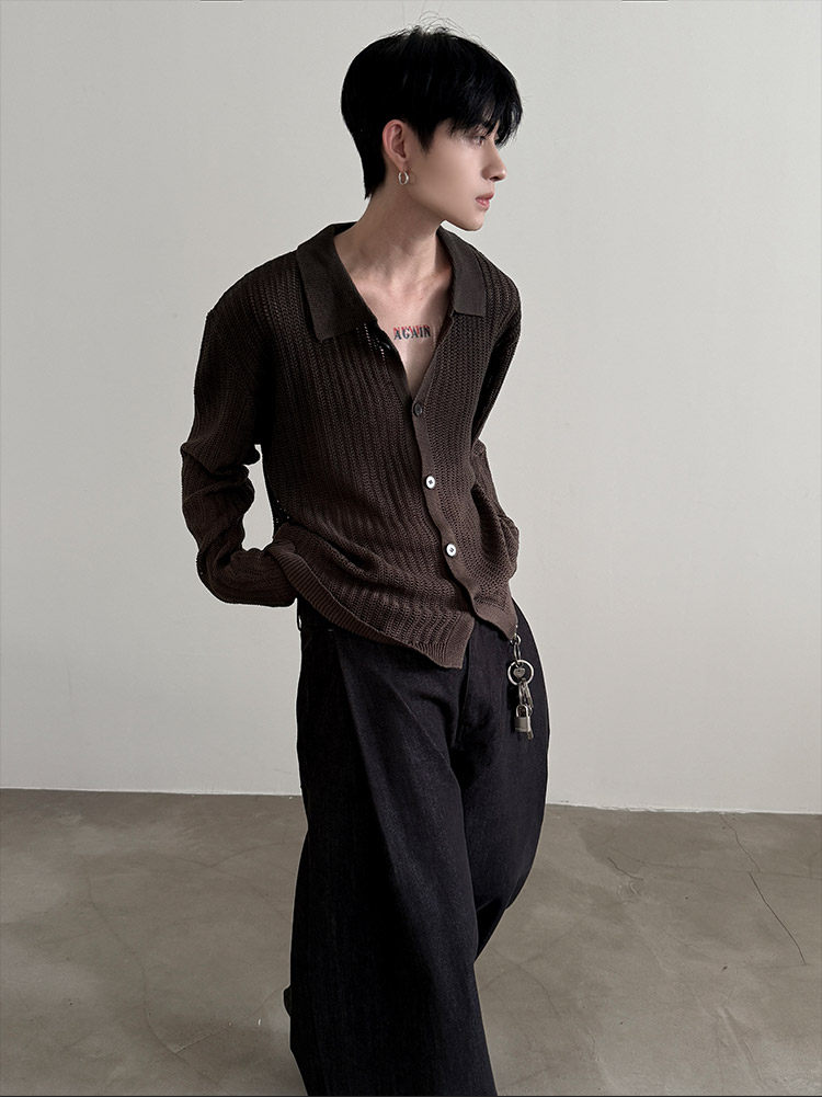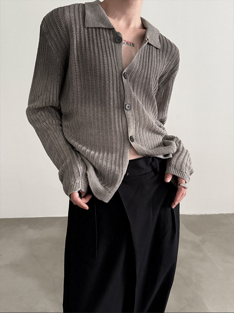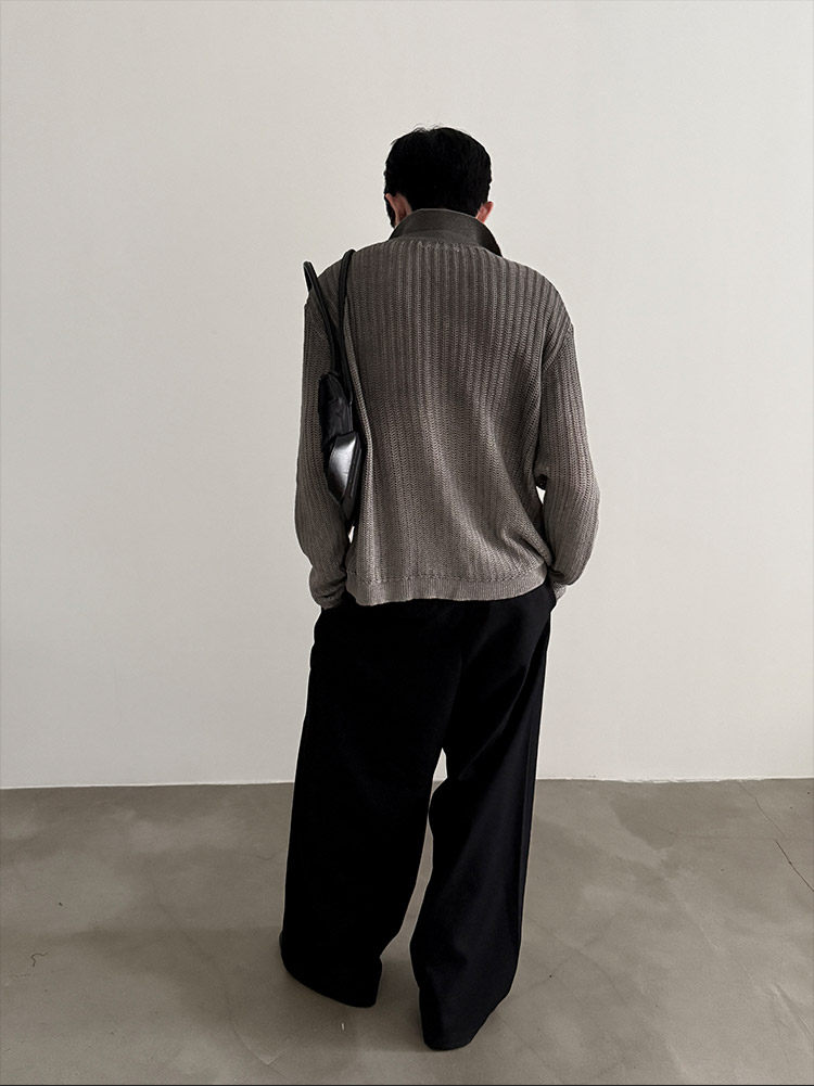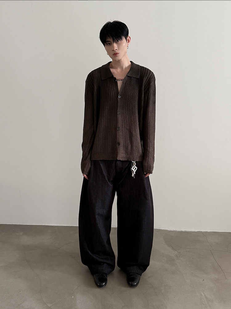 VERY FEWEST cleanfit做舊噴染漸變POLO領長袖針織衫老錢松弛開衫