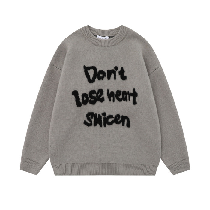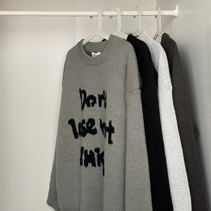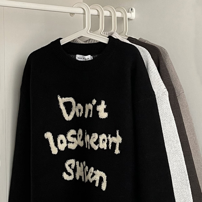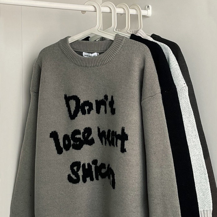 邱細狗QXIGOU圓領毛衣男秋冬季美式潮牌字母提花寬松百搭針織衫bf